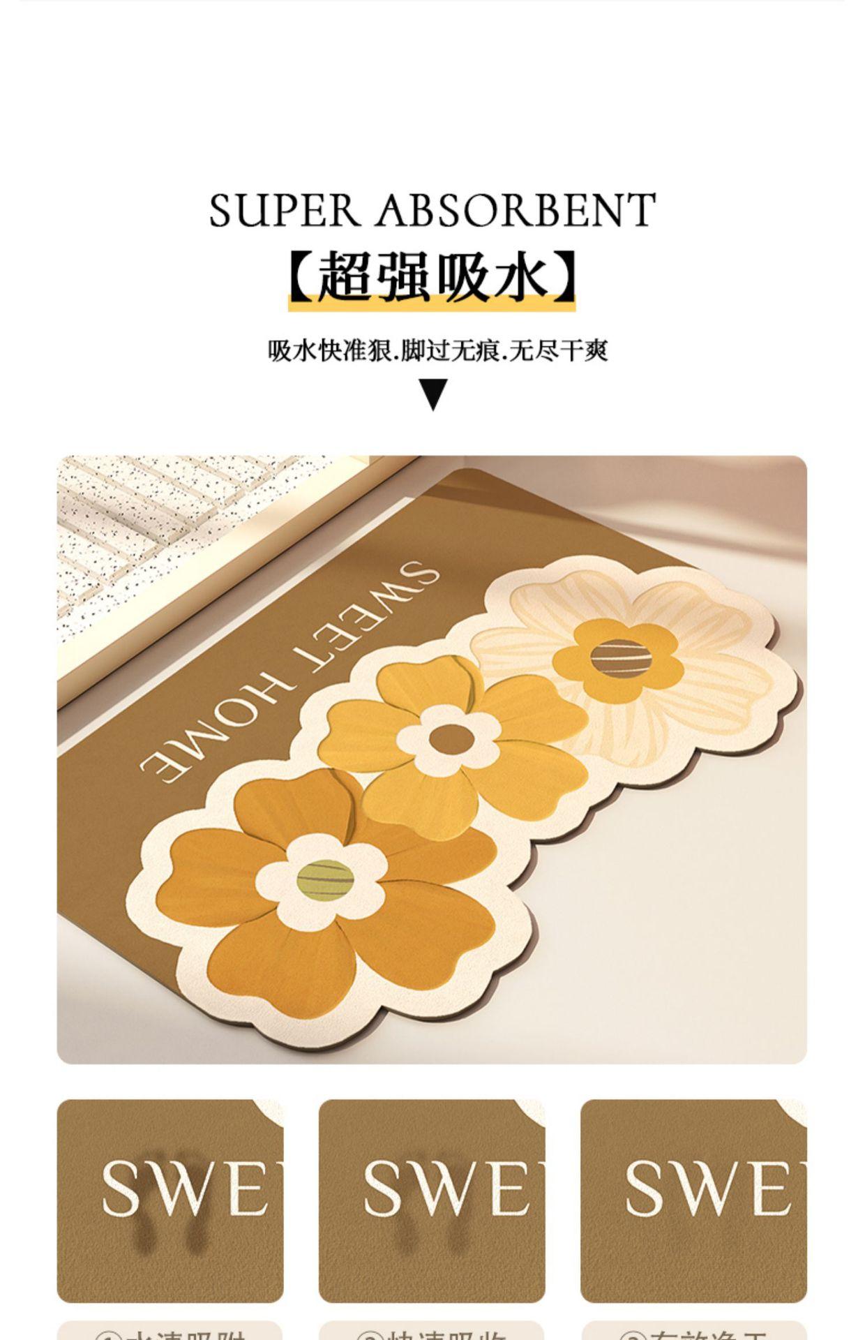 Alfombrilla de baño suave, absorbente de barro de diatomeas fresco, de secado rápido, antideslizante, para puerta de baño