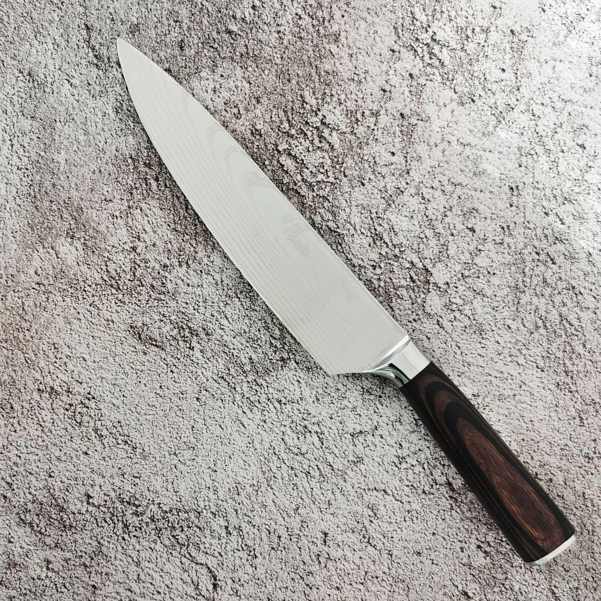 Cuchillo de chef multifuncional de madera con patrón láser de acero inoxidable, directo de fábrica, cuchillo de carne, cuchillo de cocina, cuchillo doméstico, cuchillo de cocina