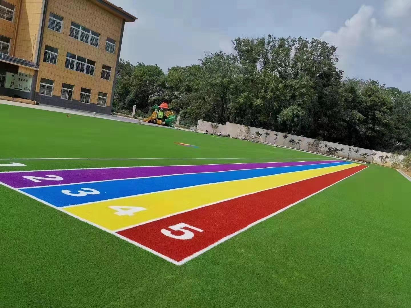 Recintos deportivos y de ocio: Césped deportivo de grado profesional: Alto peso del pelo, fuerte resistencia al desgaste, utilizado para campos de fútbol, campos de práctica de golf, áreas de actividades de jardín de infancia, rendimiento de amortiguación cercano al césped natural, reduce las lesiones deportivas;