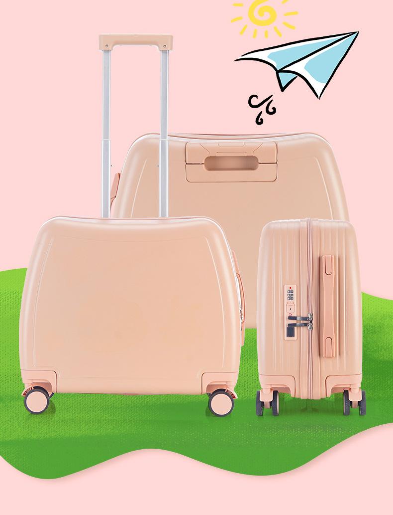 Equipaje para niños con ruedas de 18 pulgadas, ideal para montar y transportar, con bonita caja con código de embarque para niños y niñas.