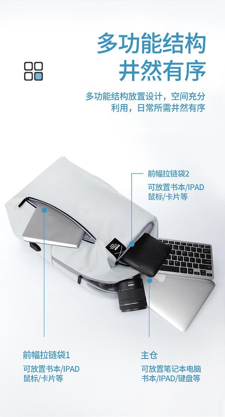 Mochila portátil BUBM de gran capacidad, recargable, para uso diario en la oficina o en el trabajo