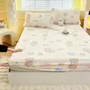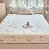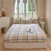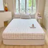 Sábana de algodón puro teñido en hilo antibacteriano acolchada de color sólido, sábana de algodón lavado de clase A, protector de colchón y ropa de cama