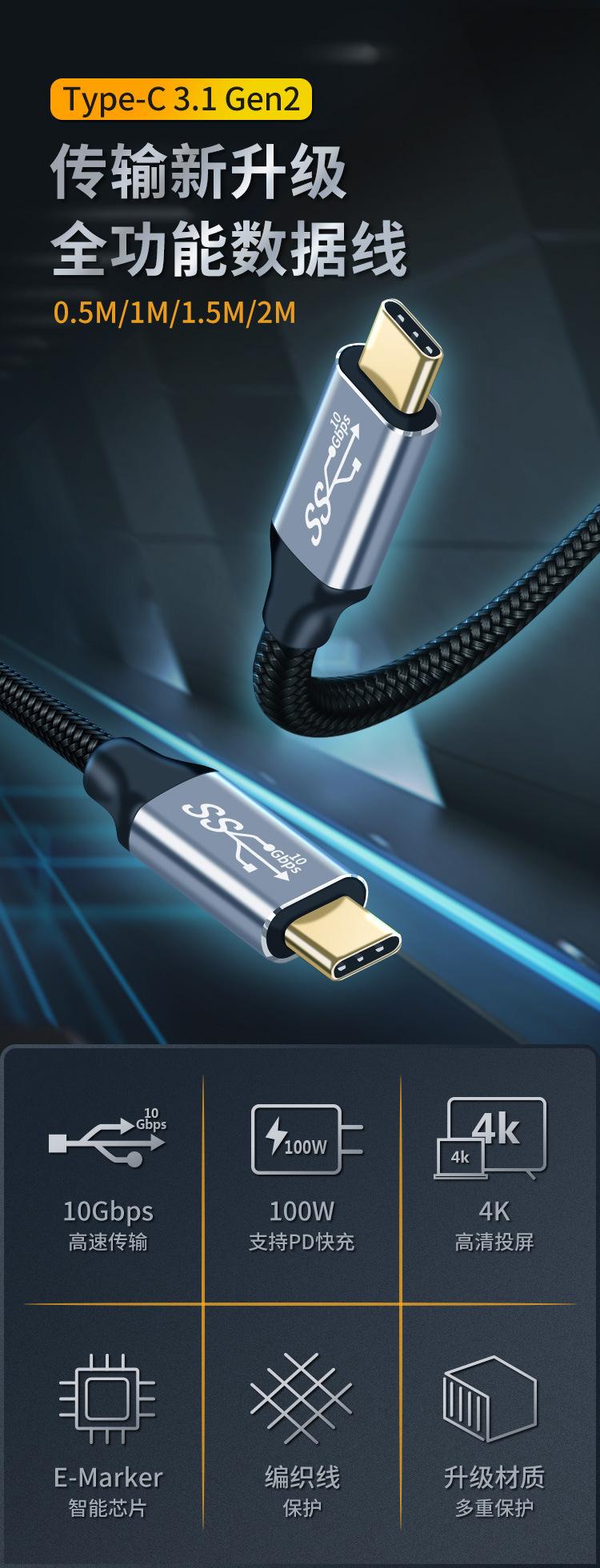 Compra Cable doble C con chip Emark tipo c3.1, cable de función completa, carga gen2 pd100w, cable para pantalla de proyección HD al por mayor en Joom.pro