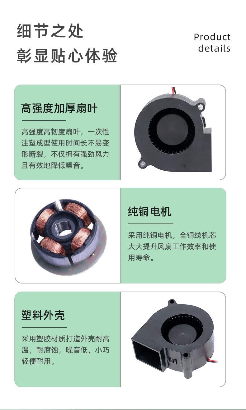 Ventilador centrífugo humidificador de doble bola, suministro directo de fábrica, turbina 6028, CC 5 V, 12 V y 24 V.