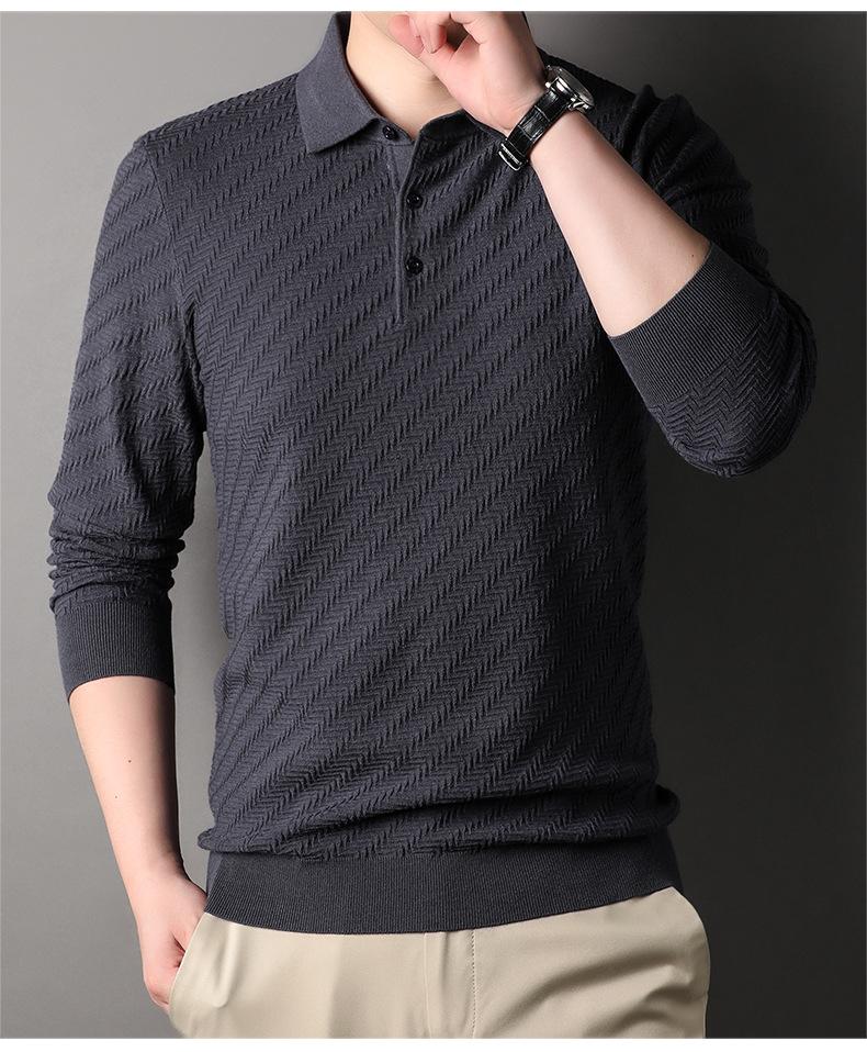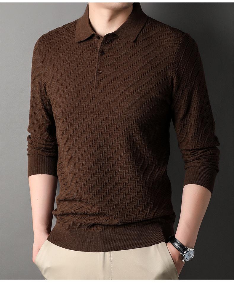 Producto Nuevo de Otoño e Invierno Suéter de Solapa Tejido de Manga Larga para Hombre Camiseta Básica para Jóvenes y Mediana Edad para Hombre T9037 Casual y Versátil