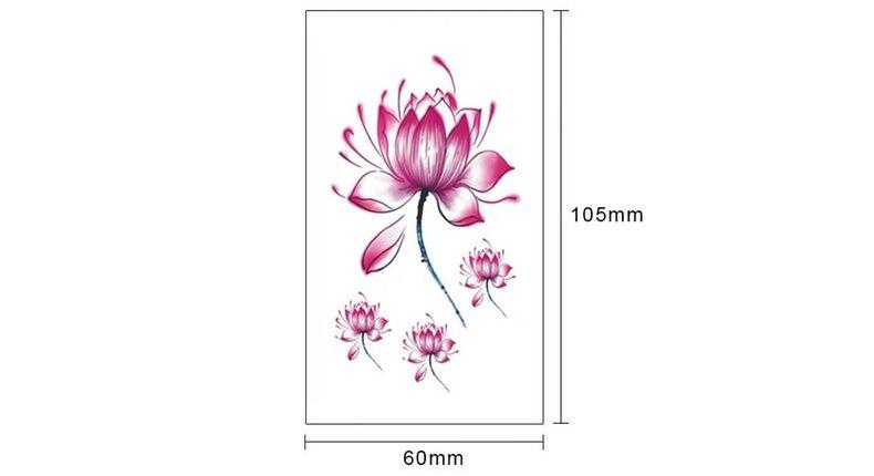 Tatuaje pequeño y fresco en el brazo con diseño de flor, diseño 3D de henna transfronterizo, resistente al agua, con texto en inglés y rosa.