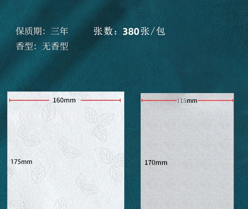 Especificaciones: Bolsa Grande6 paquetes están en empaque de mano, y 20 paquetes están en empaque de caja. 380Hojas/paquete, 5 capas/dibujo, tamaño desplegado del tisú 160*175mm