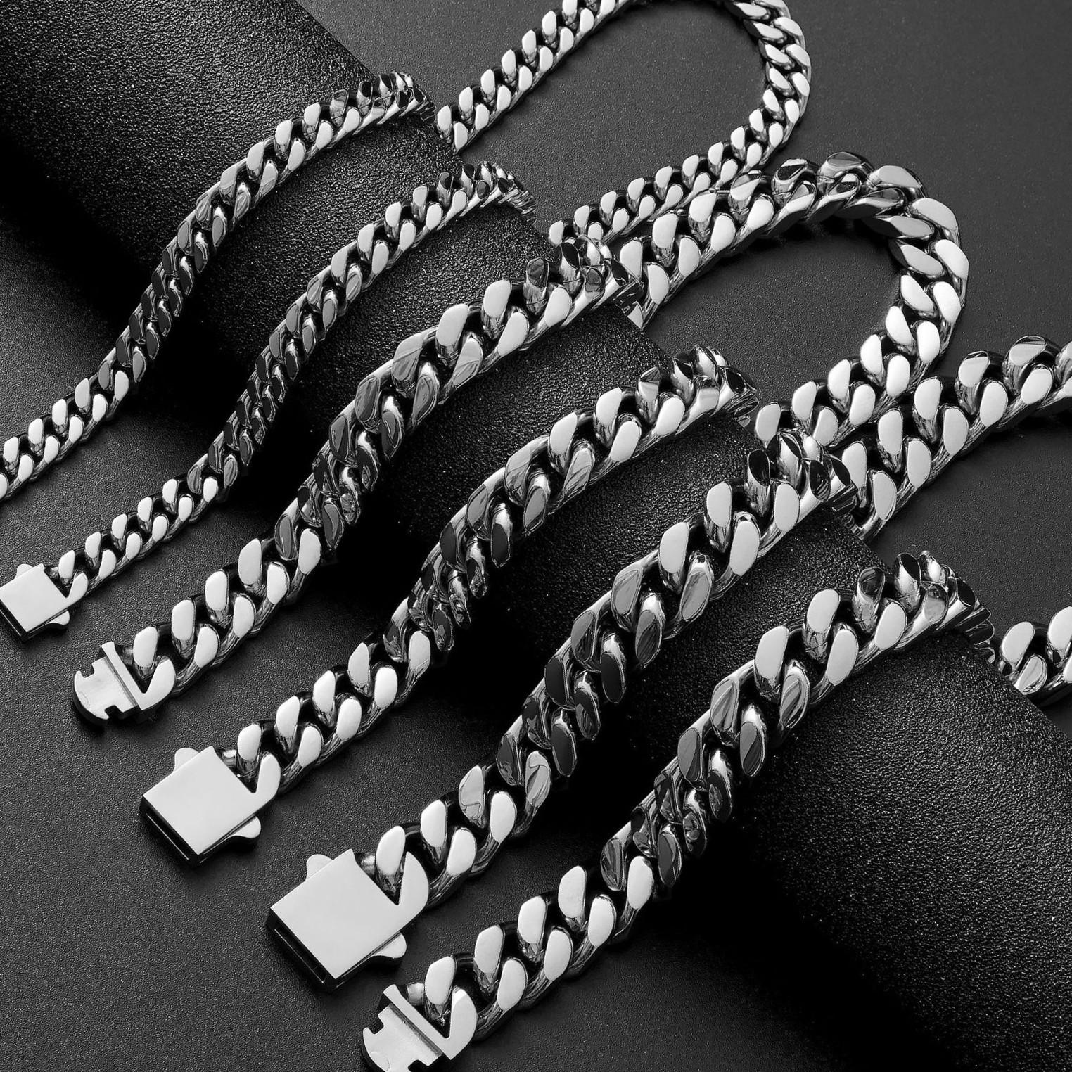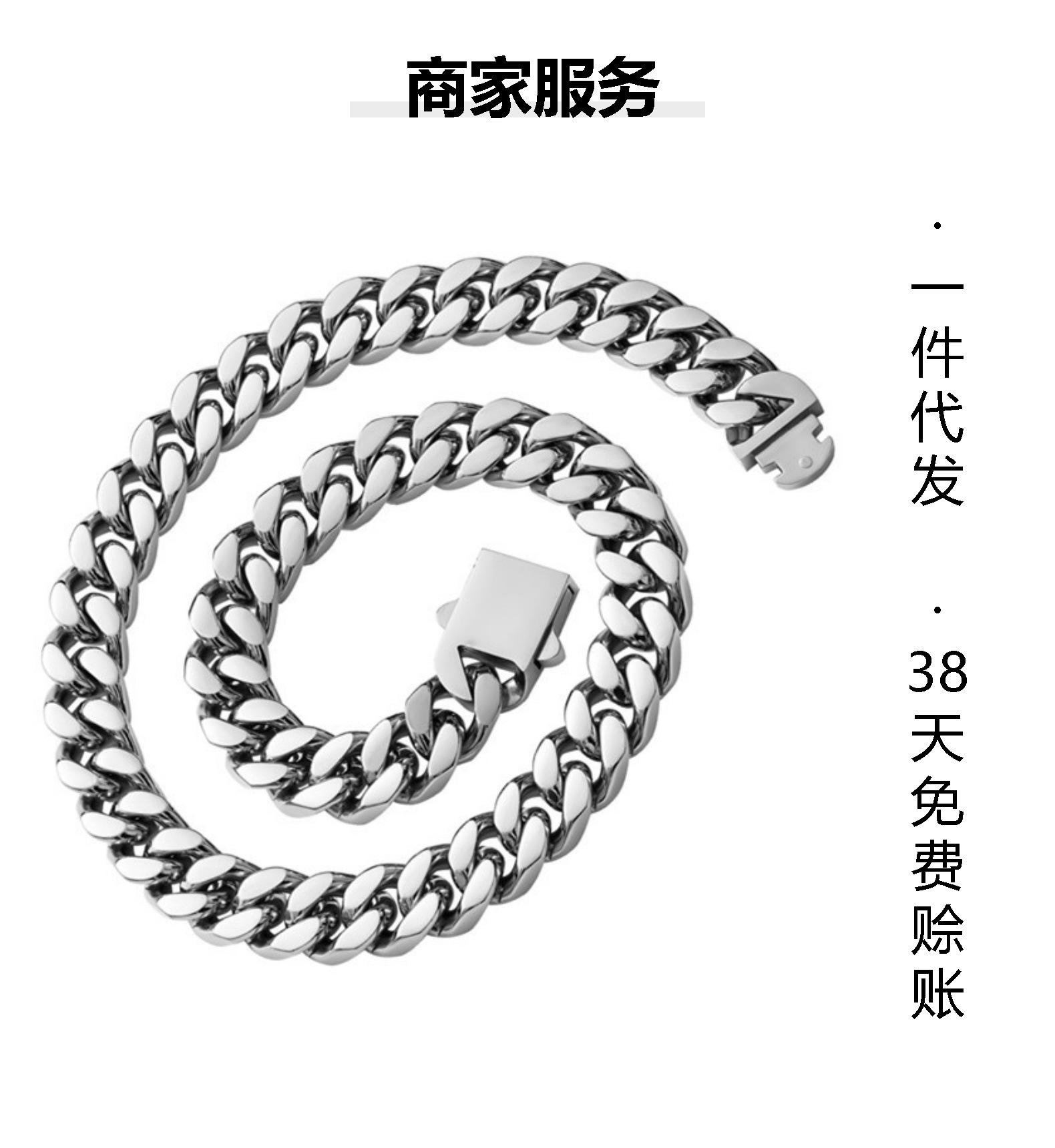 Collar de acero de titanio con cadena cubana encriptada y hebilla cuadrada de alta calidad de estilo hip hop para hombre, collar cuadrado para hombre, joyería transfronteriza para mujer