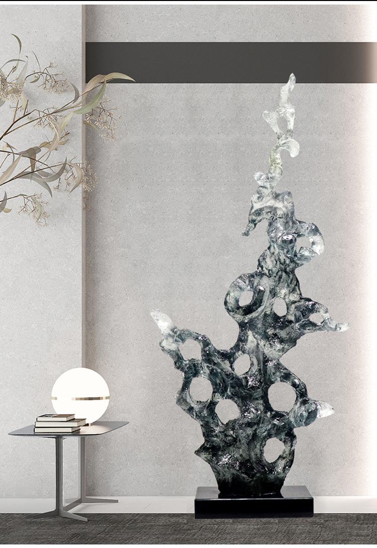 Escultura de resina transparente creativa para habitación de modelo moderno, decoración en aerosol, entrada de hotel, sala de estar, oficina, artesanías