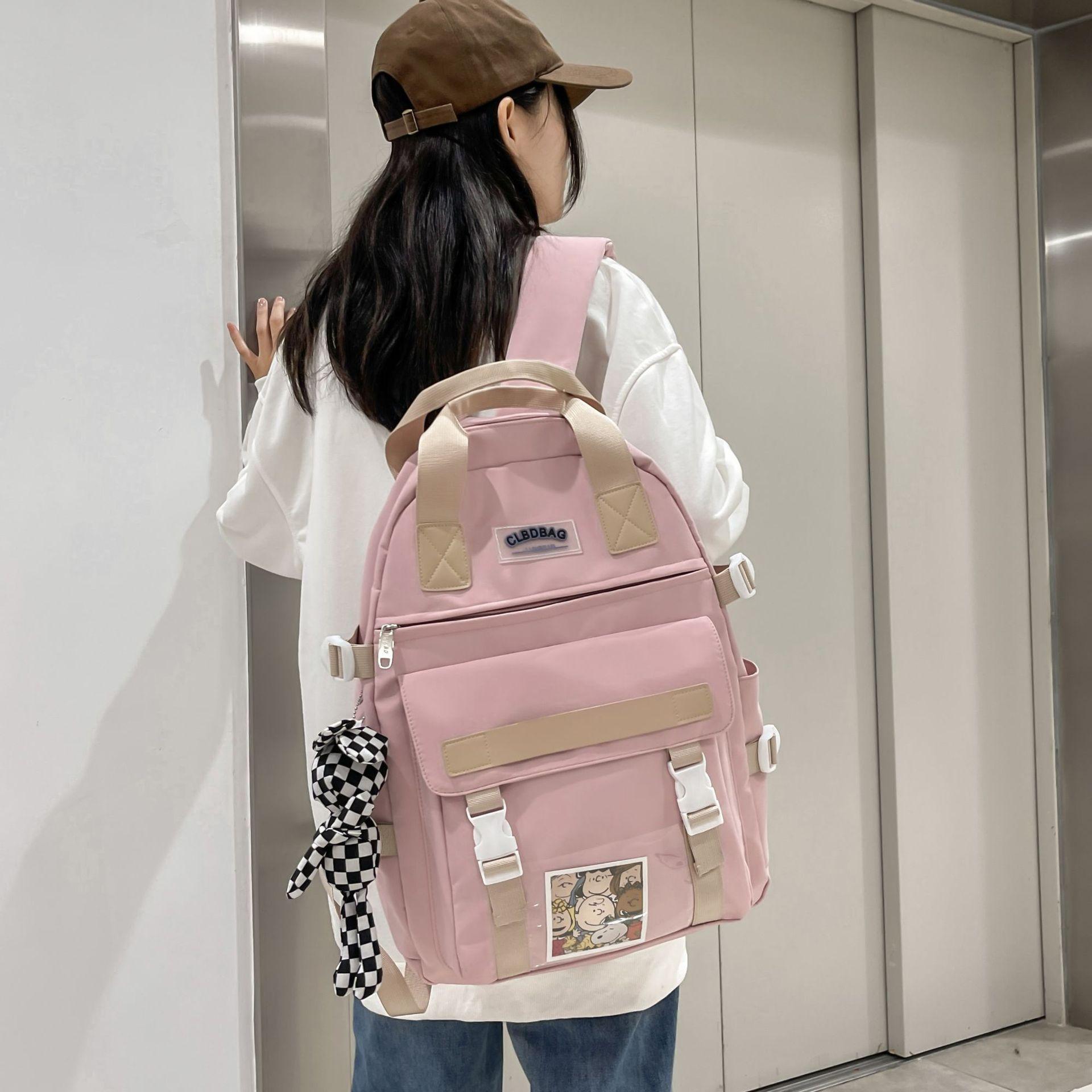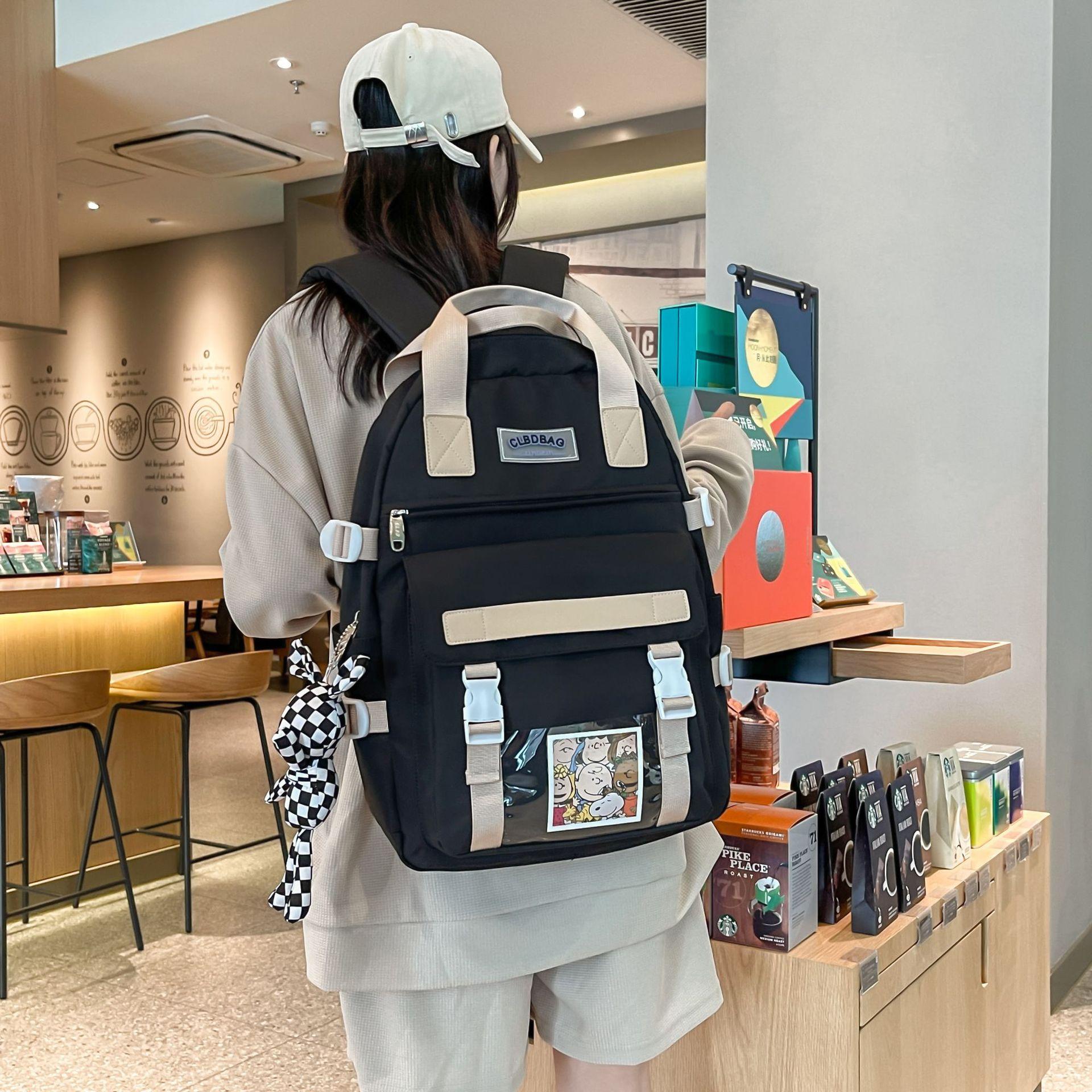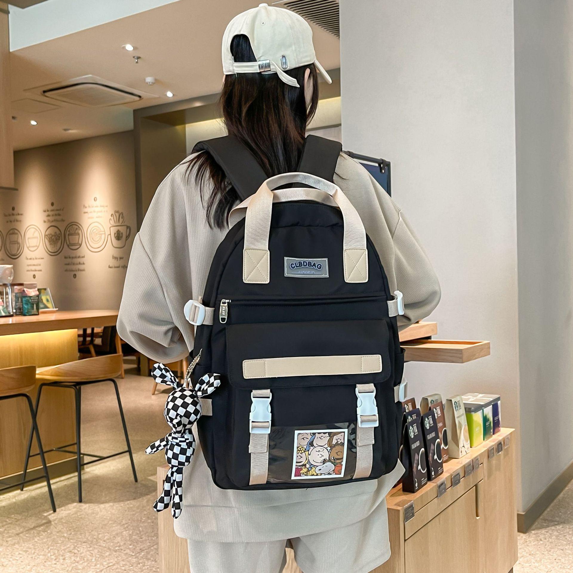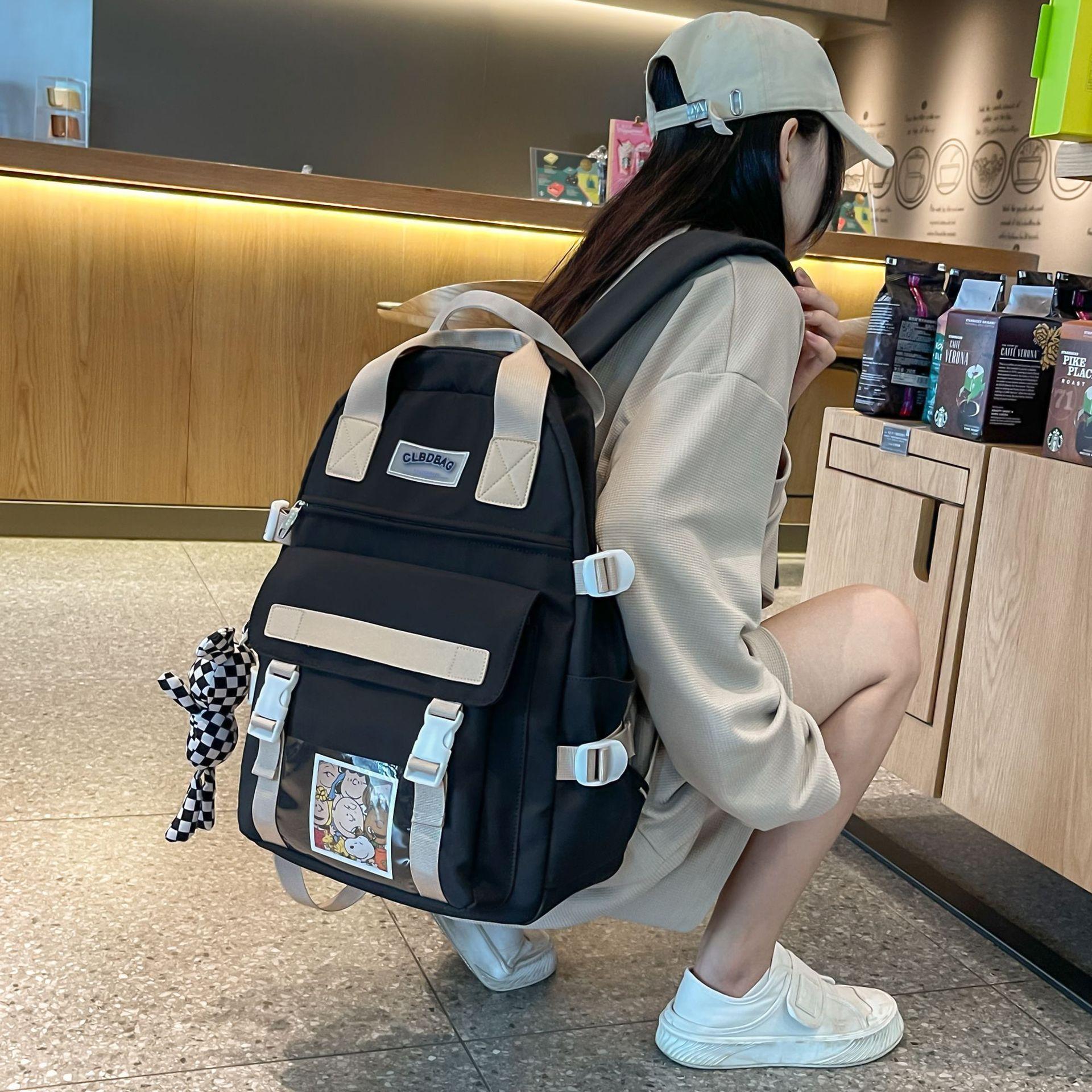 Mochila de estudiante de secundaria de estilo coreano de gran capacidad de aspecto elegante, mochila de viaje para computadora
