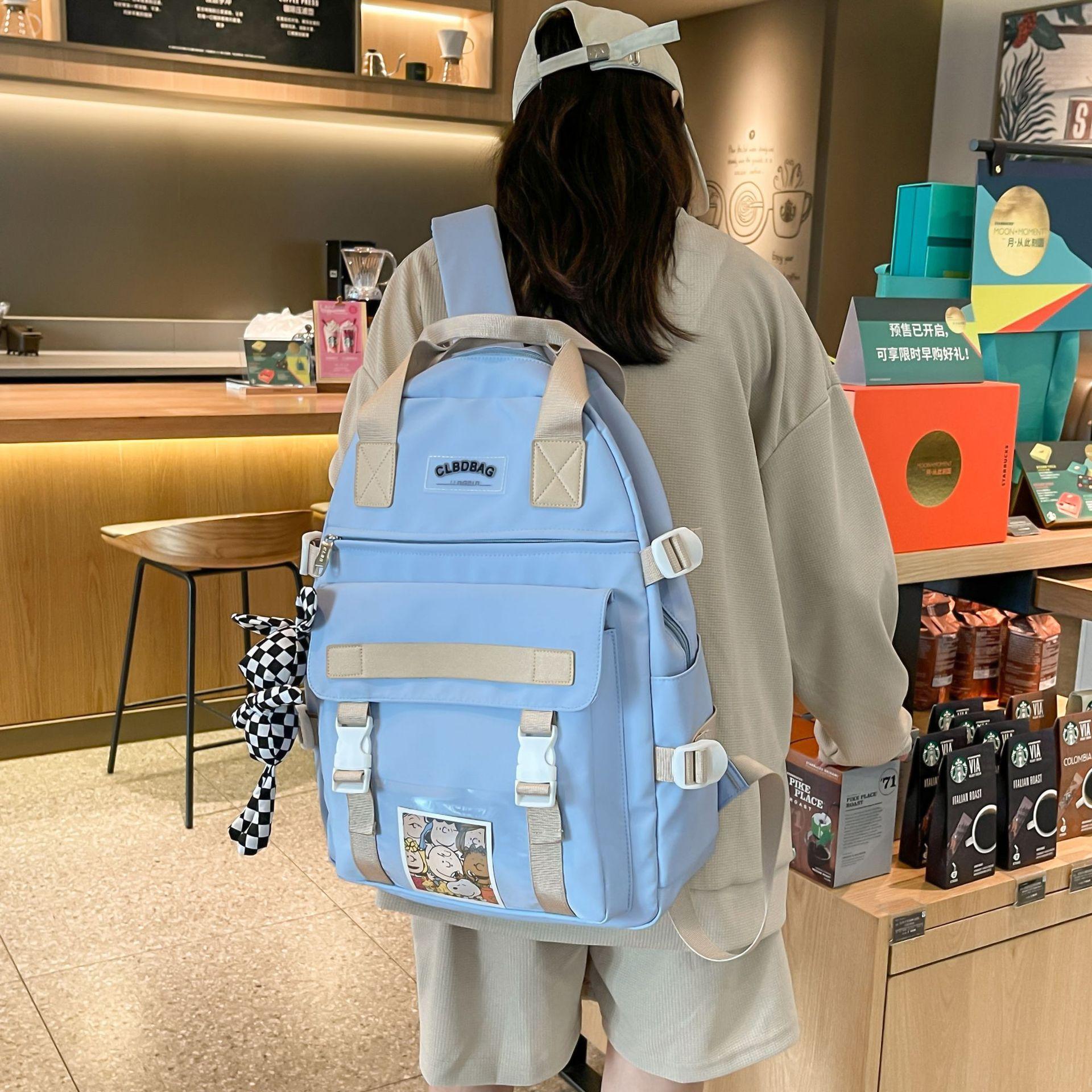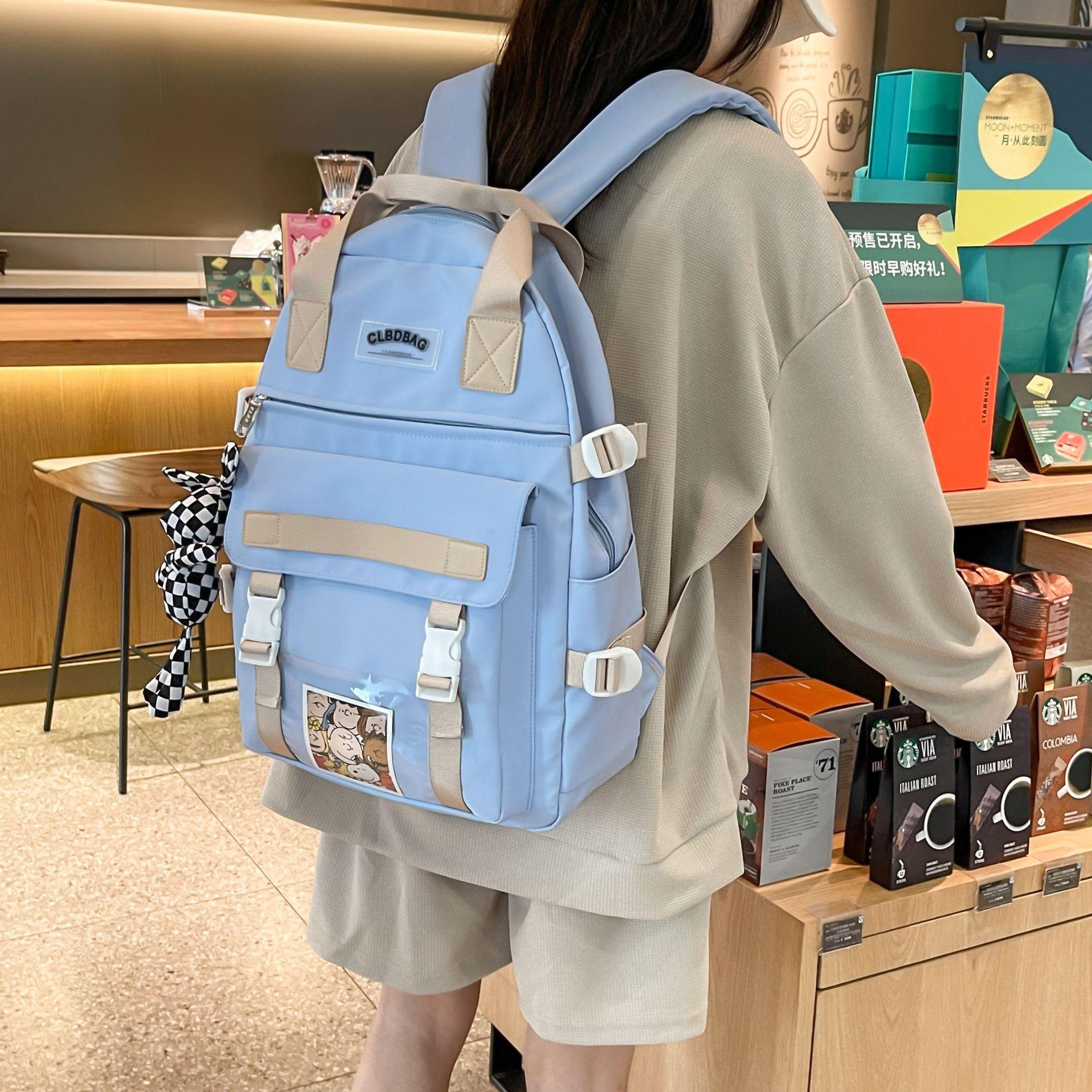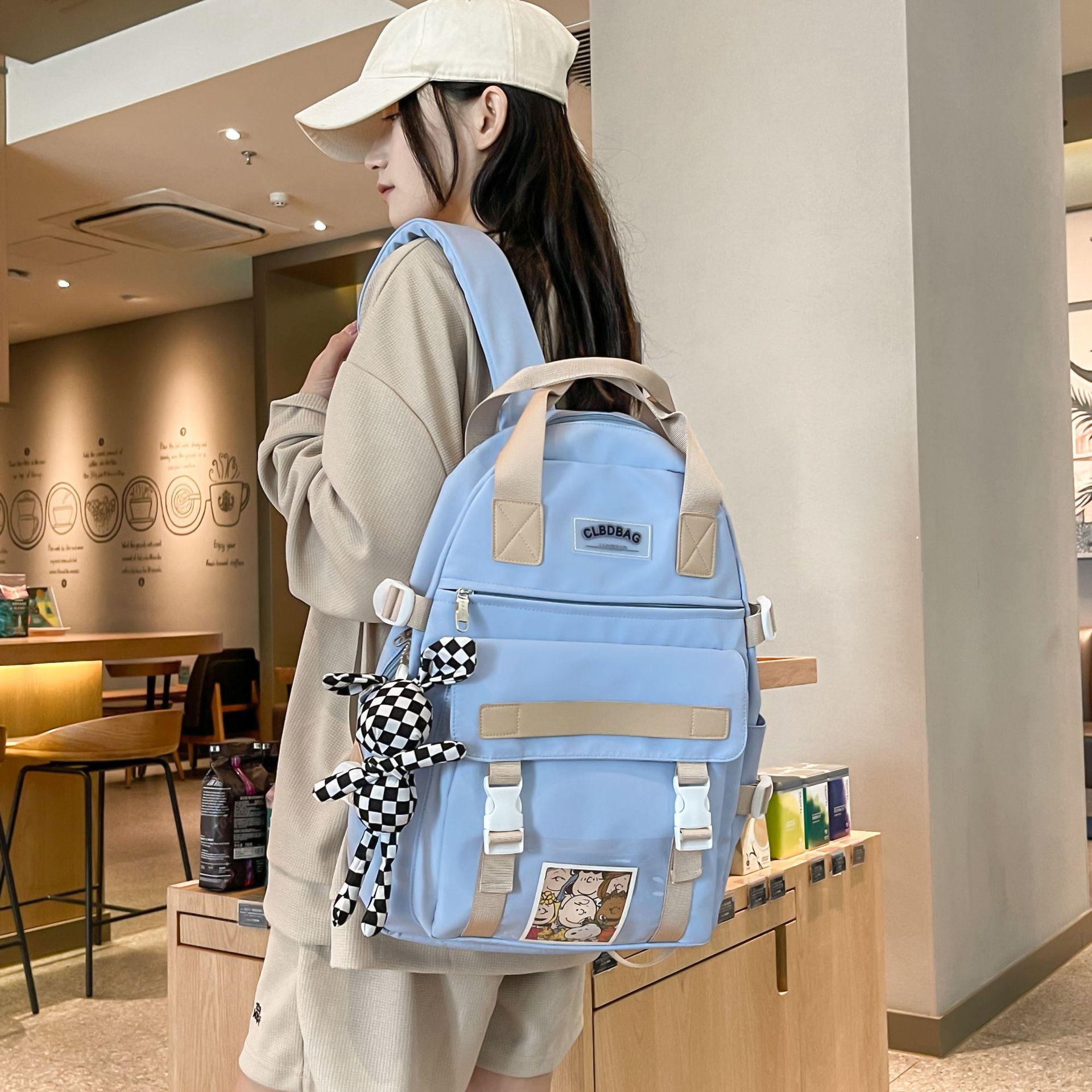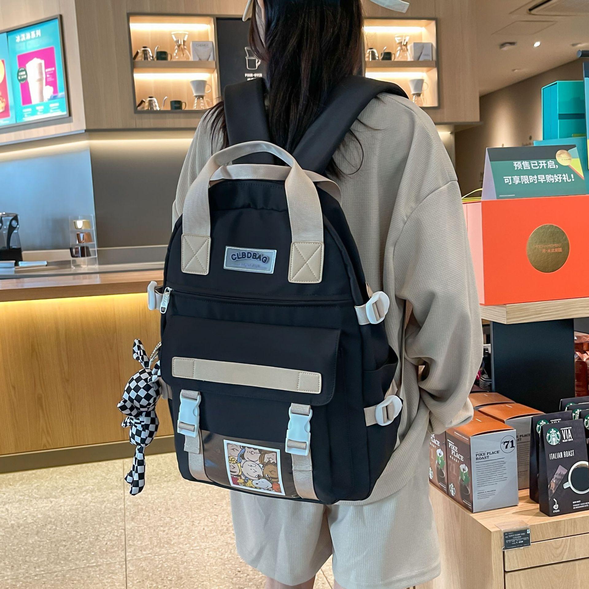 Mochila de estudiante de secundaria de estilo coreano de gran capacidad de aspecto elegante, mochila de viaje para computadora