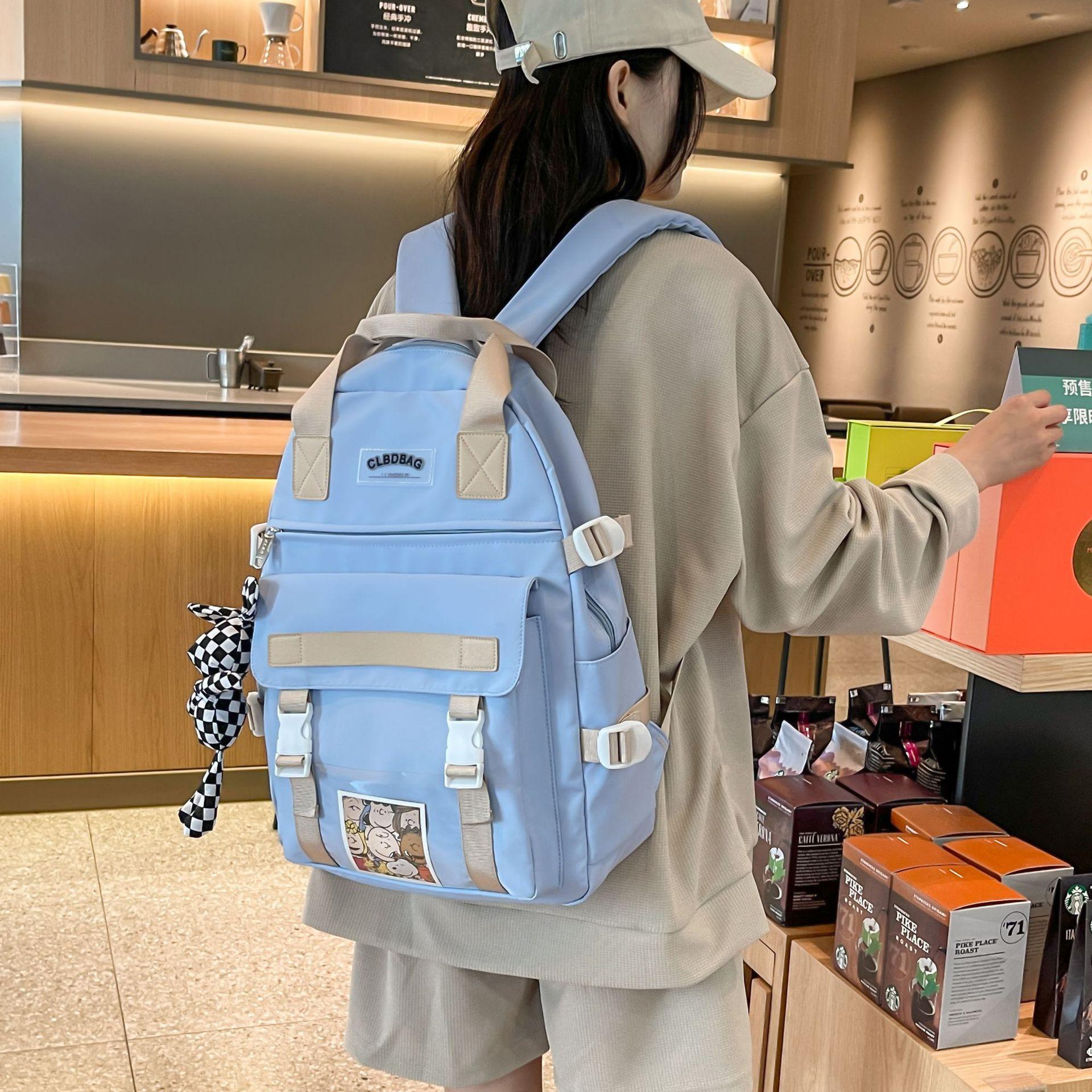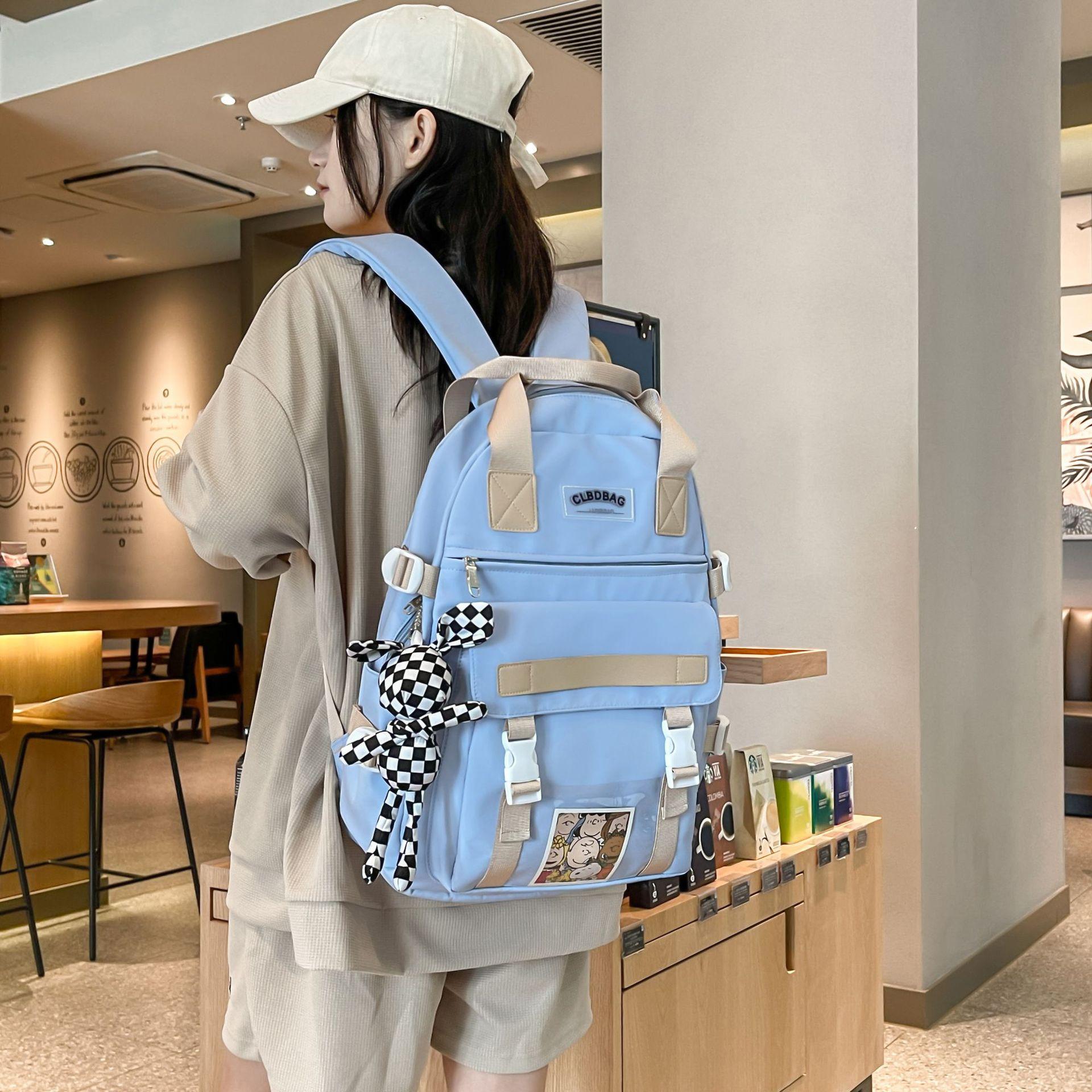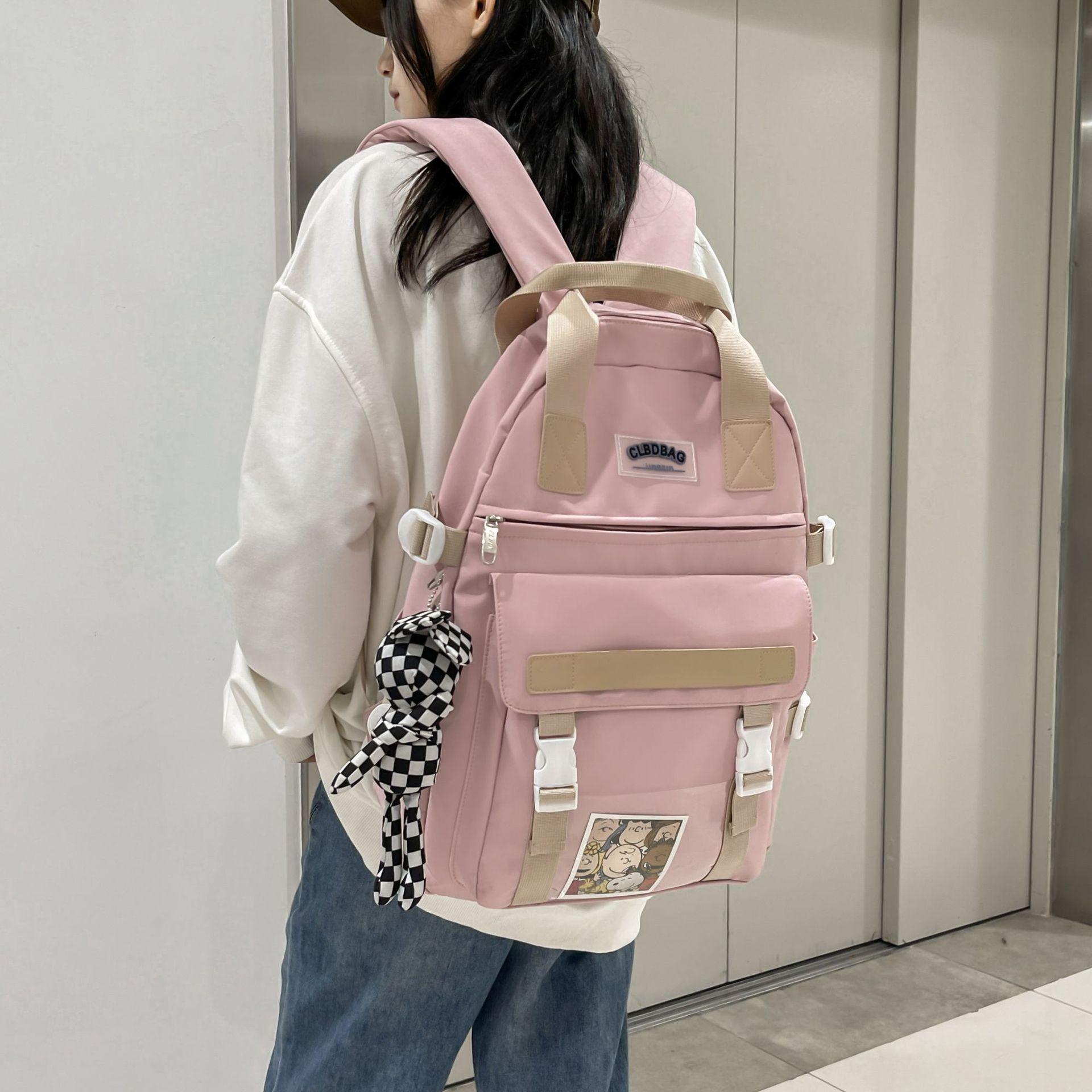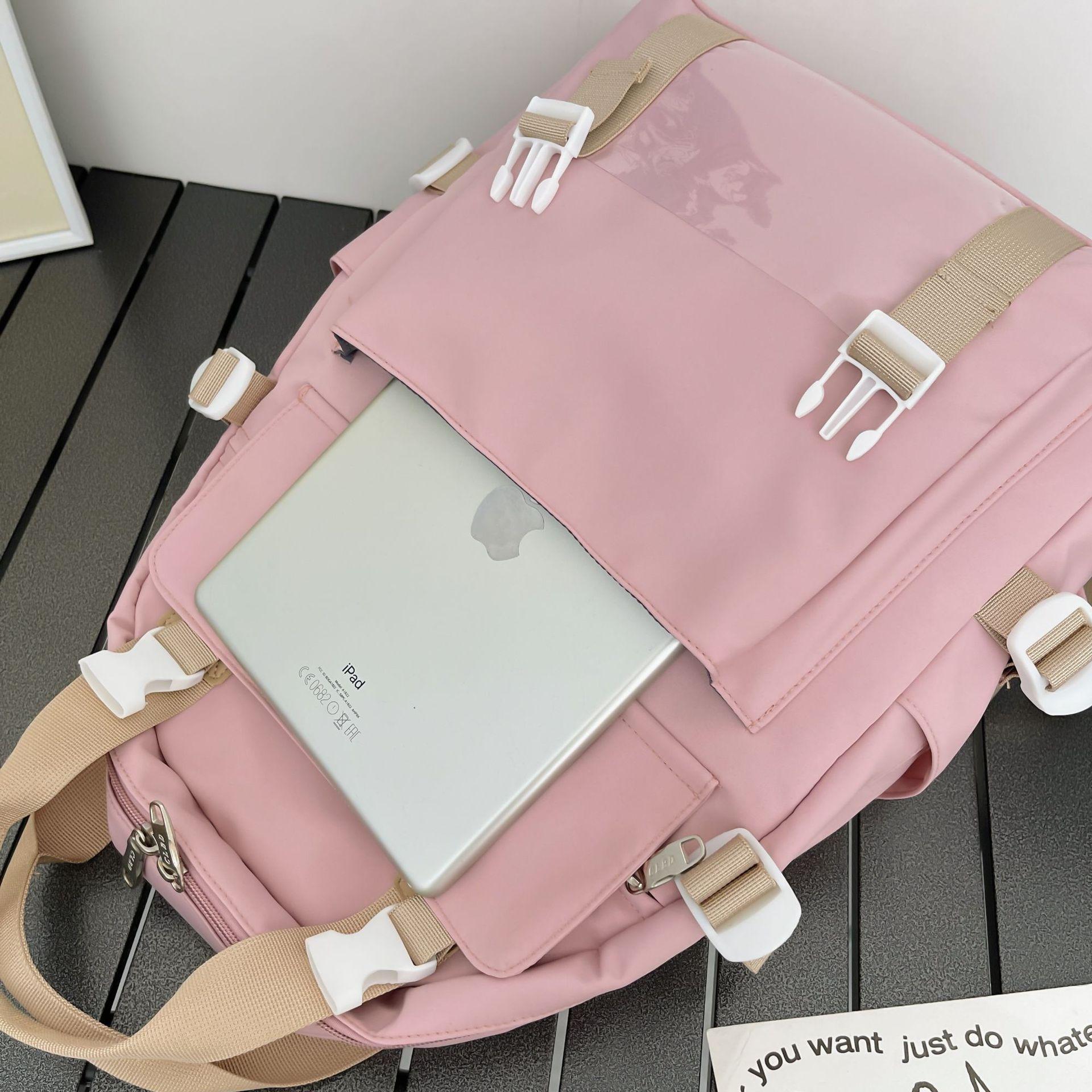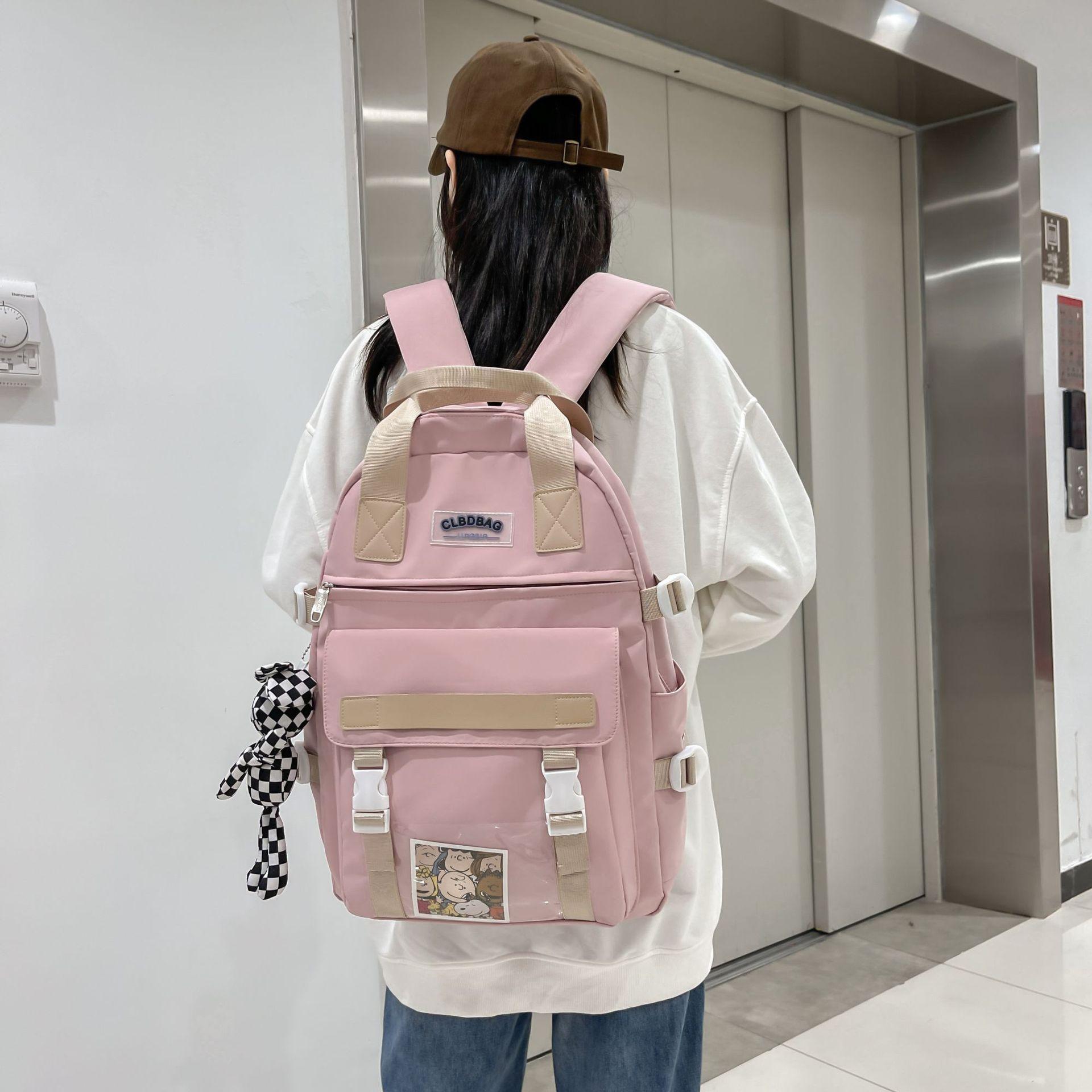 Mochila de estudiante de secundaria de estilo coreano de gran capacidad de aspecto elegante, mochila de viaje para computadora
