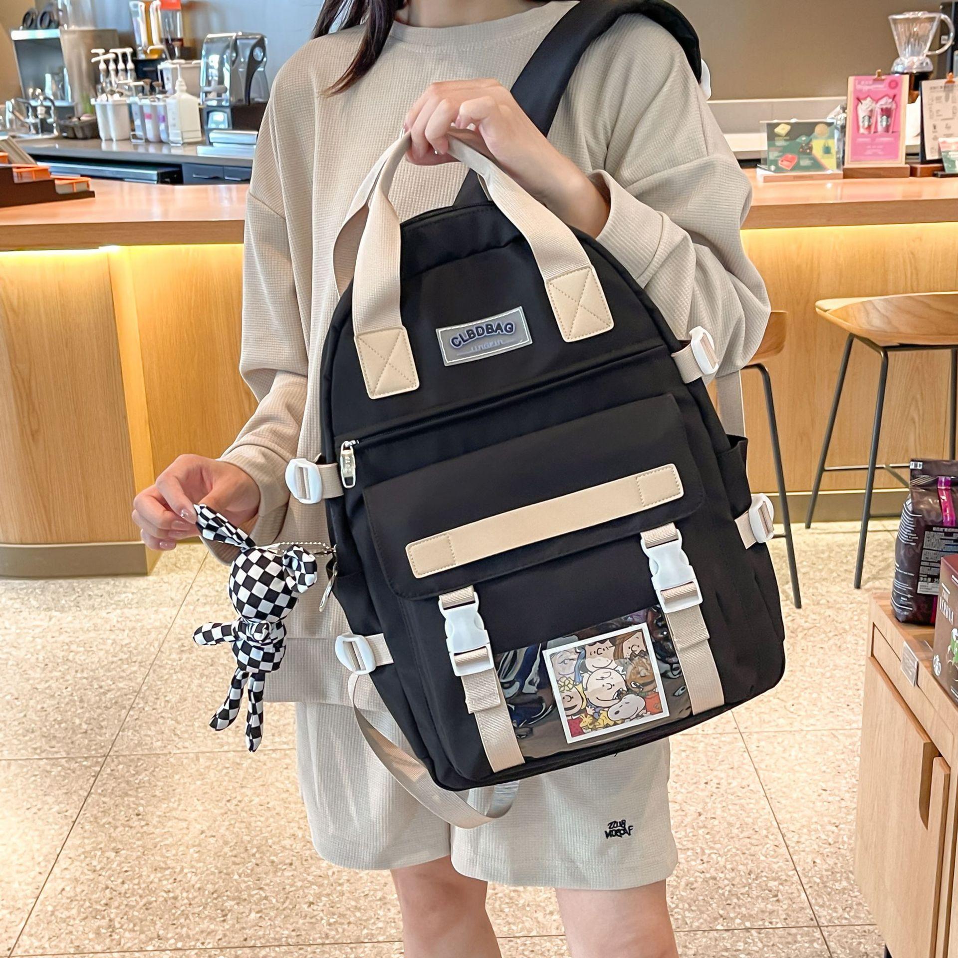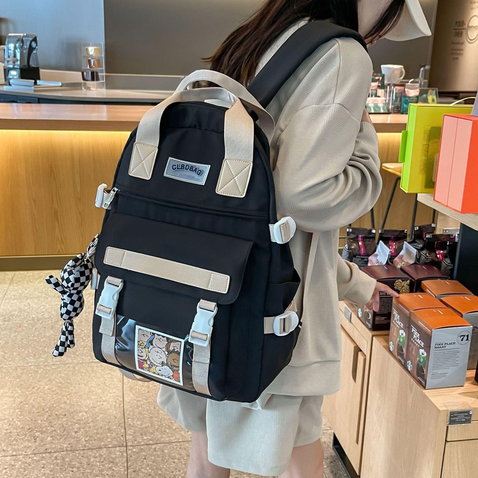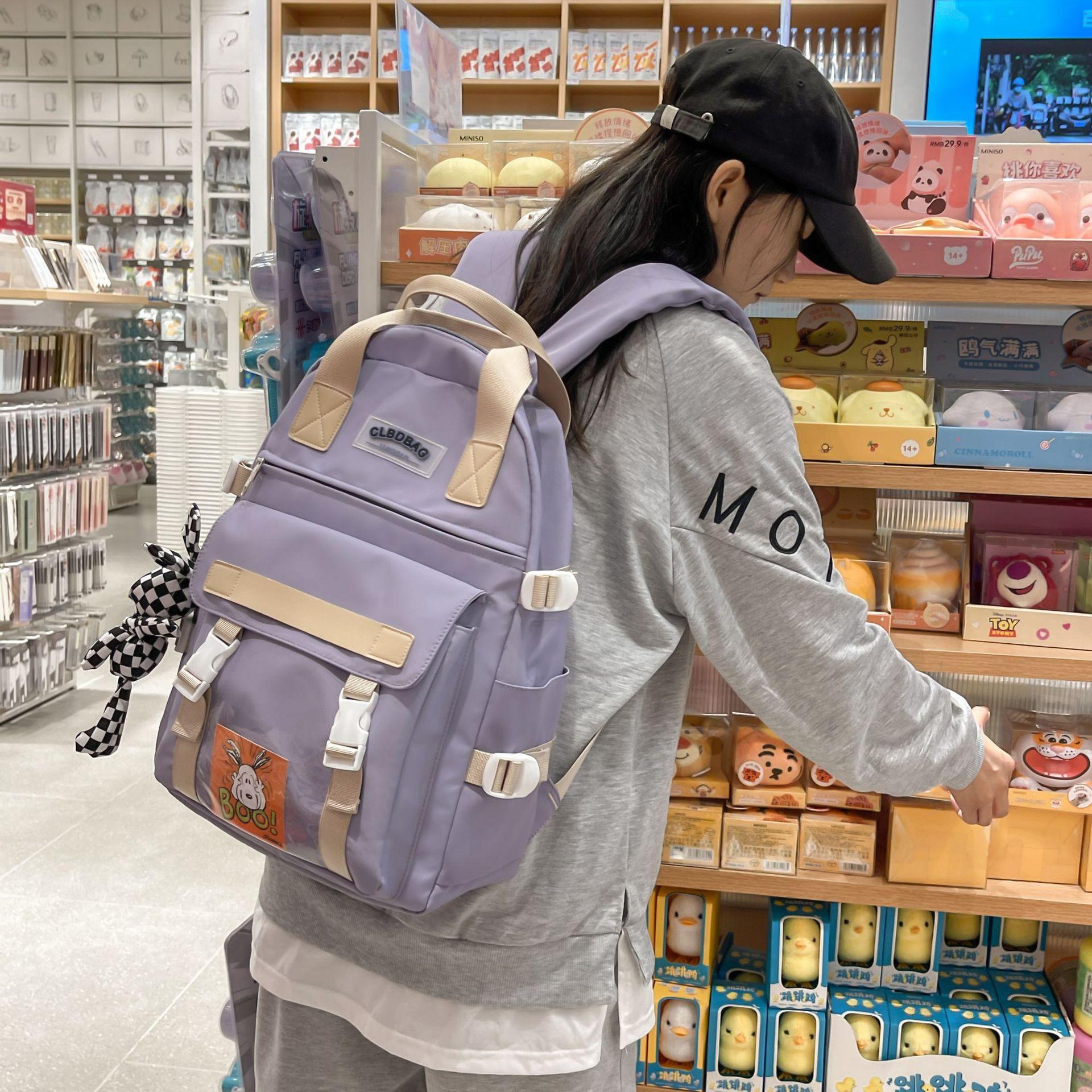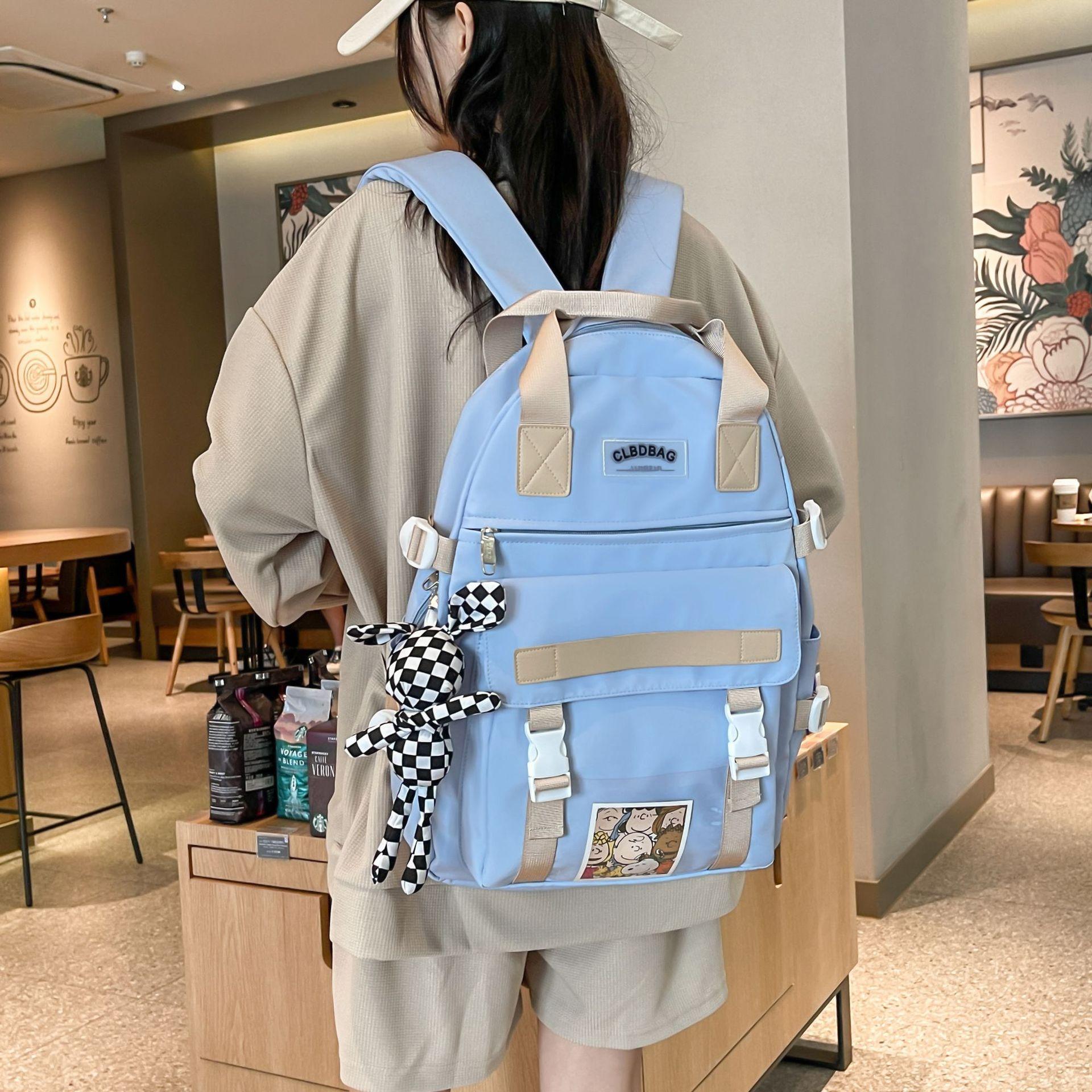 Mochila de estudiante de secundaria de estilo coreano de gran capacidad de aspecto elegante, mochila de viaje para computadora