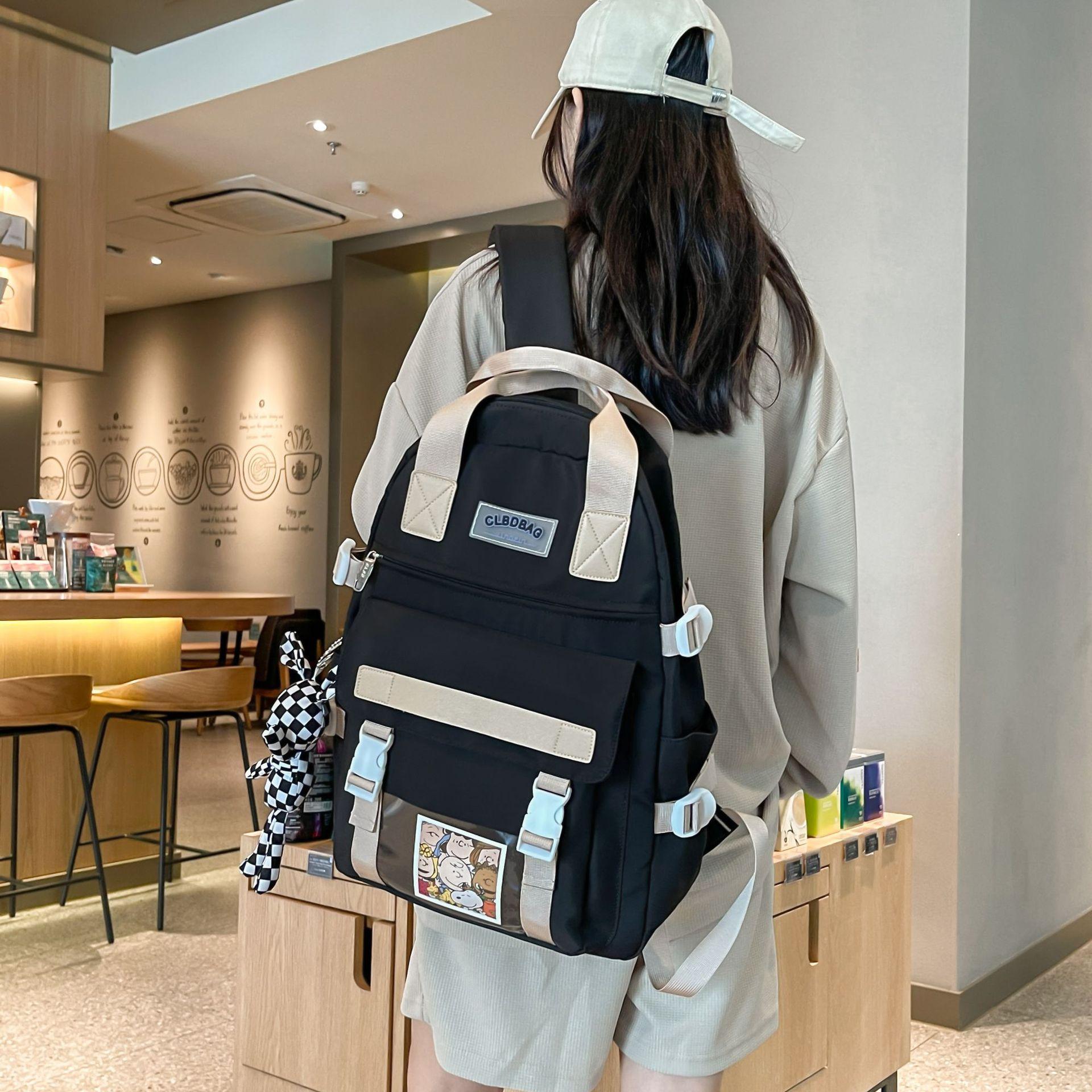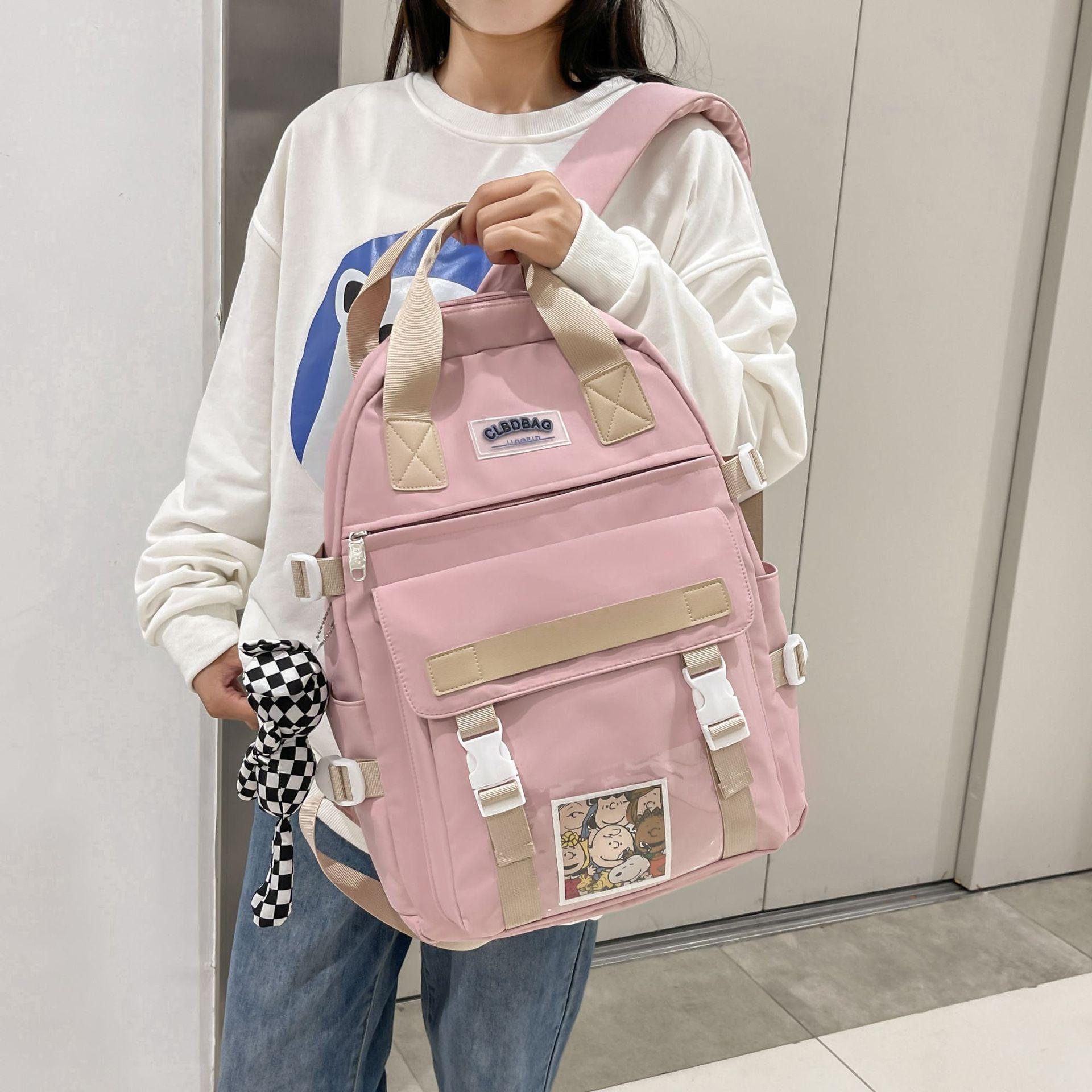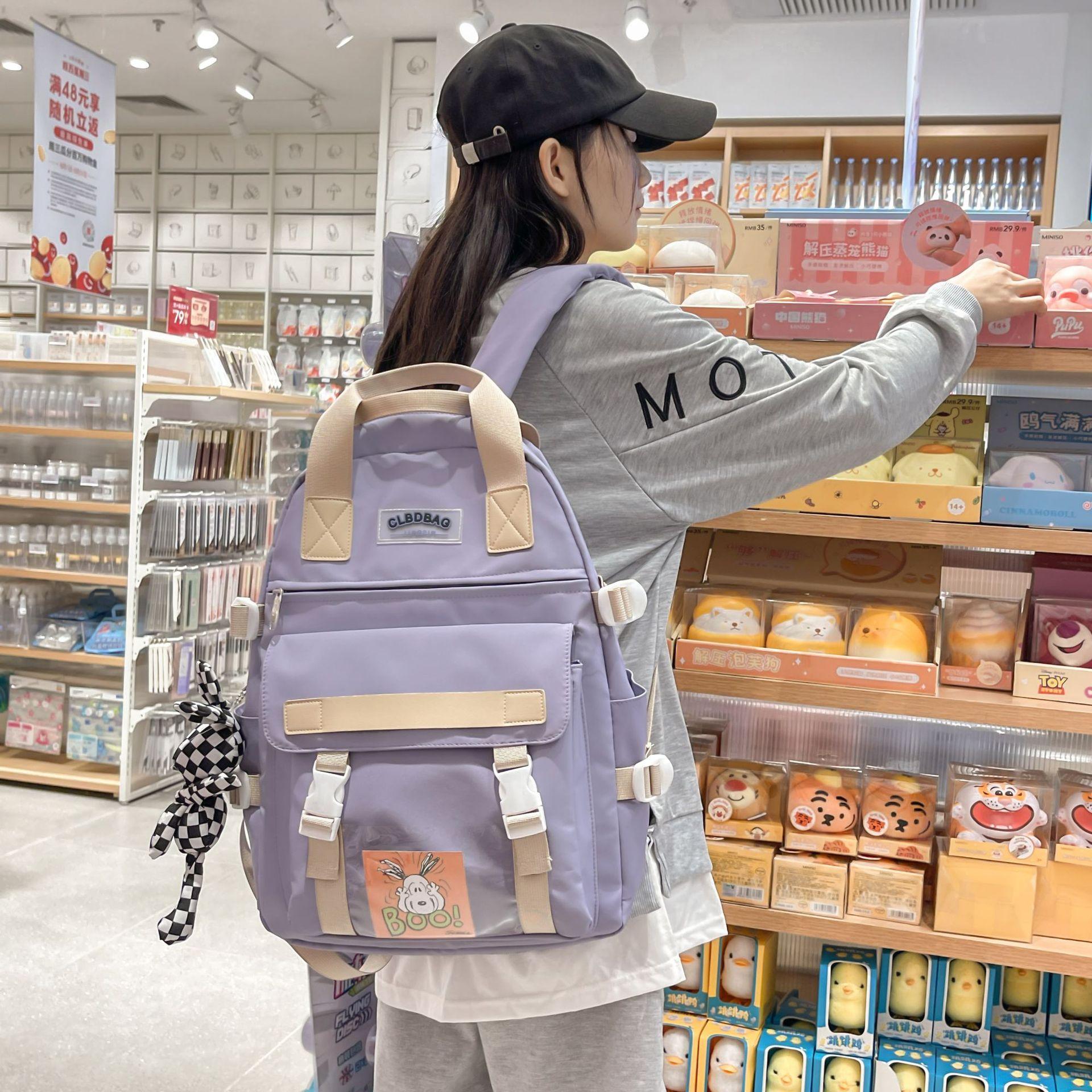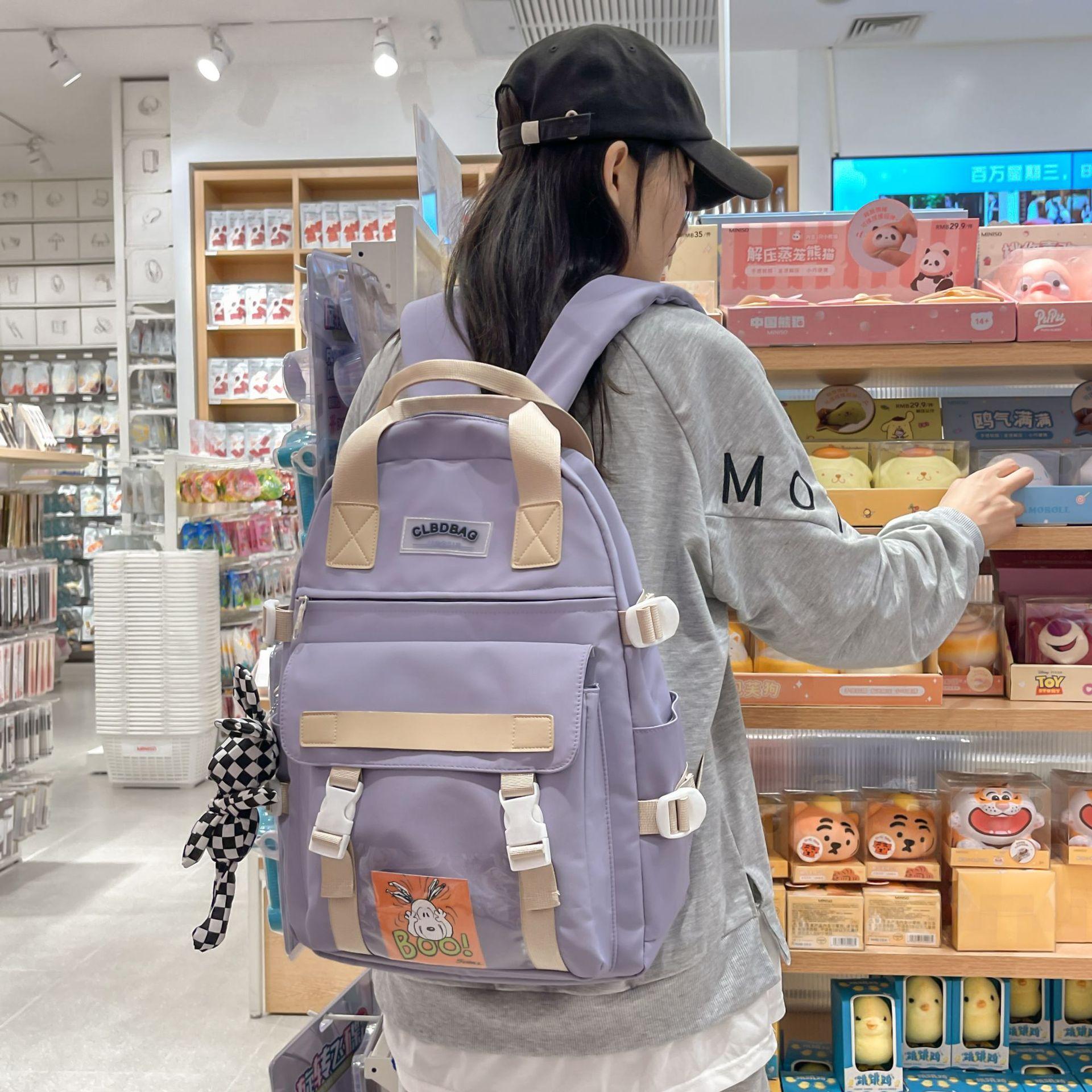 Mochila de estudiante de secundaria de estilo coreano de gran capacidad de aspecto elegante, mochila de viaje para computadora
