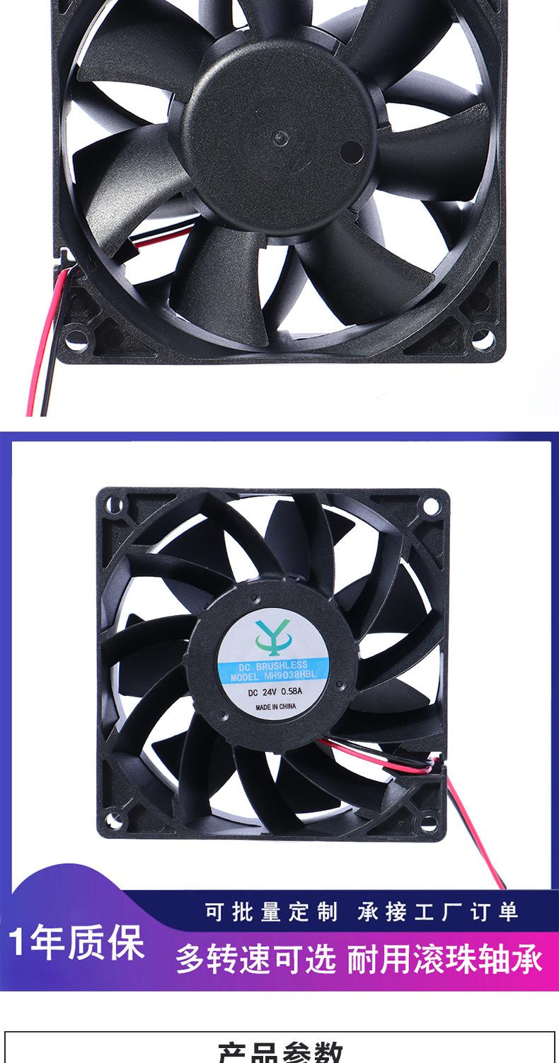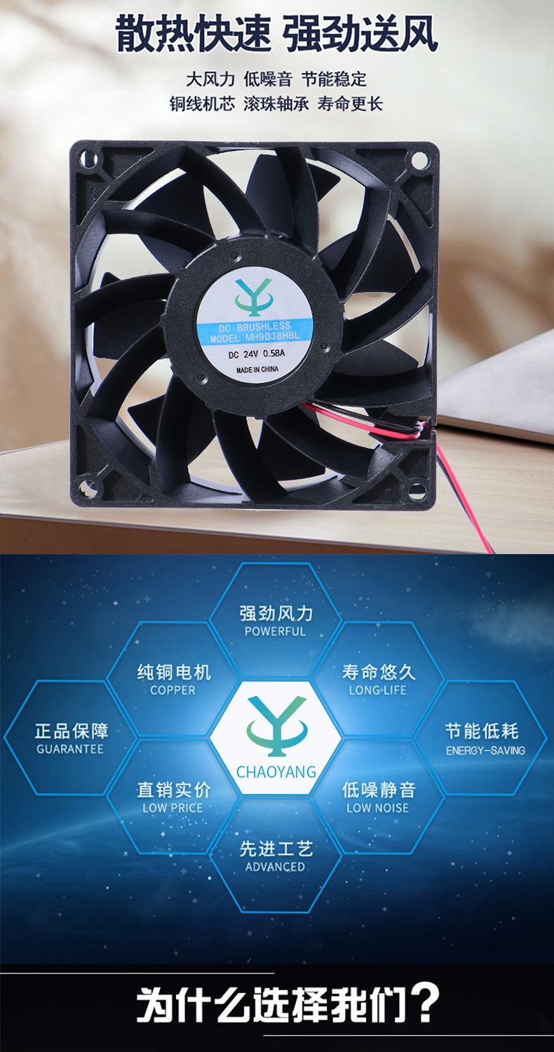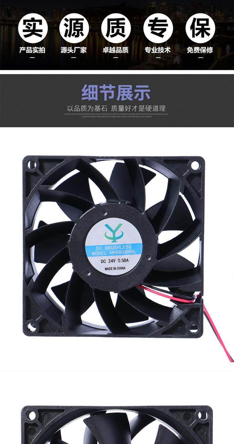 Ventilador de enfriamiento eléctrico violento 9038 Ventilador de aire de gran volumen de aire de doble bola de alta velocidad 9038 12V24V9238