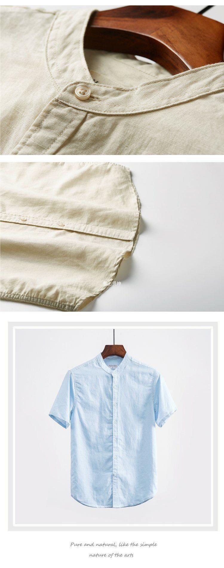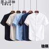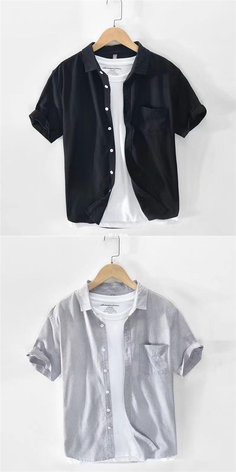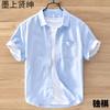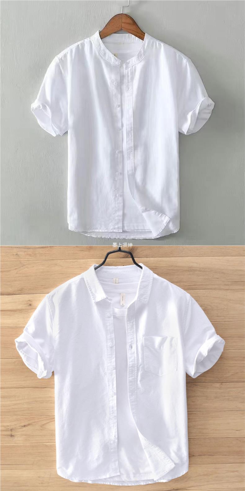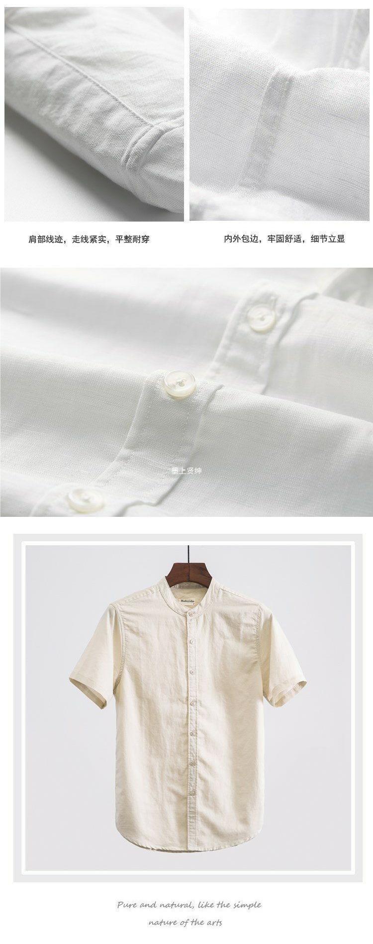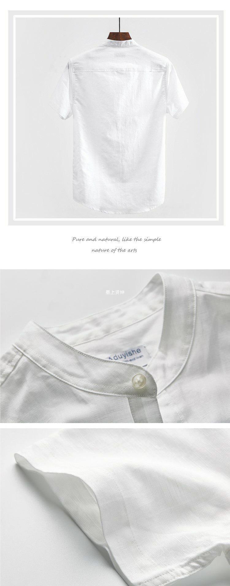 Camisa de lino para hombre, de manga corta, con solapa, de verano, fina, holgada, de algodón y lino, blanca, estilo informal, fresca, para hombre