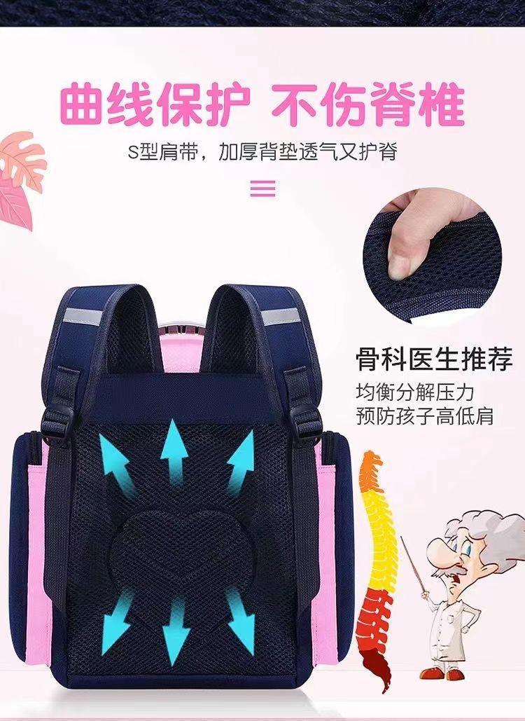 Mochila escolar para estudiantes de primaria, niñas, grados 1-3-6, linda mochila ligera con reducción de carga, protección para la columna vertebral, mochila para niños