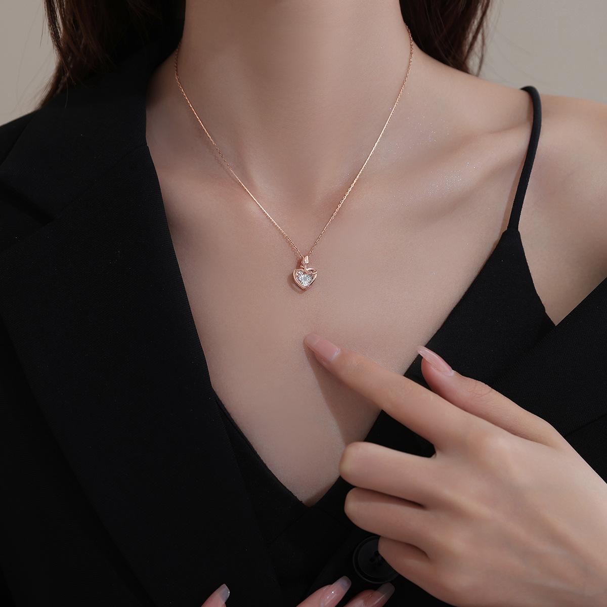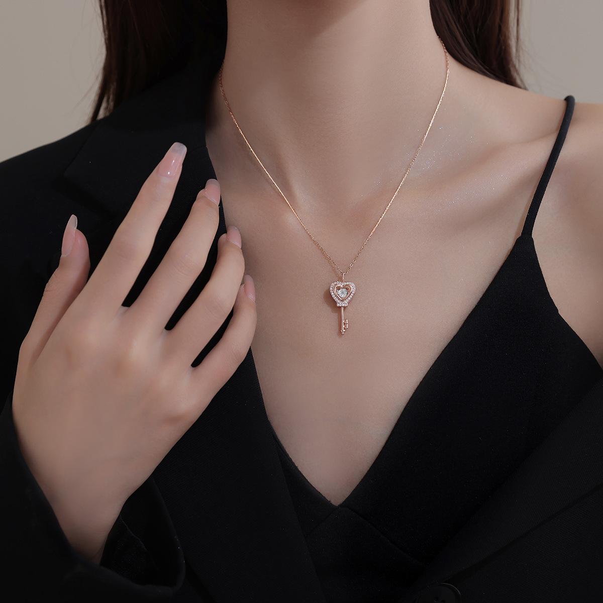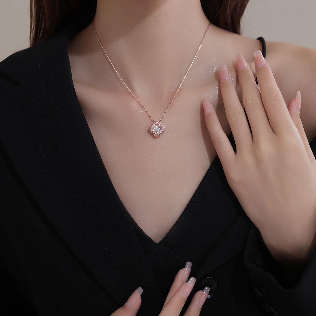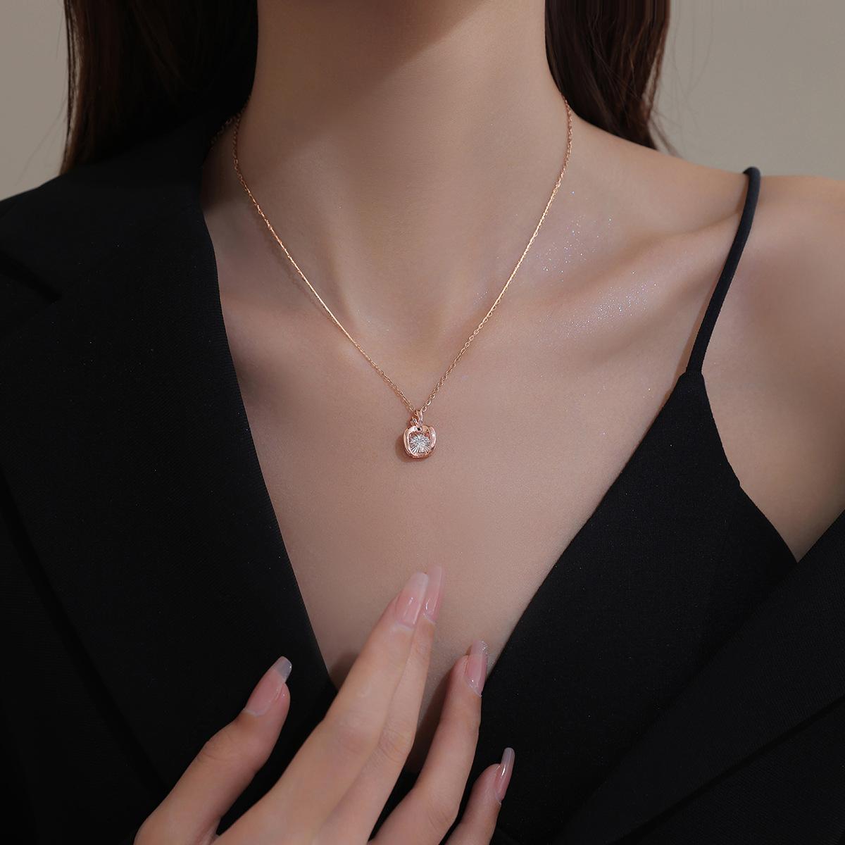 Elegante collar con colgante de la serie Smart en oro rosa, cadena de clavícula sexy a la moda con diamantes brillantes y diseño avanzado.