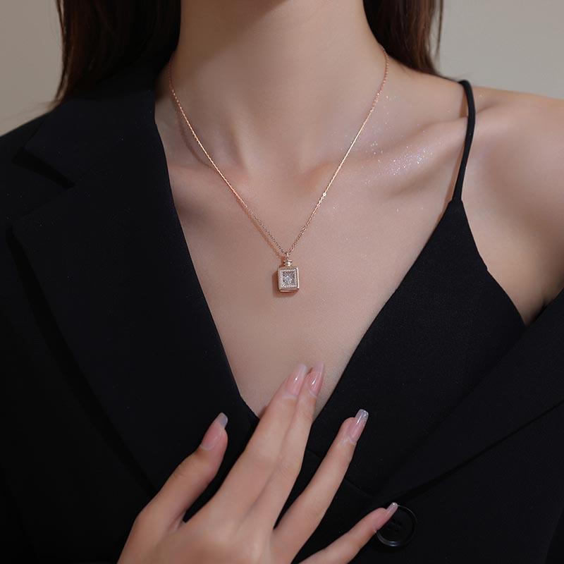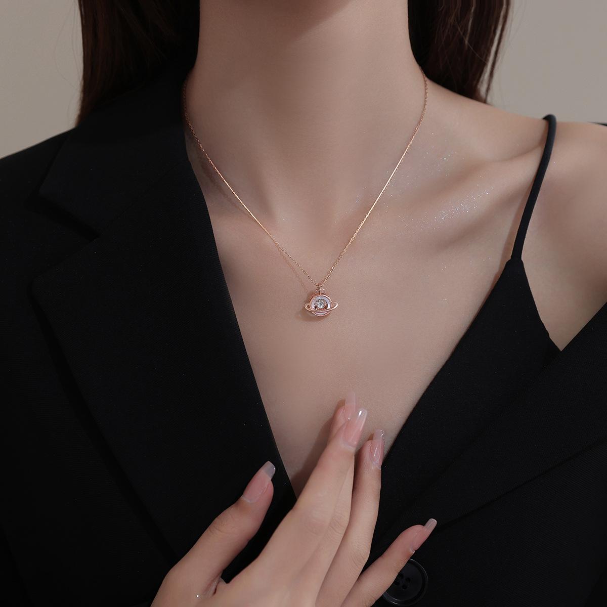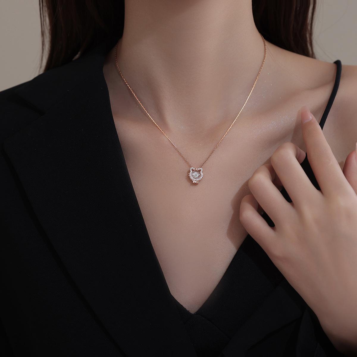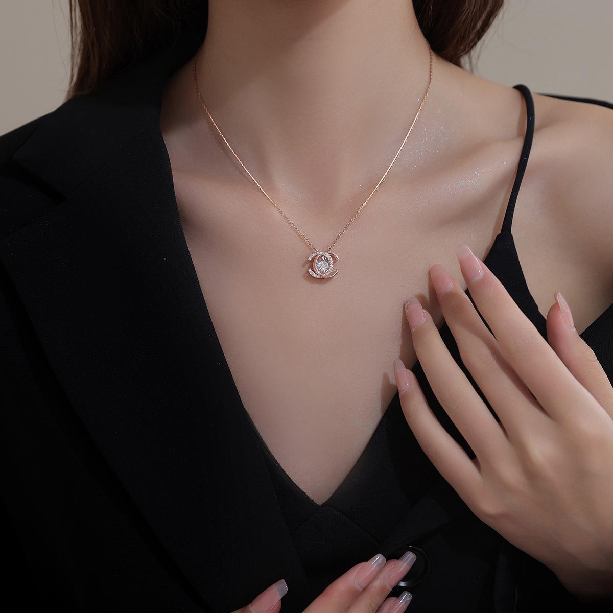 Elegante collar con colgante de la serie Smart en oro rosa, cadena de clavícula sexy a la moda con diamantes brillantes y diseño avanzado.