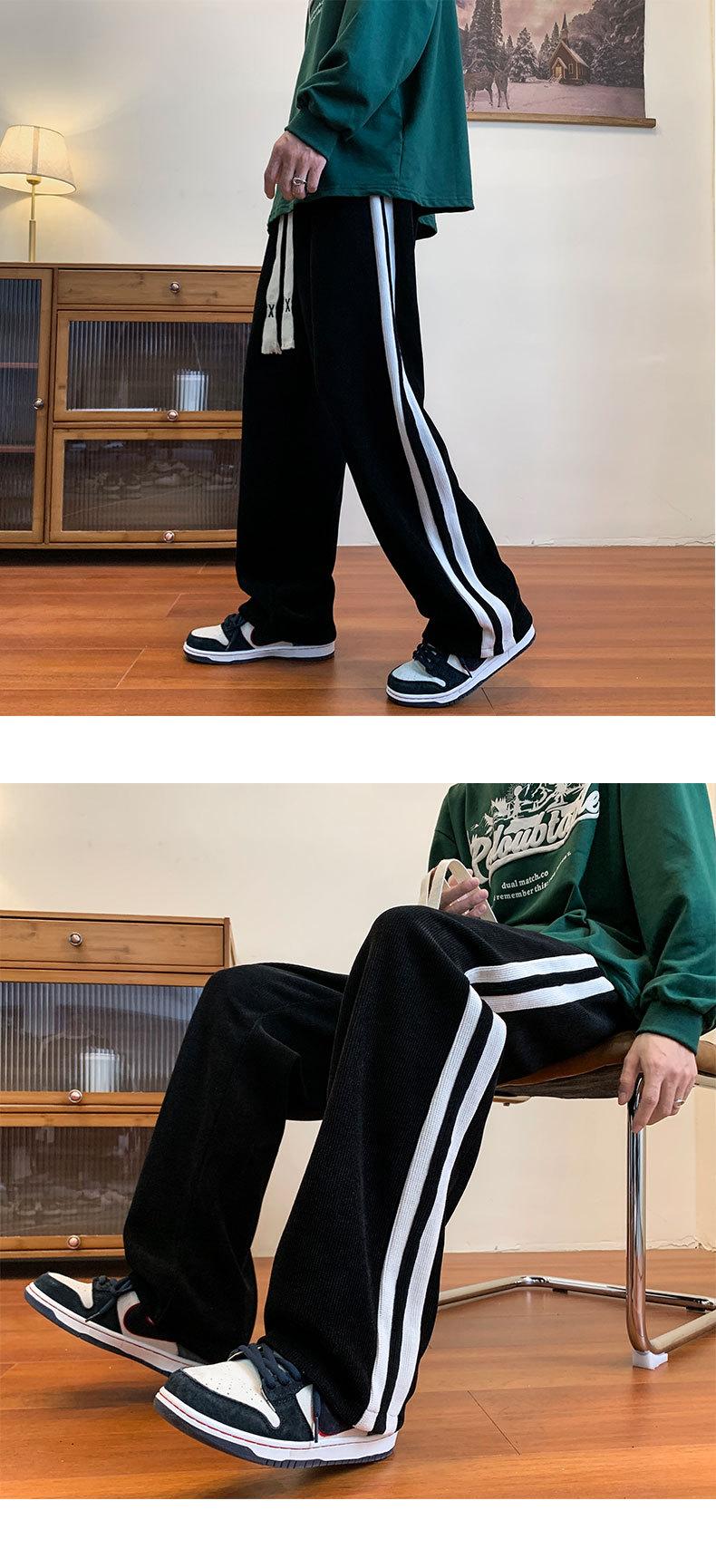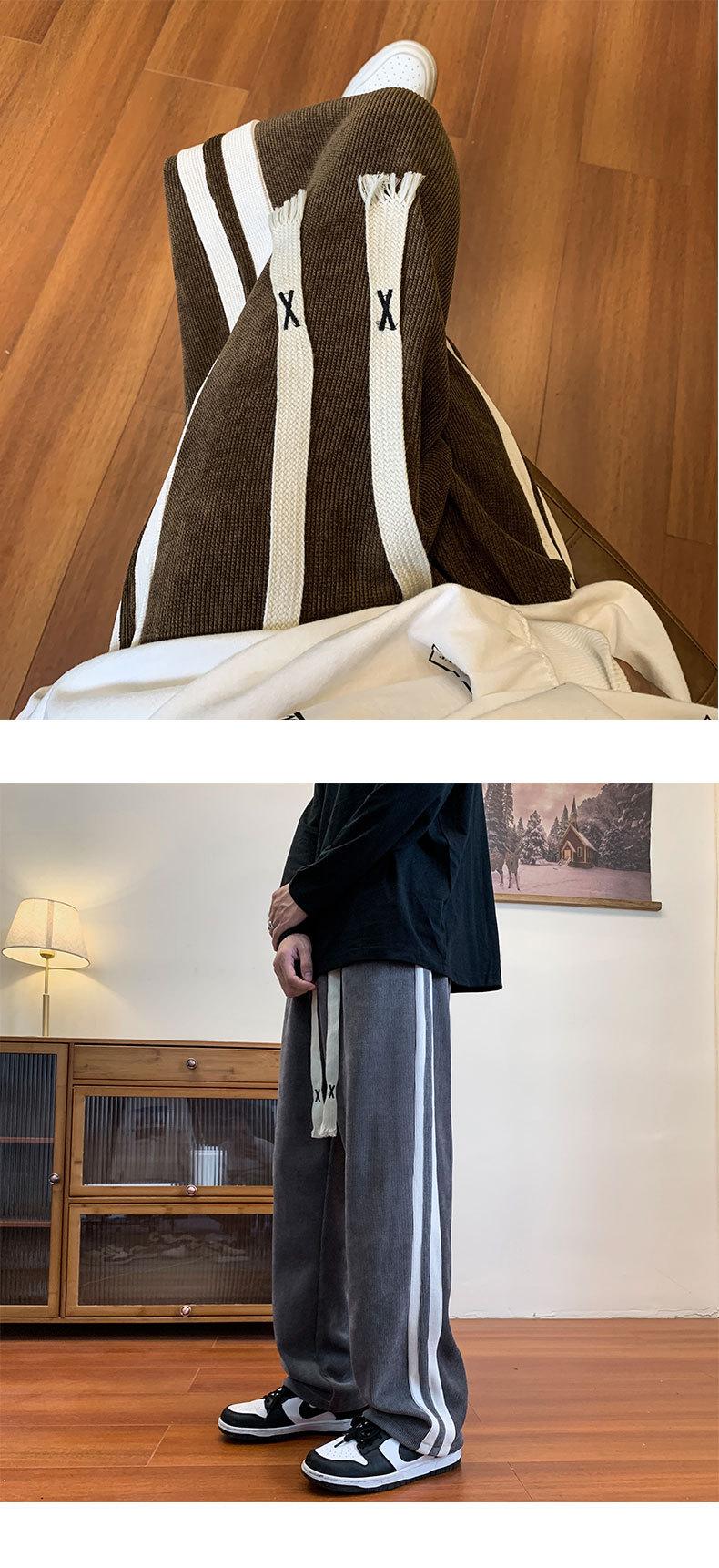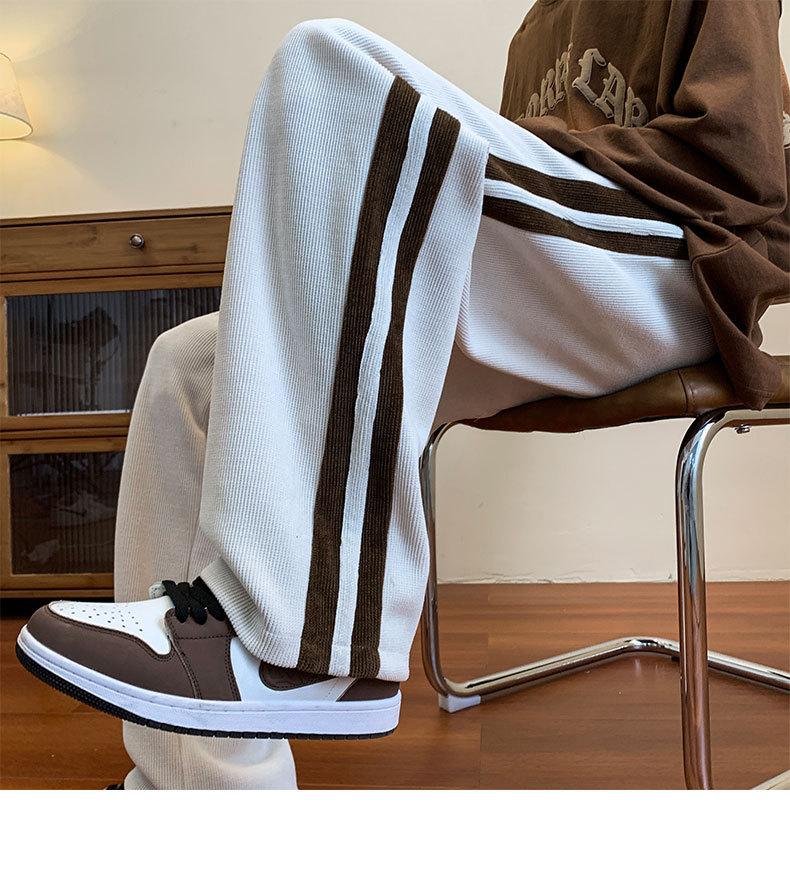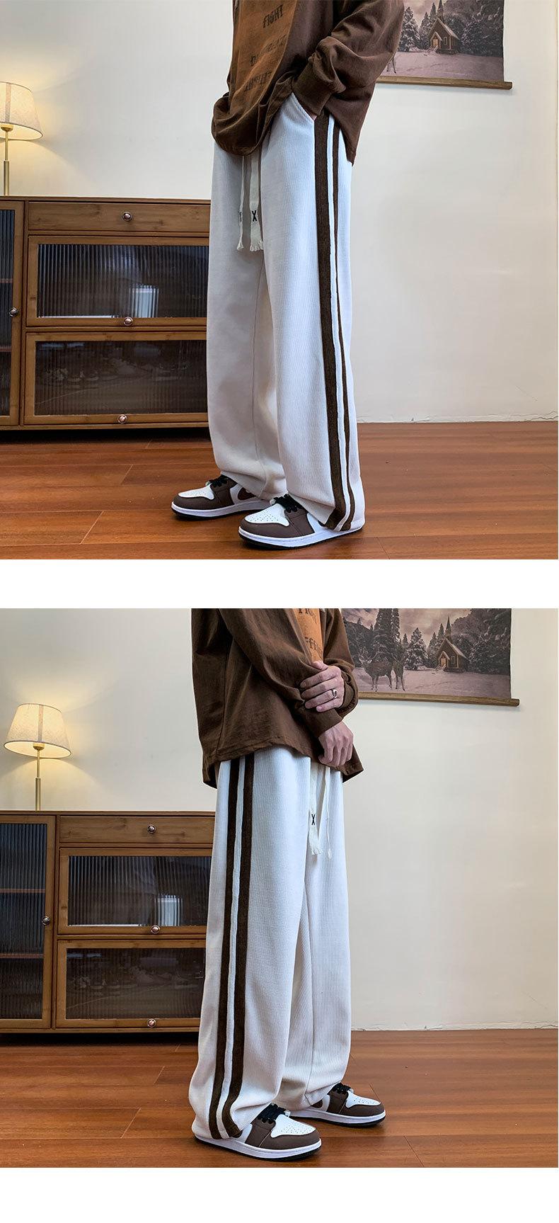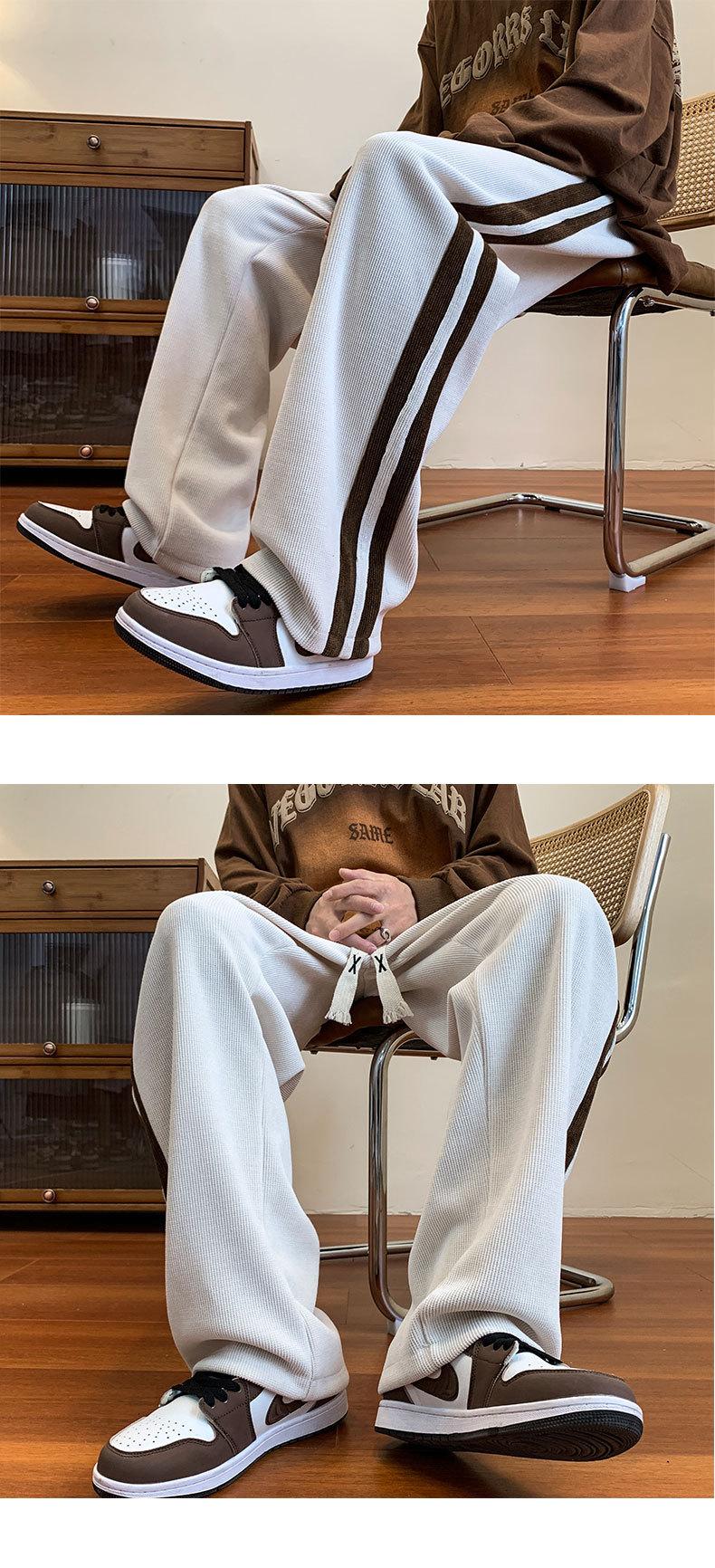Pantalones deportivos de pierna ancha y recta para hombre, marca de moda de primavera y otoño, holgados, a rayas, informales, de pierna ancha, 2023