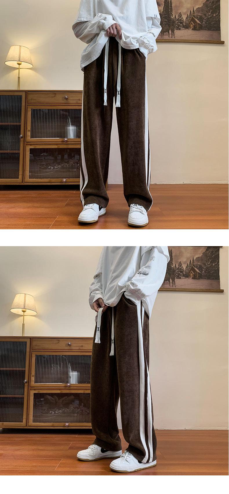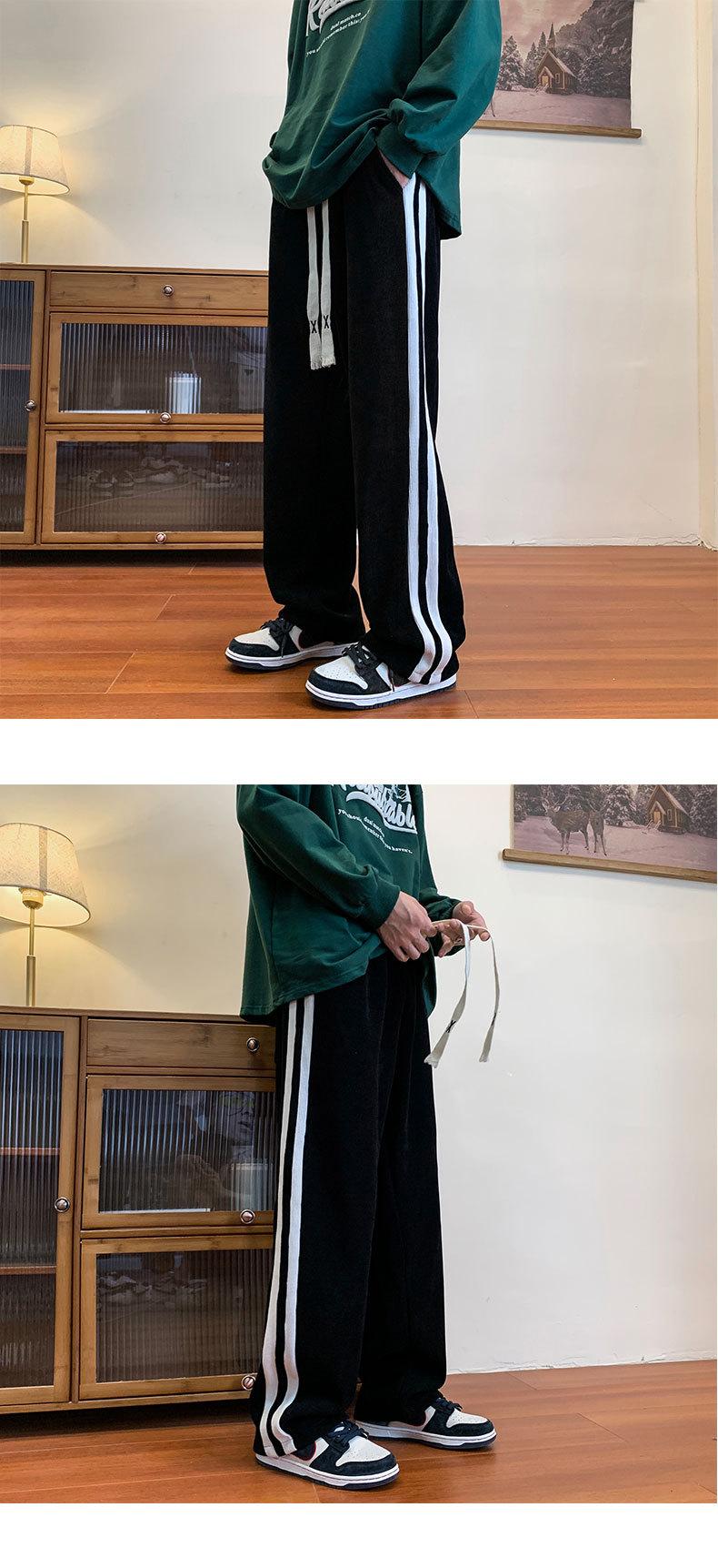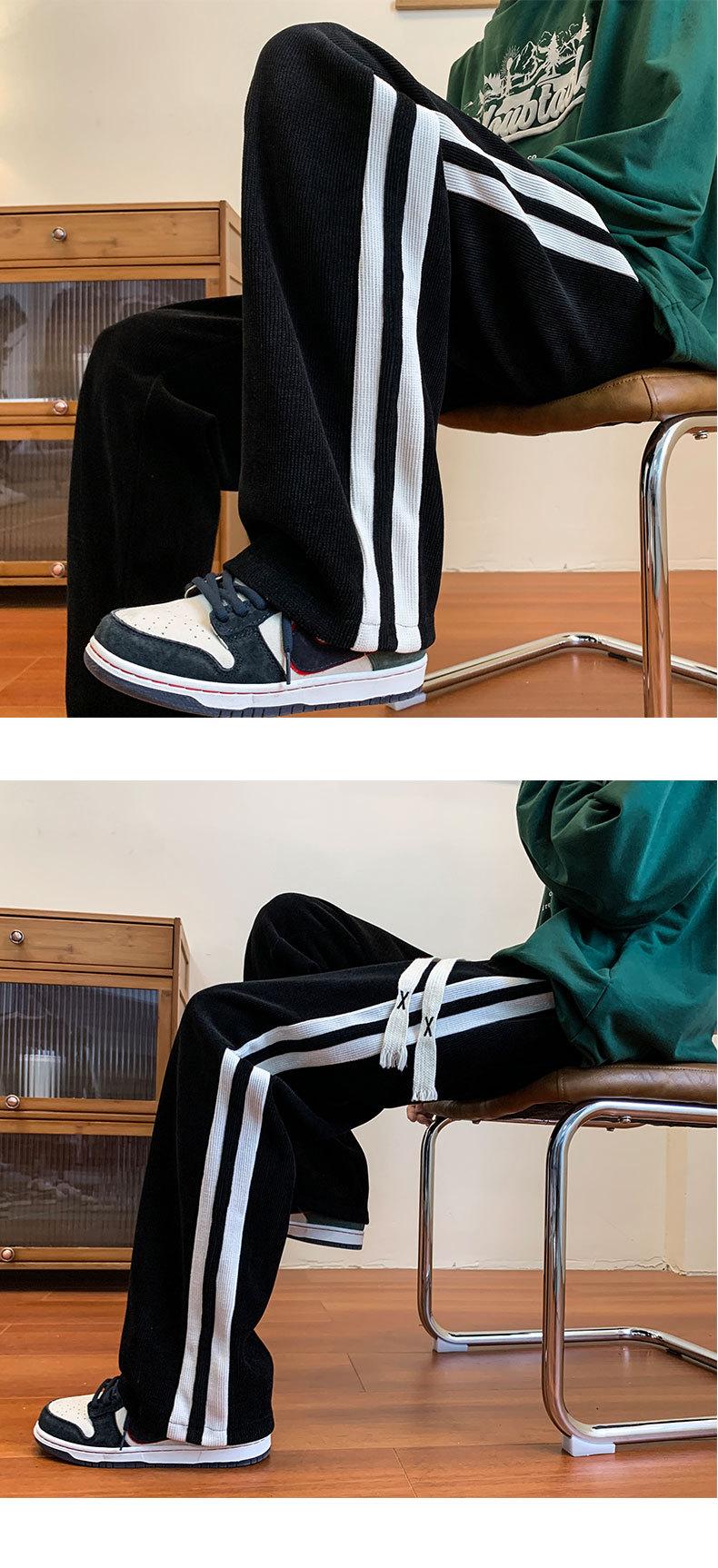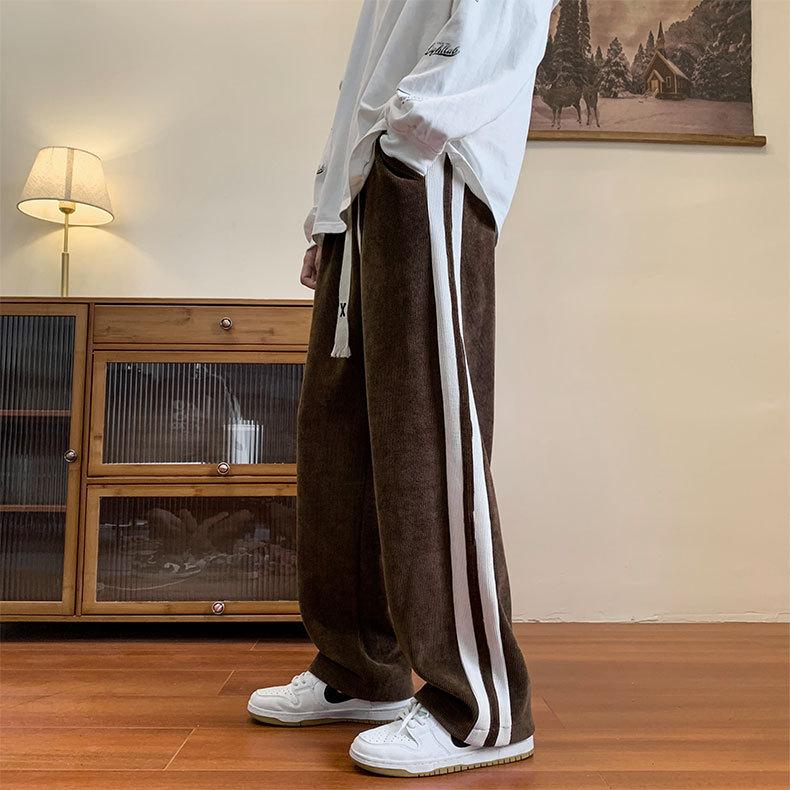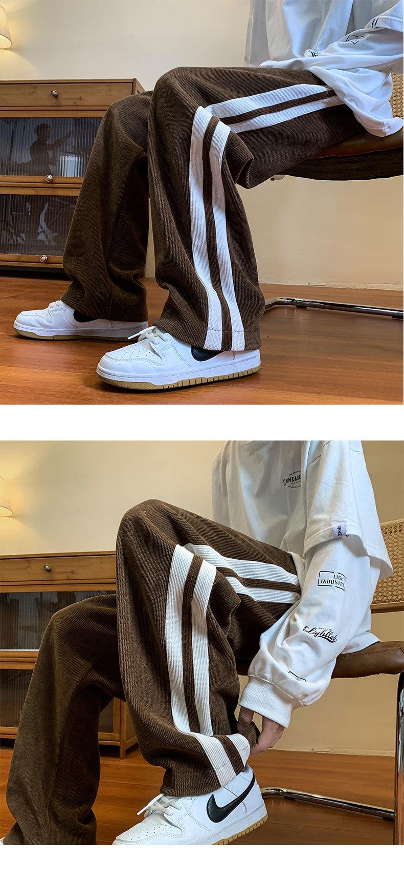 Pantalones deportivos de pierna ancha y recta para hombre, marca de moda de primavera y otoño, holgados, a rayas, informales, de pierna ancha, 2023