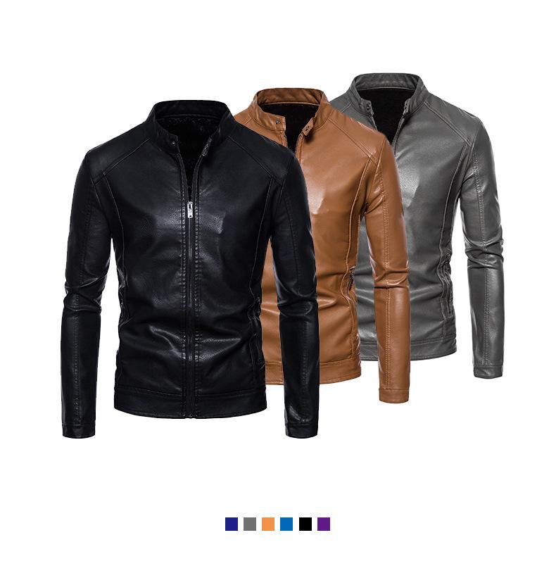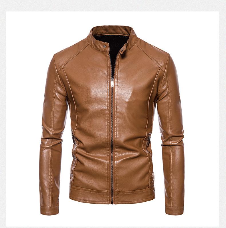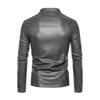 Chaqueta de cuero superior nueva de 2023, de cuero suave de PU para hombre, para otoño e invierno, ligera, informal, de negocios, con cuello, sencilla y combinable con todo.