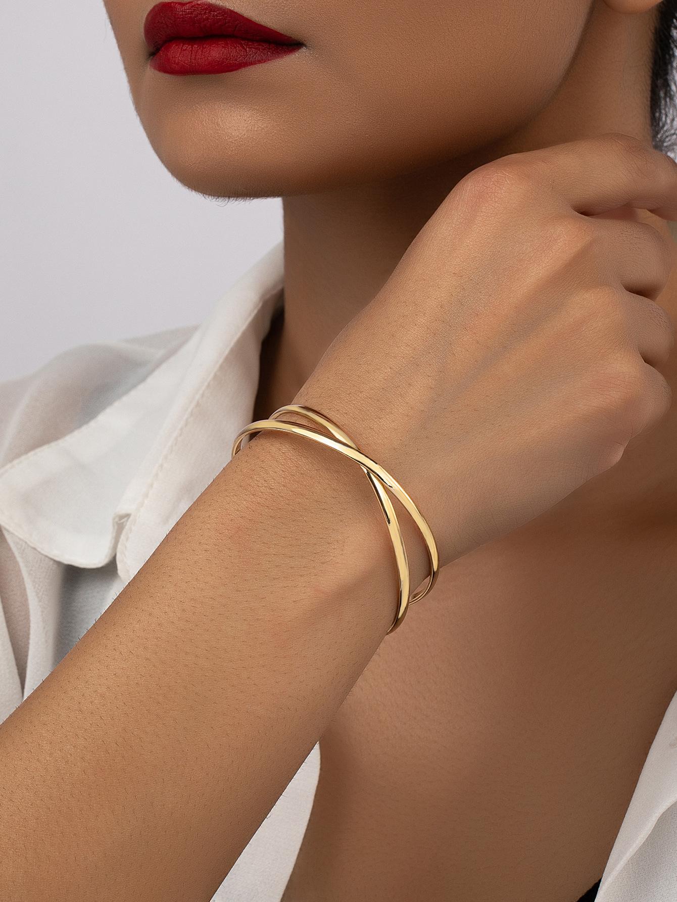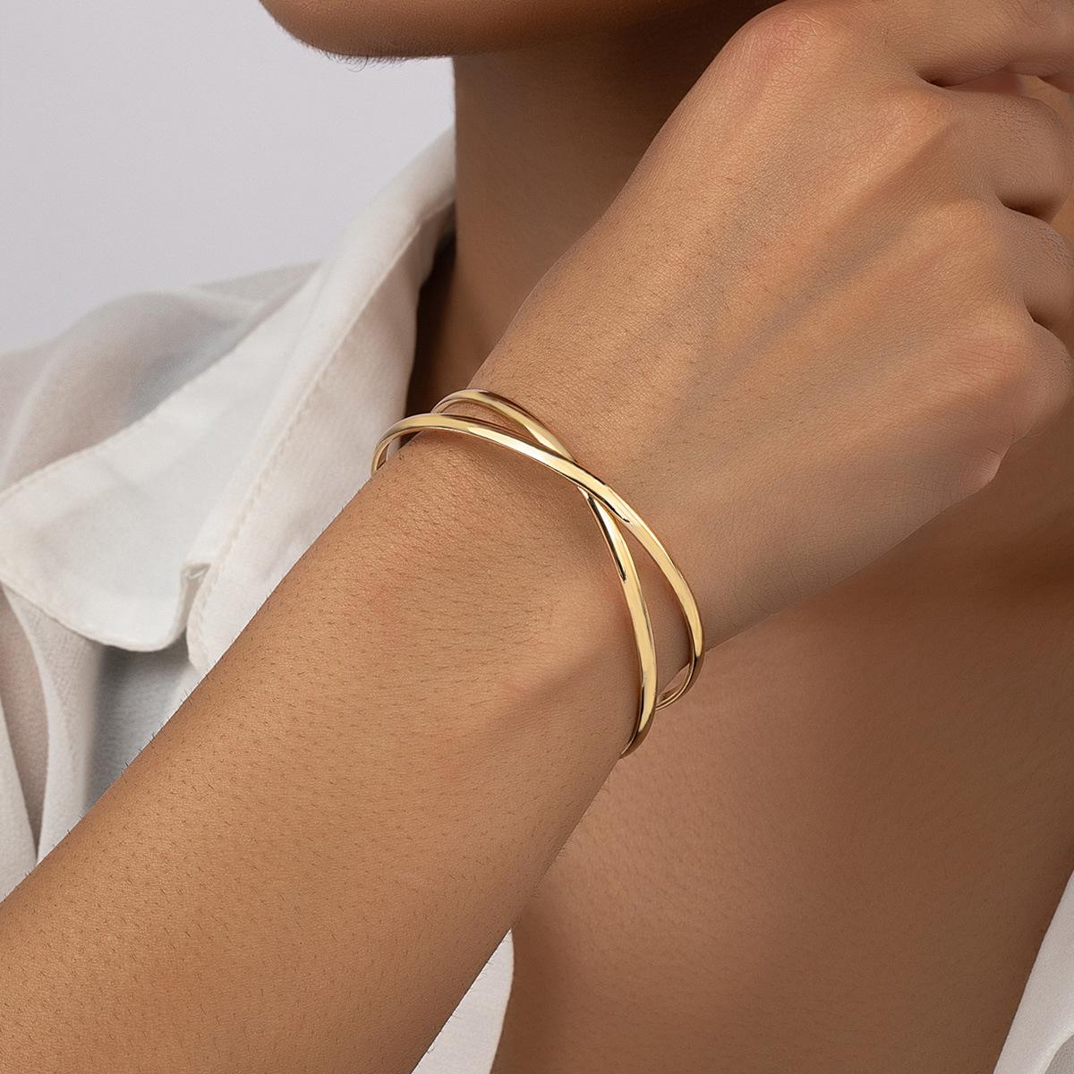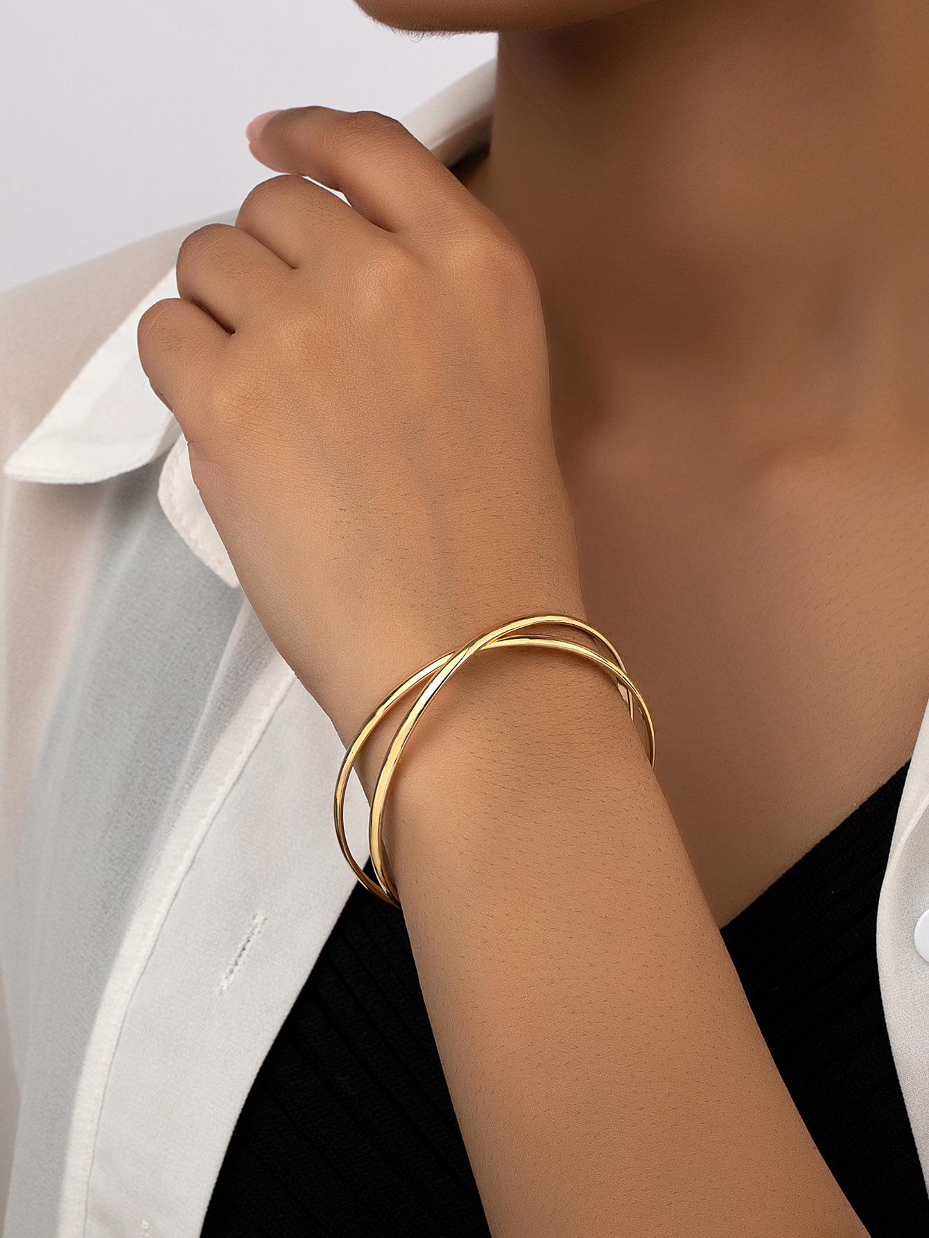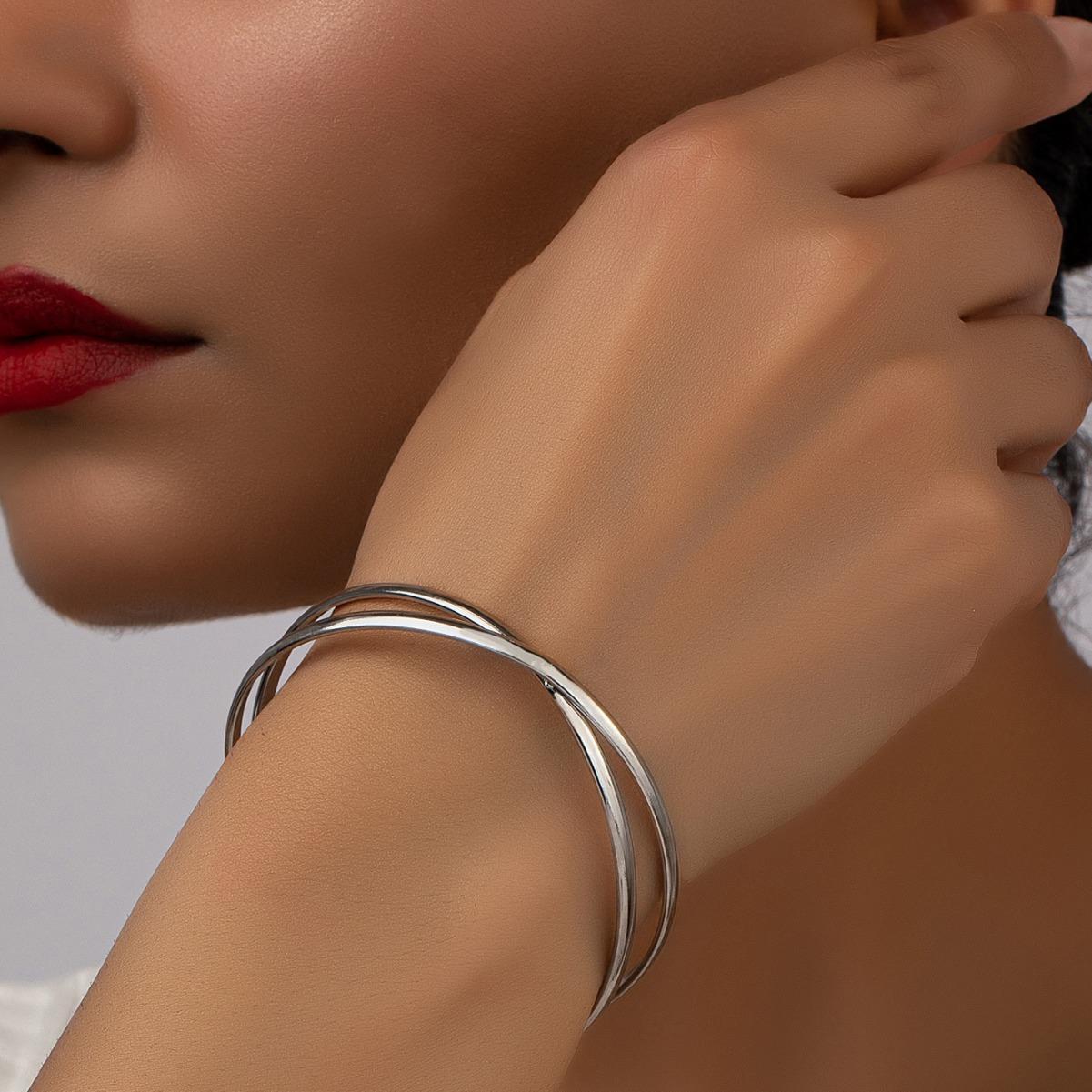 Pulsera de Personalidad Transfronteriza Europea y Americana Aleación Diseño Nicho de Alta Gama Pulsera de Moda para Mujer Lujo Ligero Simple Doble Anillo