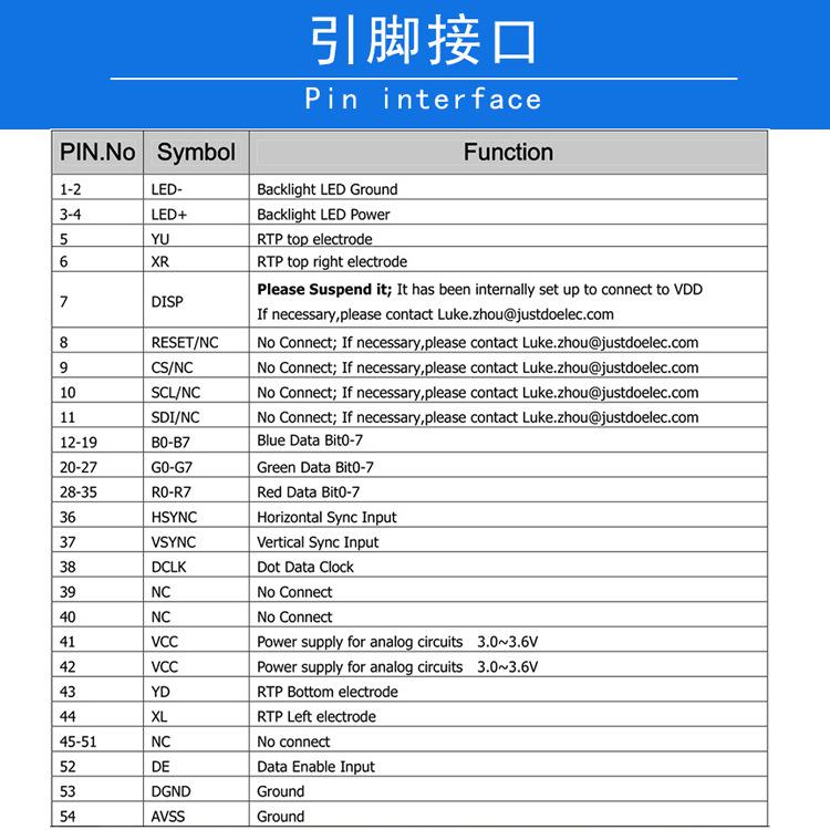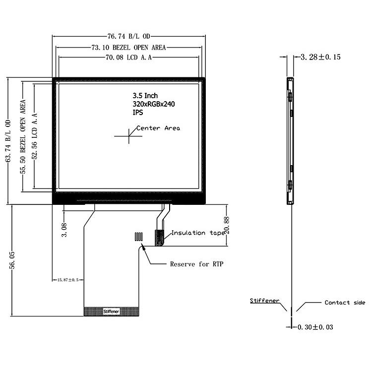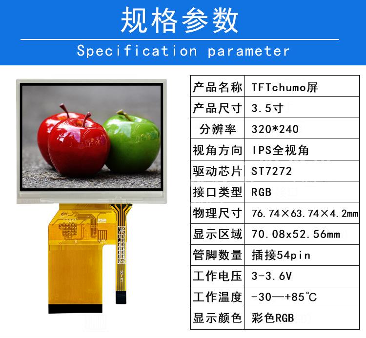 Pantalla TFT de 3,5 pulgadas con resistencia táctil IPS Full View RGB interfaz enchufable 54 pines ST7272