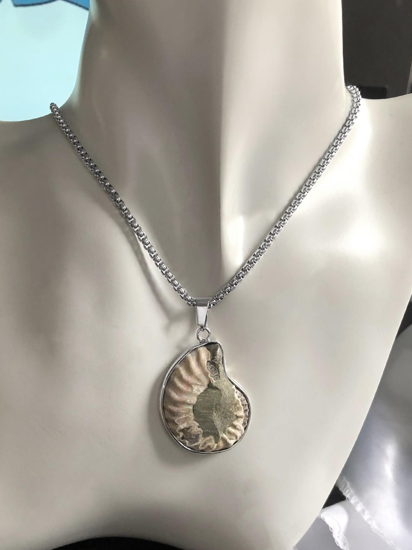 Amazon Venta Caliente Colgante Irregular de Piedra Natural con Tornillo Cadena de Acero Titanio Color Inoxidable Cadena de Lana de Acero Inoxidable