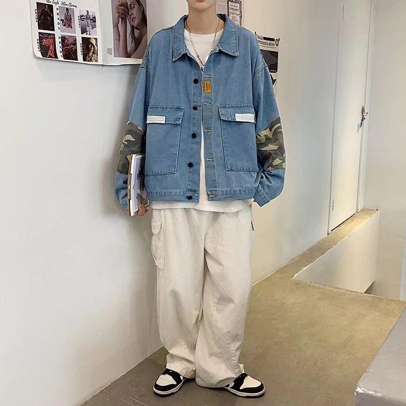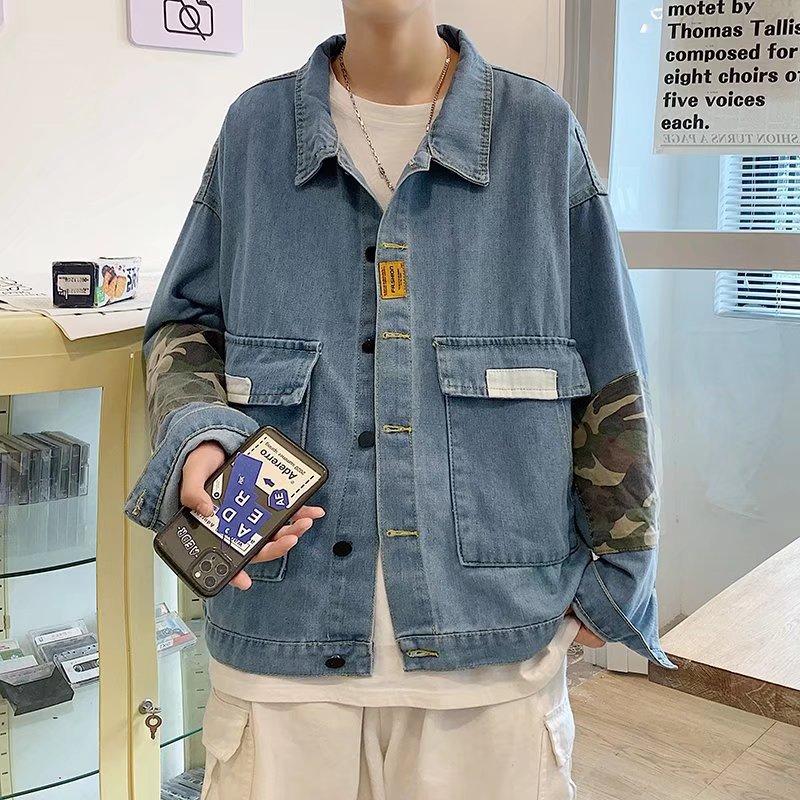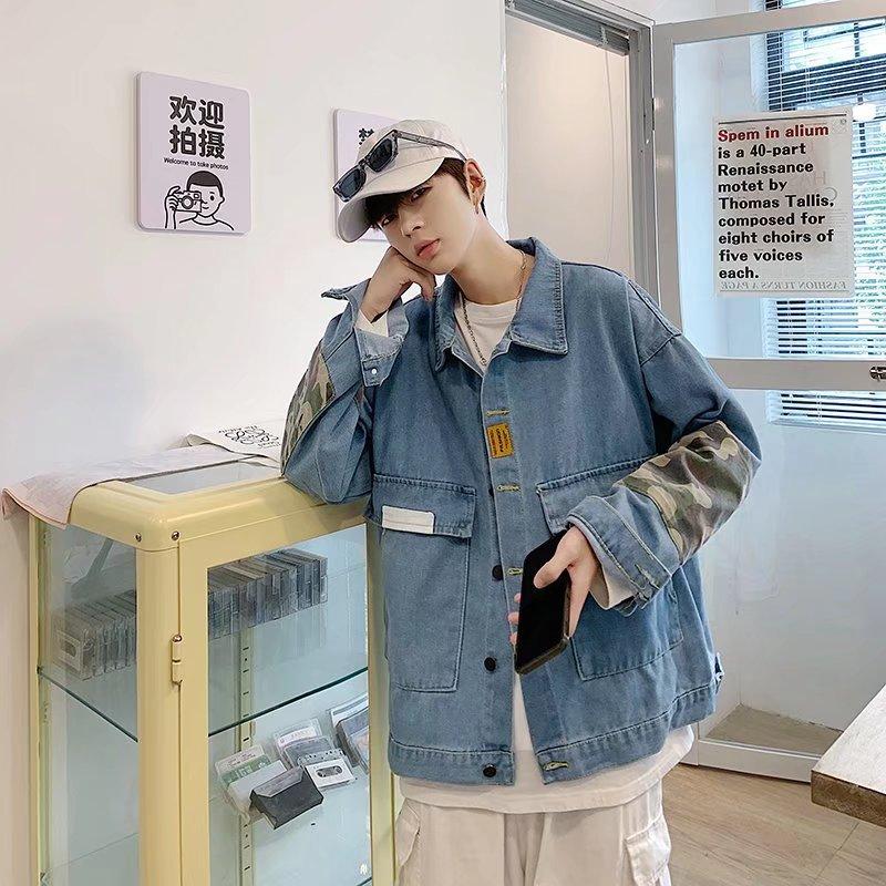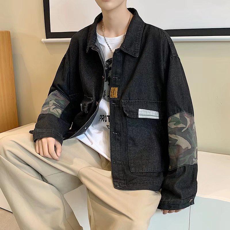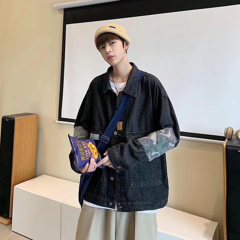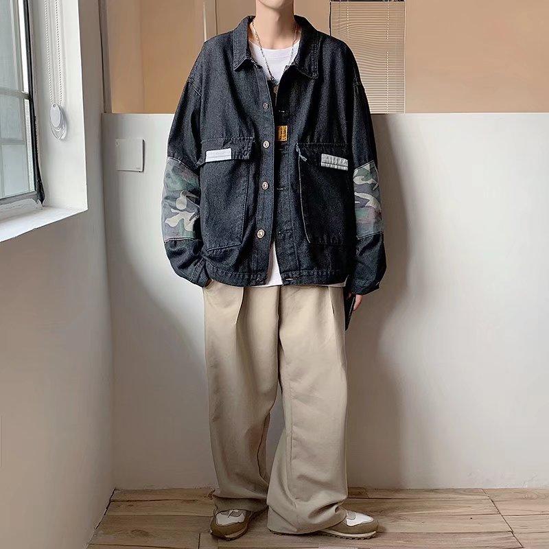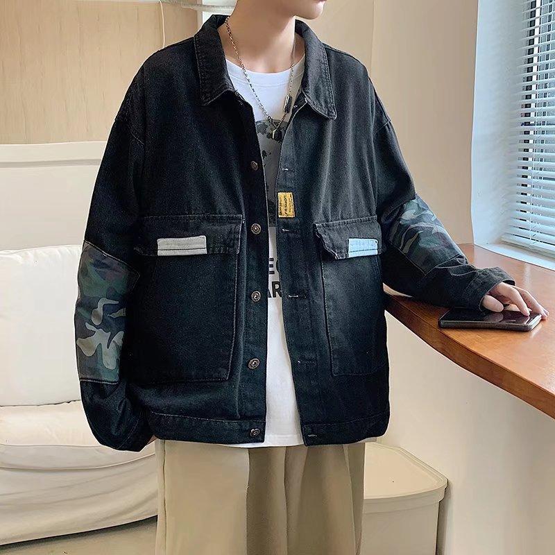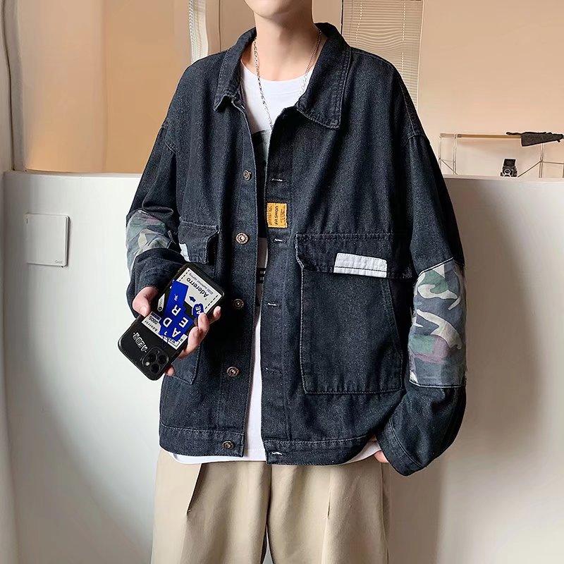 Abrigo vaquero para hombre, ropa de trabajo de primavera y otoño, cárdigan holgado de marca de moda para hombre, chaqueta informal con solapa superior para hombre