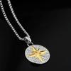 Suministro de comercio exterior europeo y americano, colgante redondo de brújula de diamante, collar de acero de titanio combinable con hip hop, joyería personalizada para hombres y mujeres