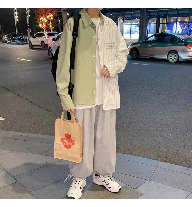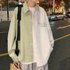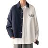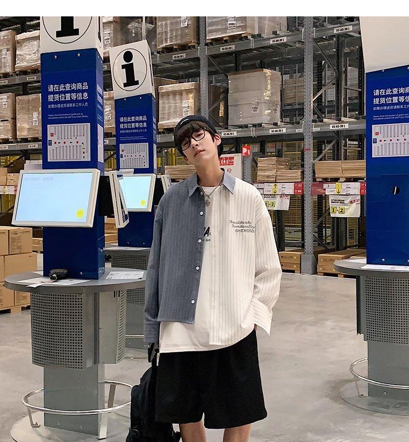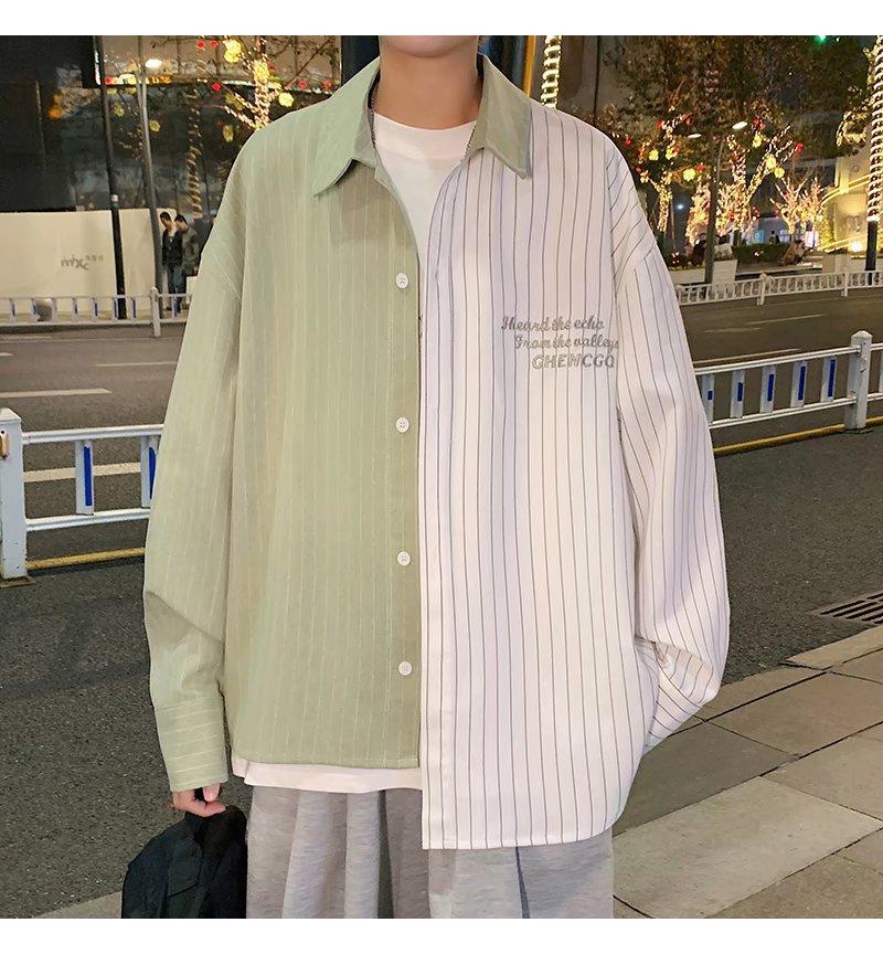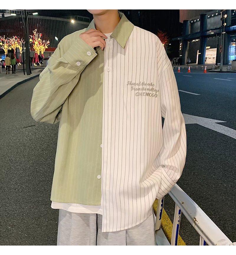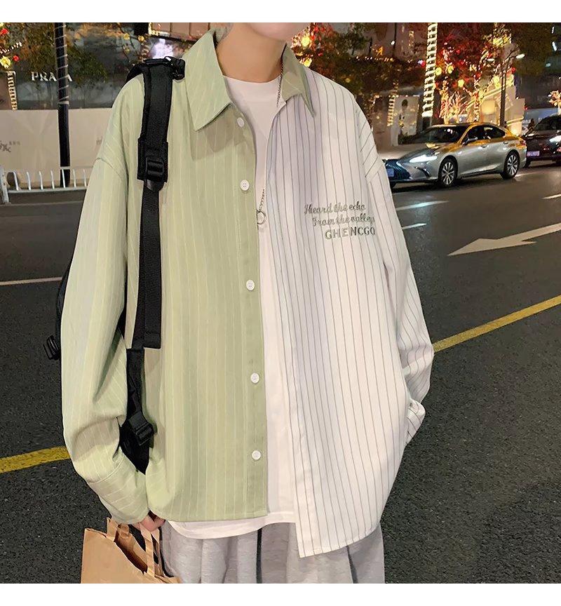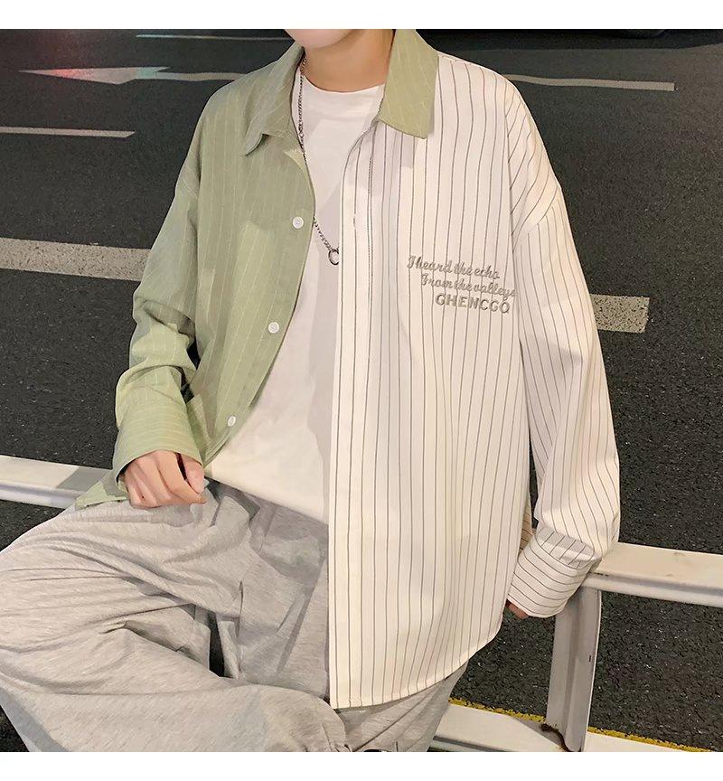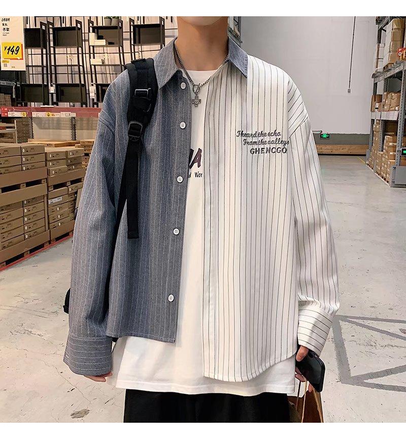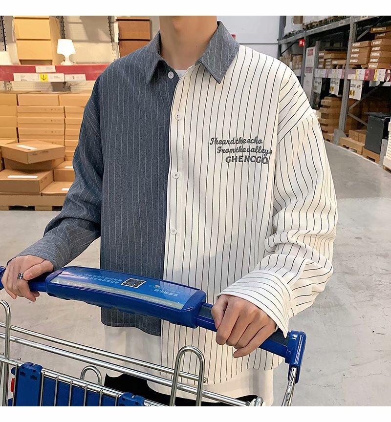 Camisa de rayas de manga larga irregular para hombre, primavera y otoño, costuras de color en contraste, marca de moda Ruan Shuai, diseño de camisa de otoño con sentido del diseño.