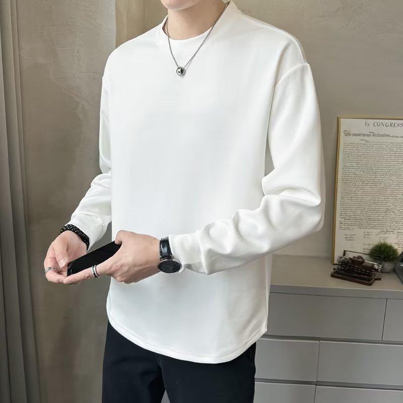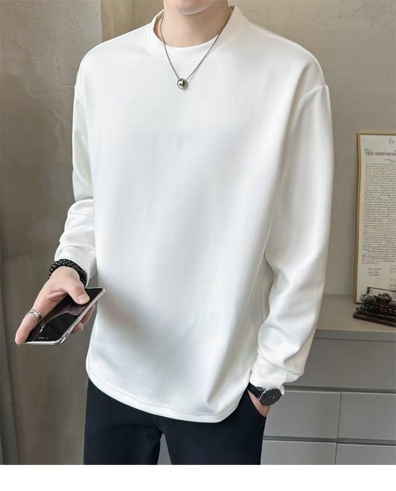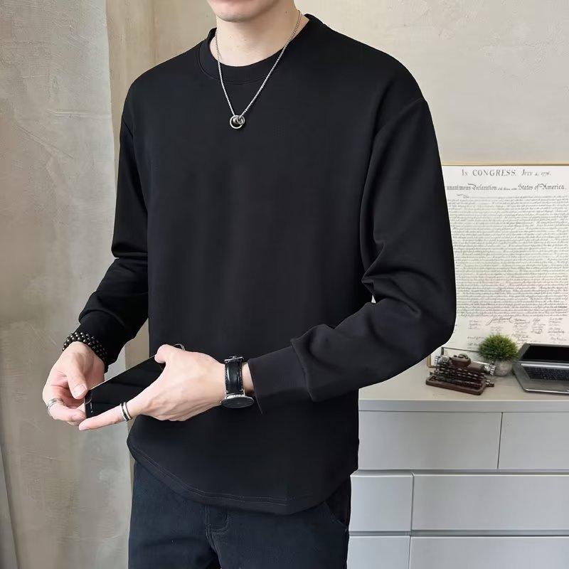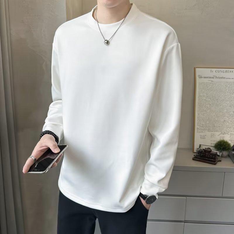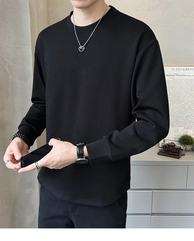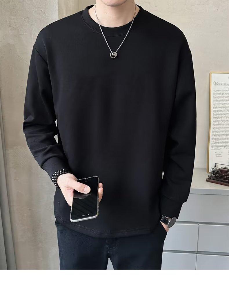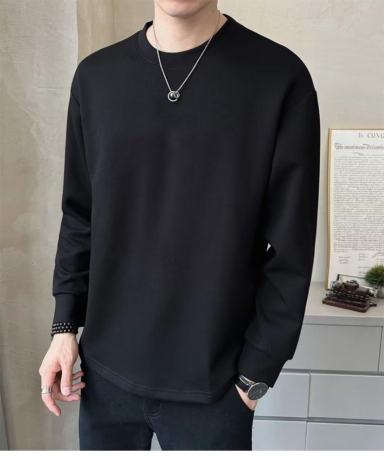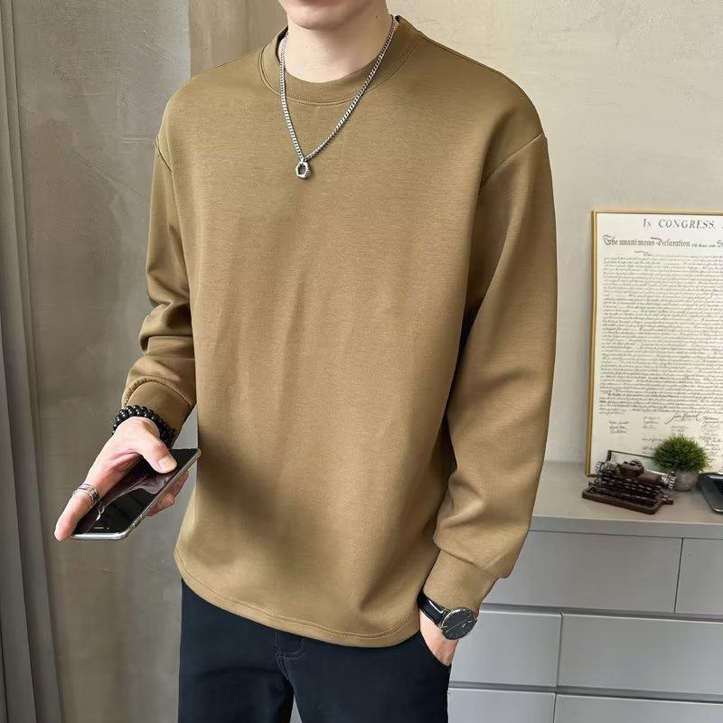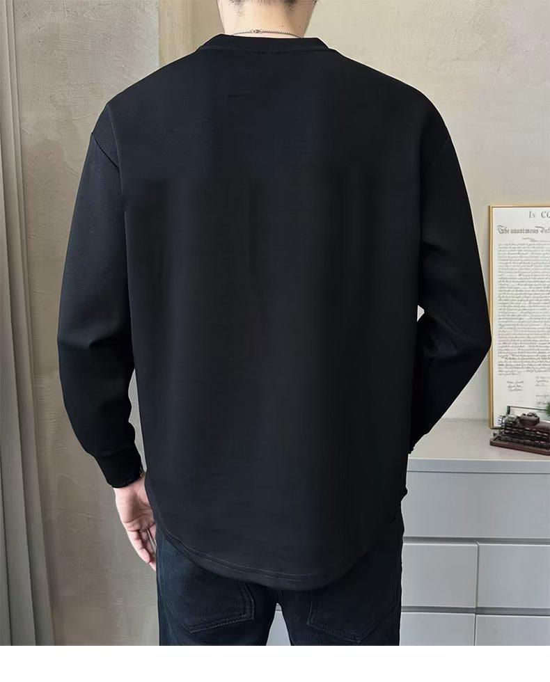 Camiseta de manga larga para hombre, nueva marca de moda de primavera y otoño, diseño holgado e informal de cuello redondo, camisa de color liso que combina con todo, top de moda