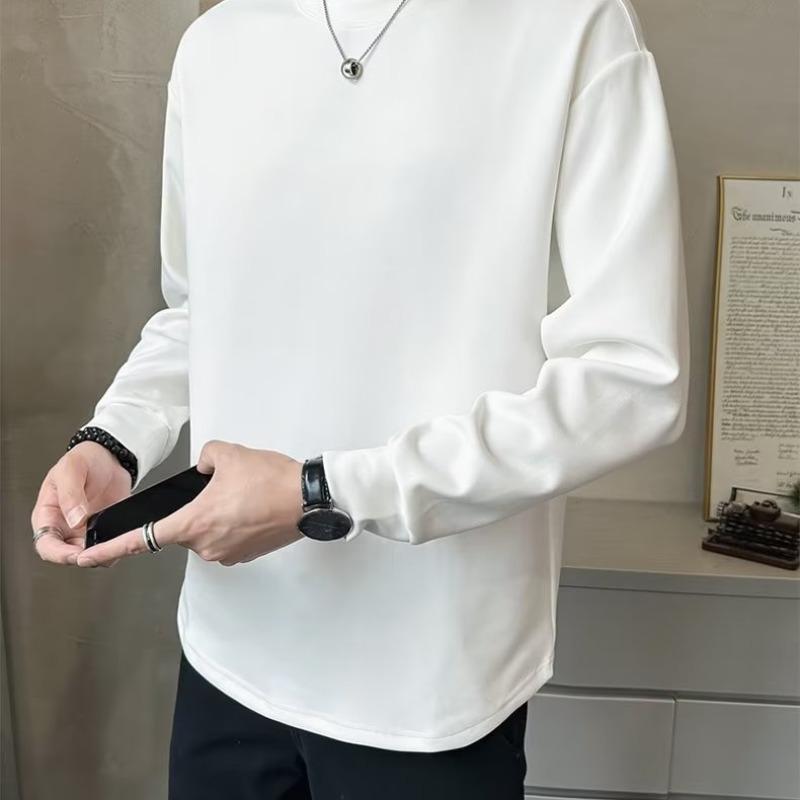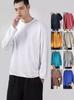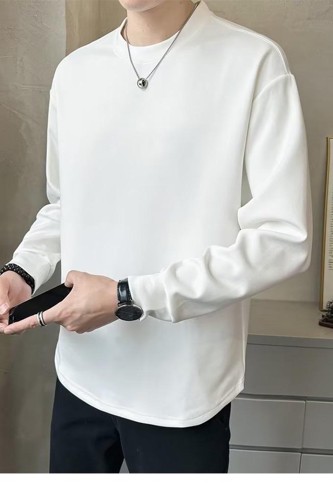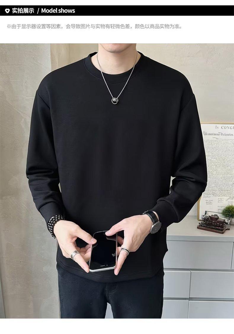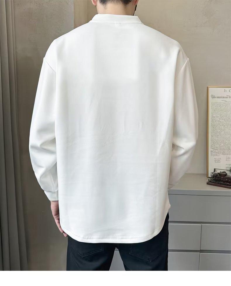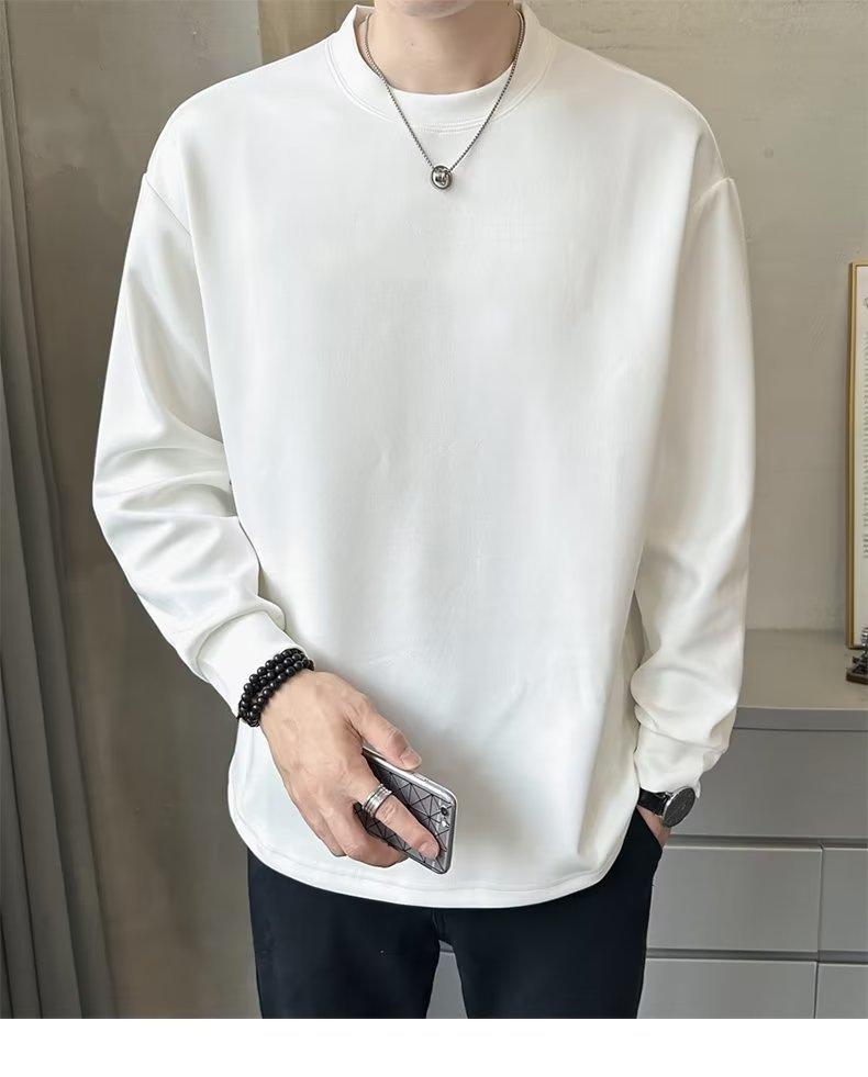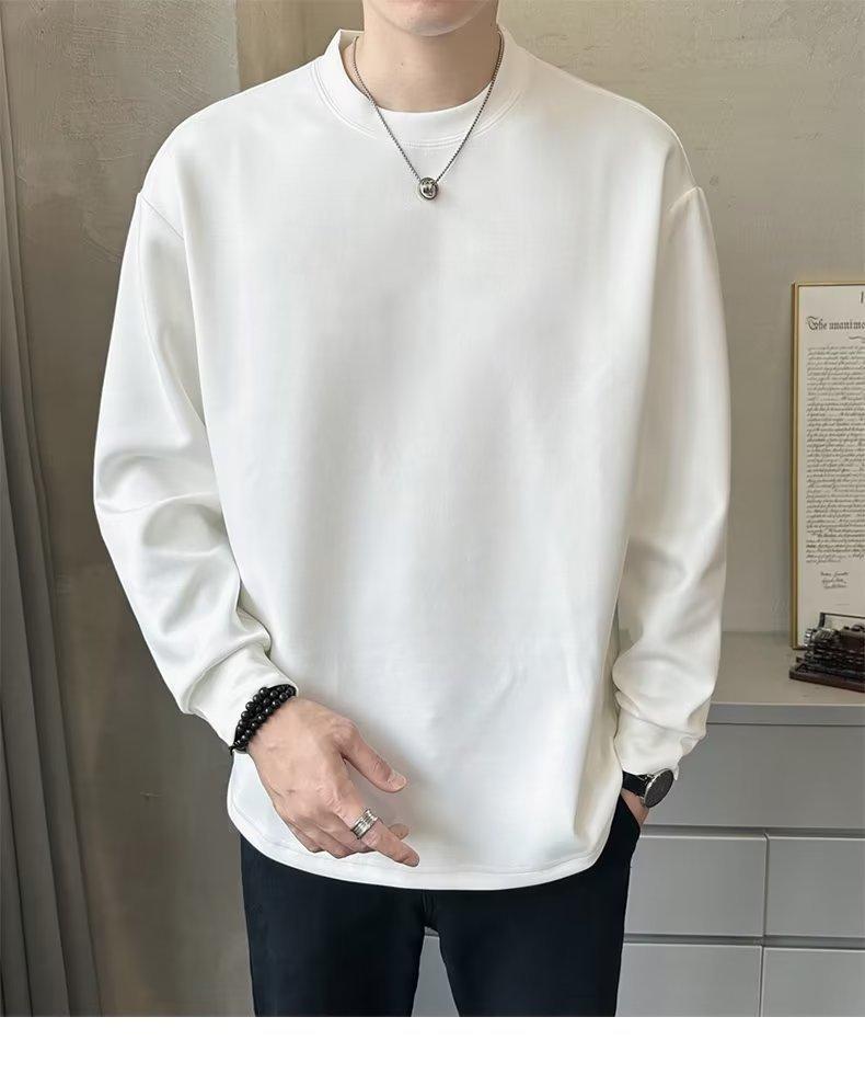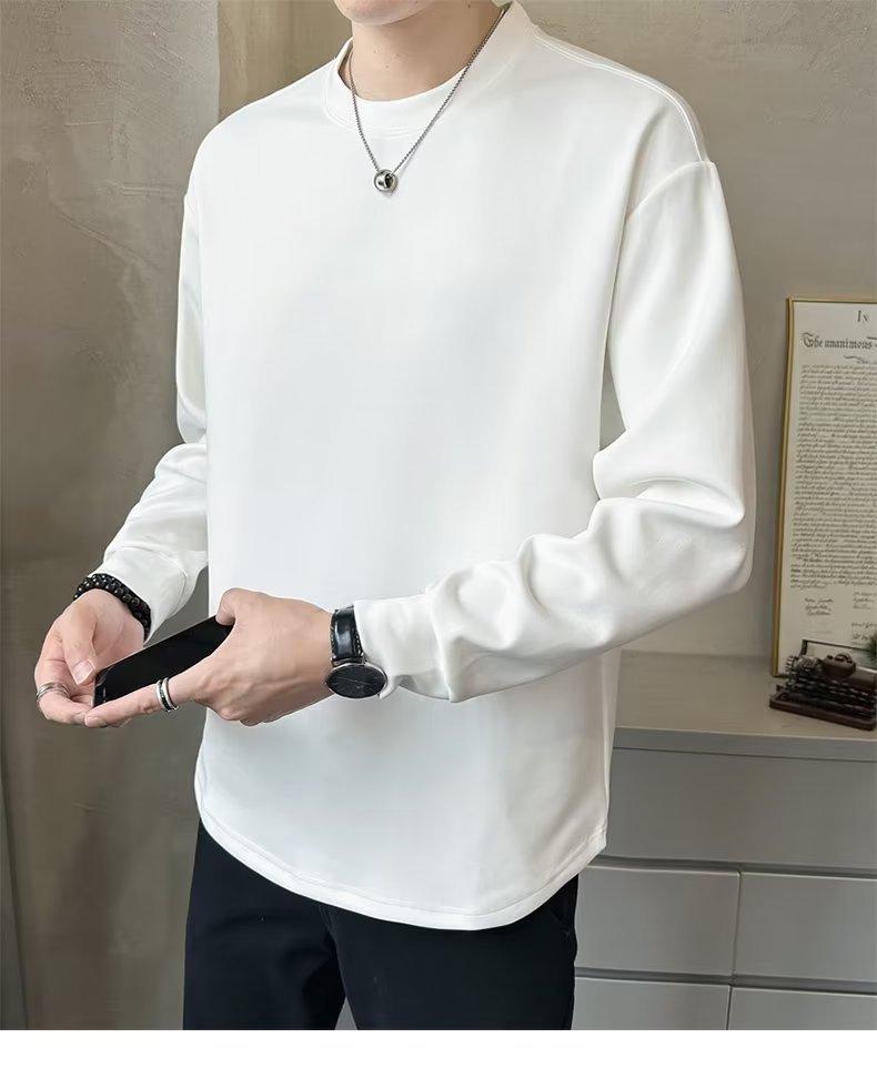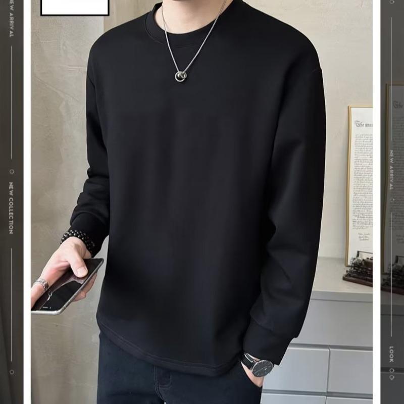 Camiseta de manga larga para hombre, nueva marca de moda de primavera y otoño, diseño holgado e informal de cuello redondo, camisa de color liso que combina con todo, top de moda
