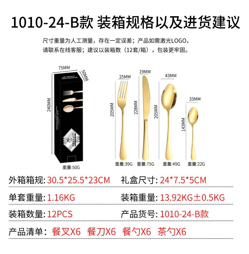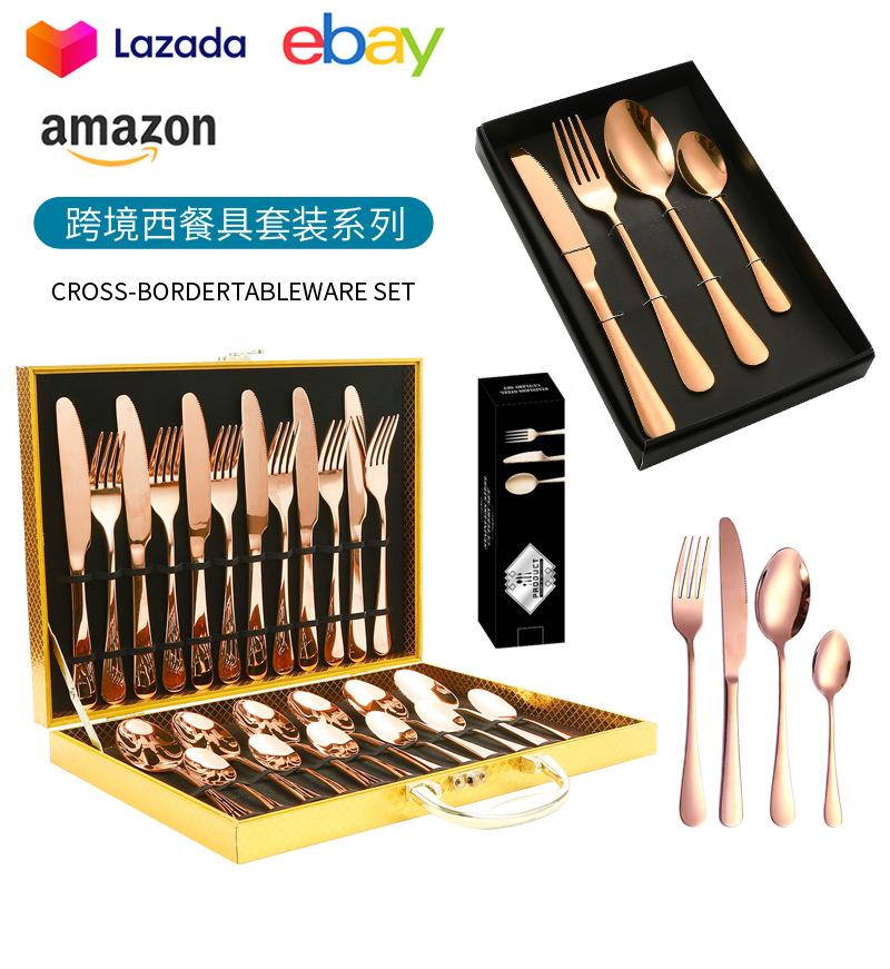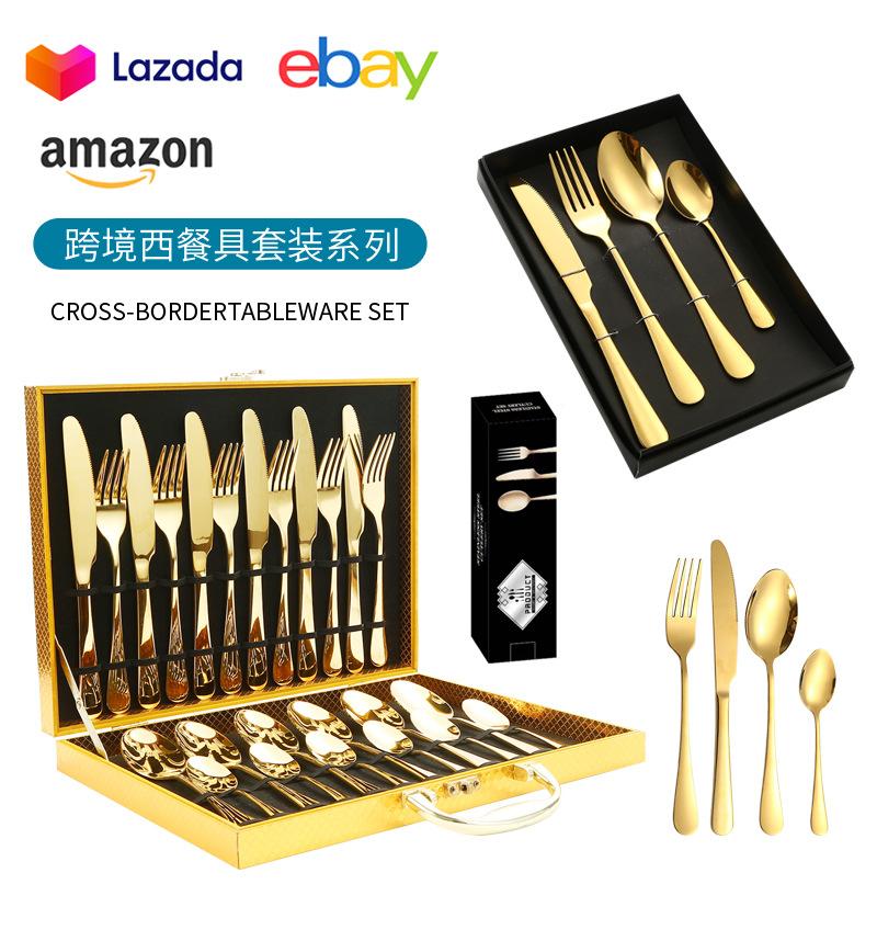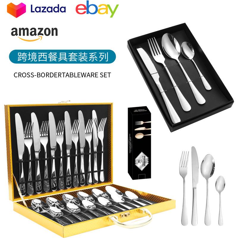 Popular Transfronterizo 1010 Vajilla de Acero Inoxidable Juego de 4 Piezas Sencillo Cubierto Occidental para Bistec Cuchillo, Tenedor y Cuchara Juego de Caja de Regalo