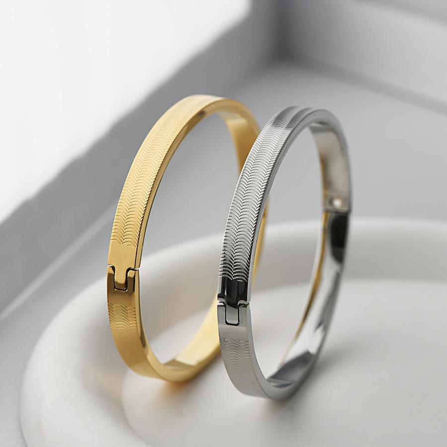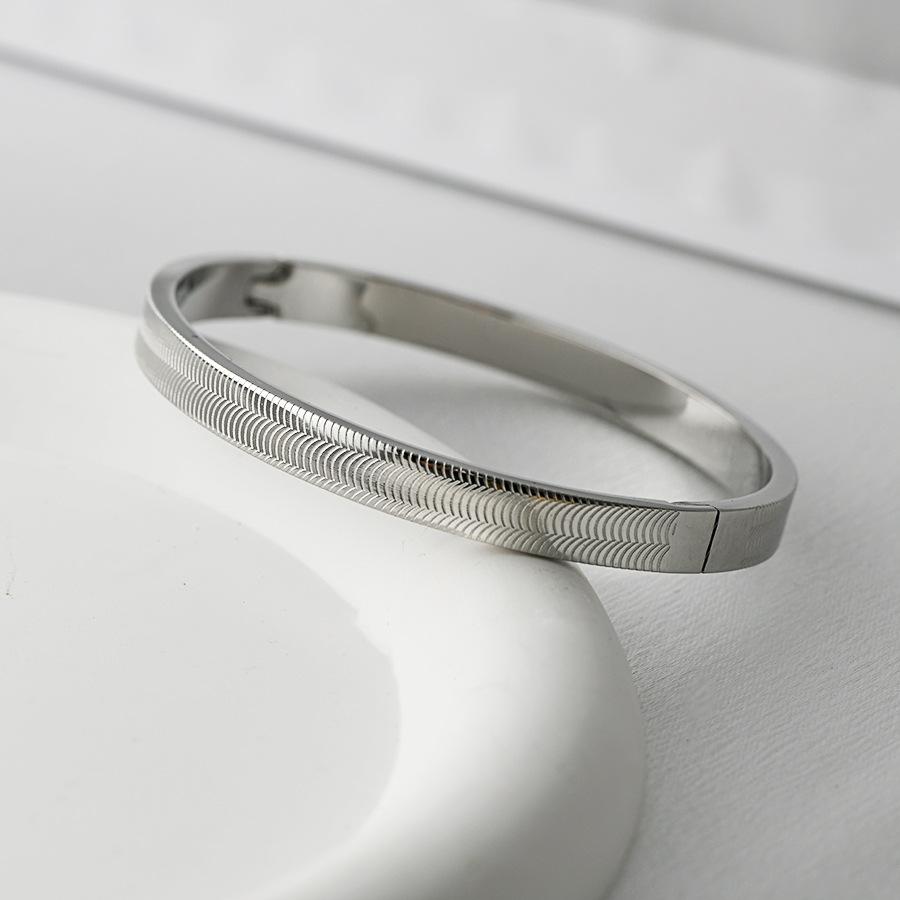 Nueva pulsera de acero de titanio transfronteriza, creativa, simple, con textura de rejilla y hebilla, pulsera de pareja, joyería de acero inoxidable