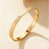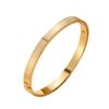 Fabricantes de pulseras de acero de titanio al por mayor, pulsera ajustable abierta en forma de C, pulsera femenina de acero inoxidable con logotipo de texto grabado.