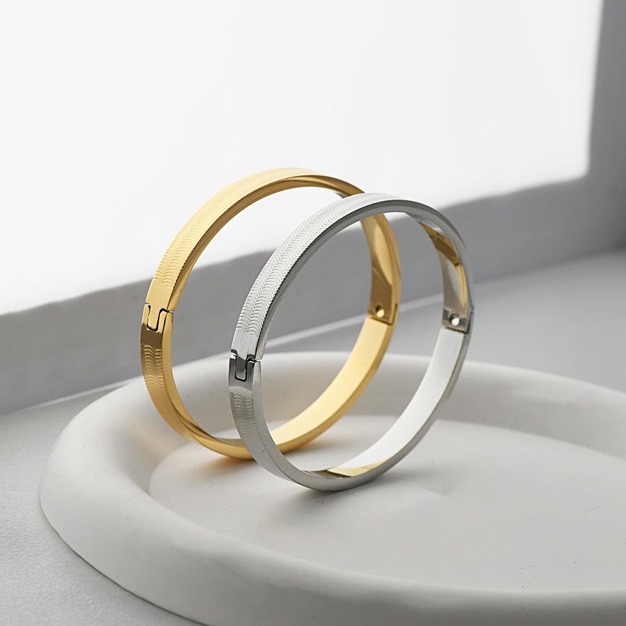 Nueva pulsera de acero de titanio transfronteriza con hebilla de patrón de onda de corrosión simple creativa para pareja, joyería de acero inoxidable