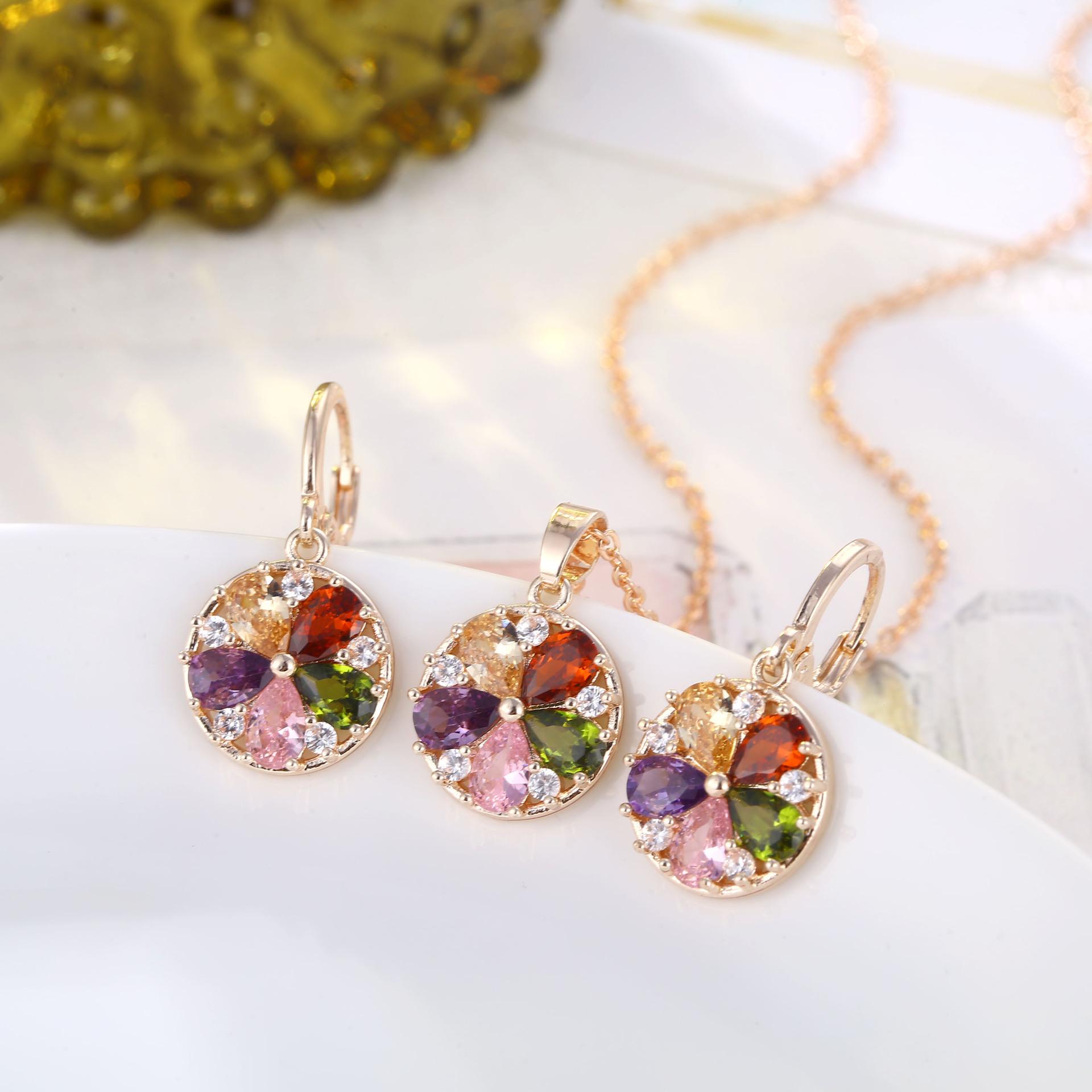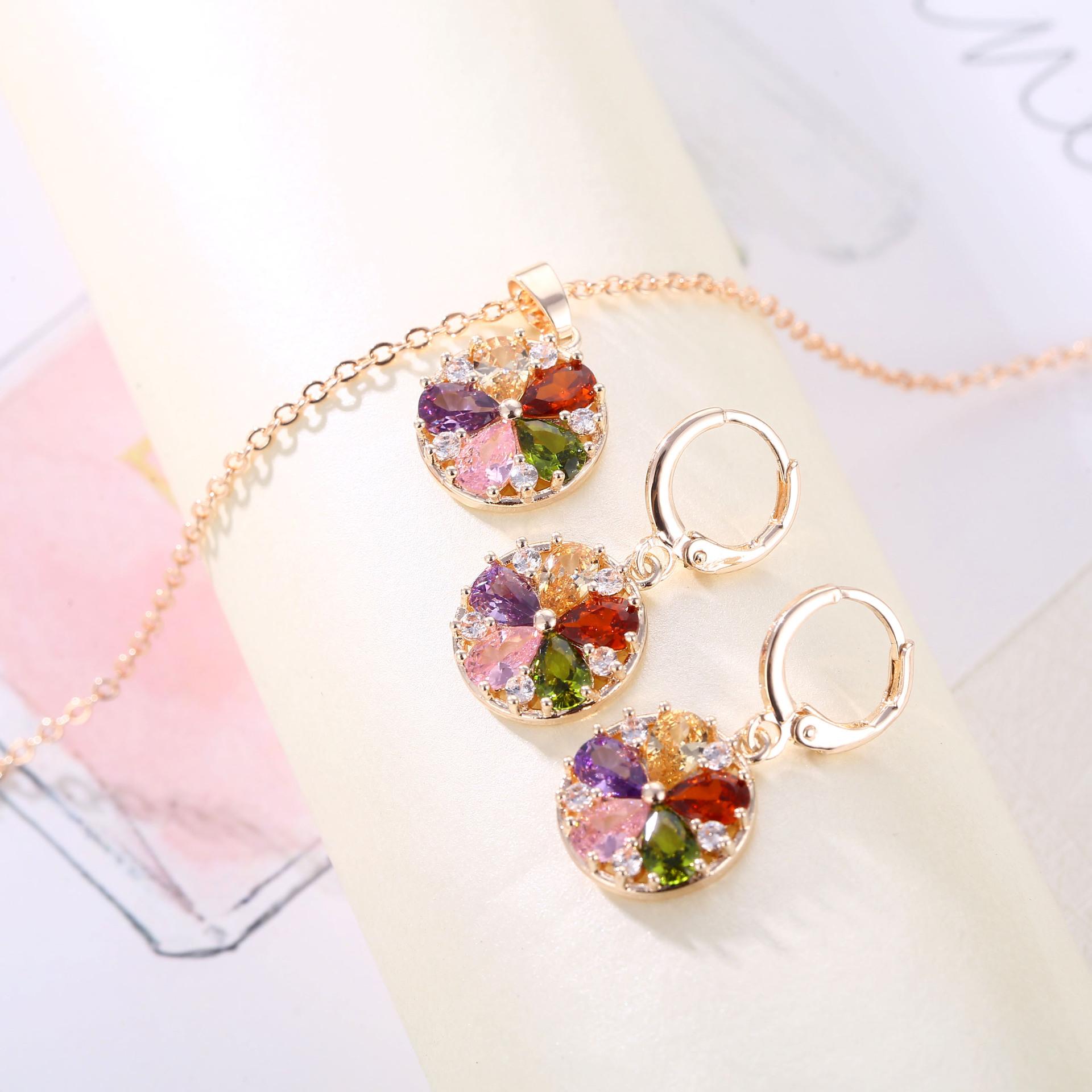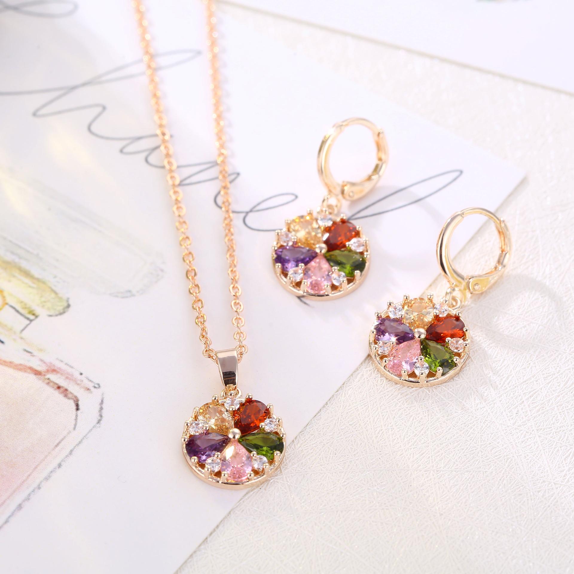 Conjunto de collar y pendientes para mujer de estilo Harajuku con cristales de circonita en color, suministro en vivo de joyas Cassie, venta al por mayor