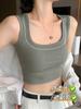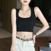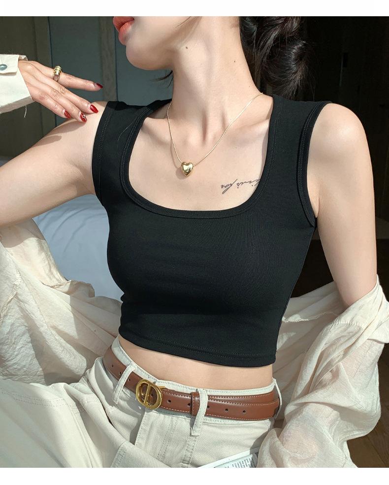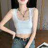 Camisola corta para mujer, verano 2024, nueva, ajustada, con hombros anchos, emulsión en forma de I, sin mangas.