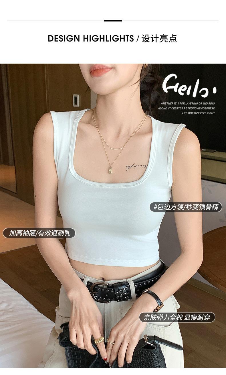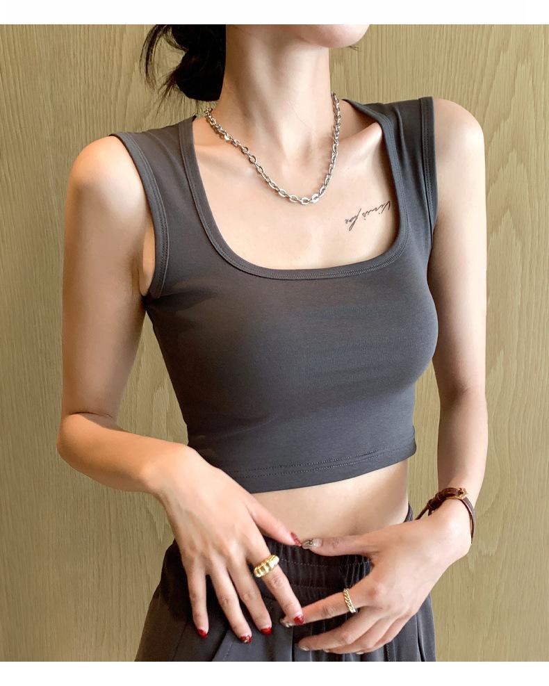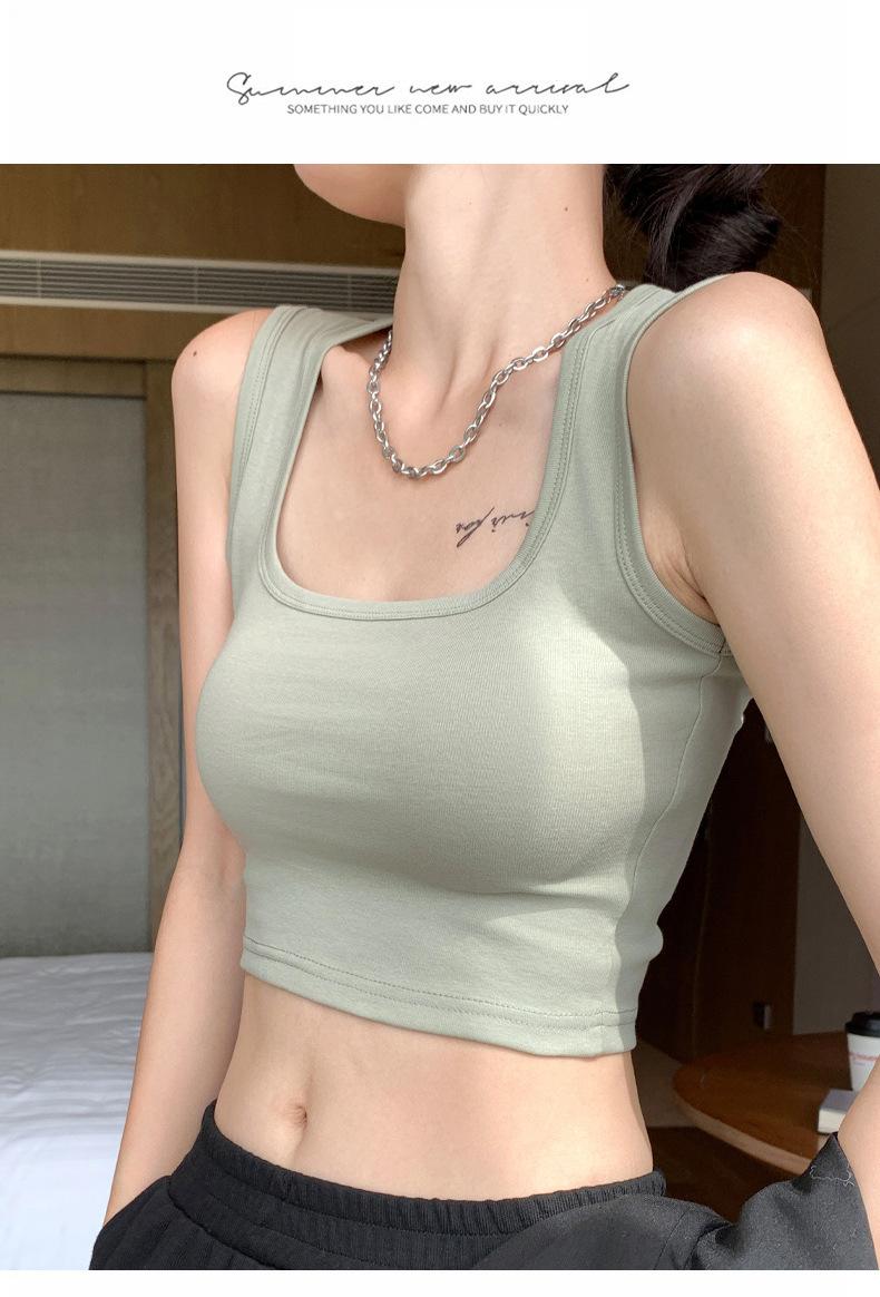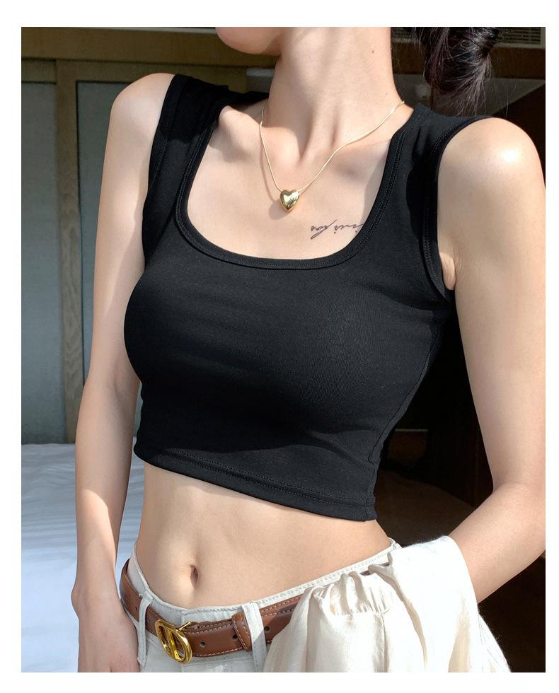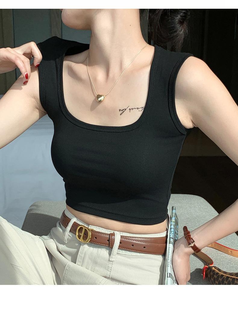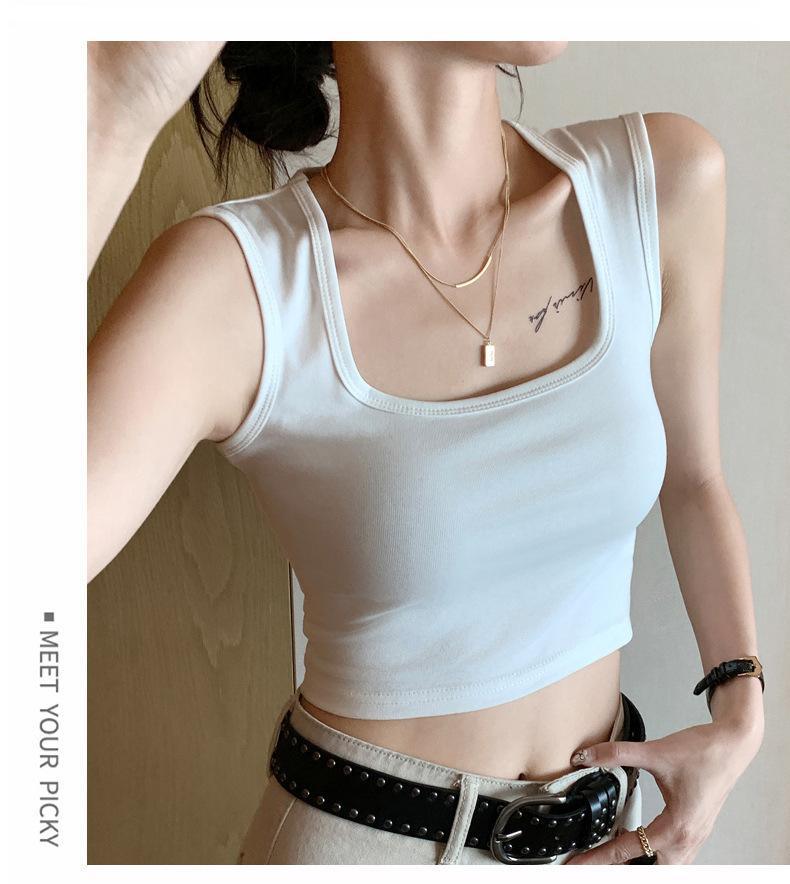 Compra Camisola corta para mujer, verano 2024, nueva, ajustada, con hombros anchos, emulsión en forma de I, sin mangas. al por mayor en Joom.pro
