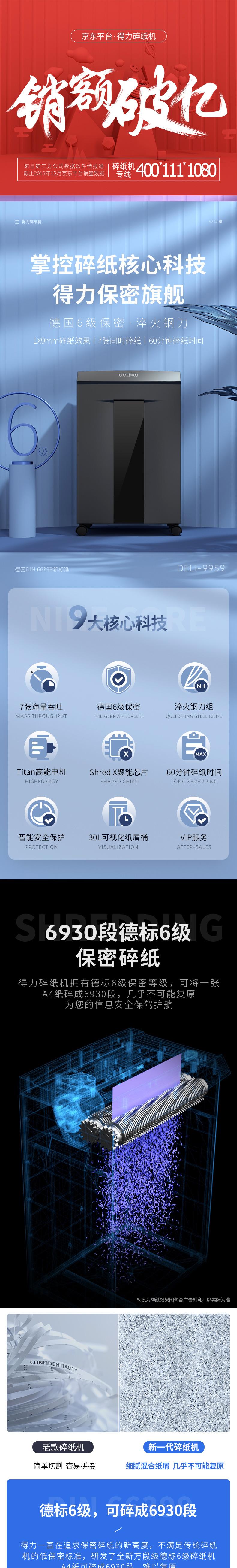 Destructora de papel Deli 9959, trituradora de documentos de gran capacidad para oficina, alta potencia, automática, confidencial, comercial, doméstica