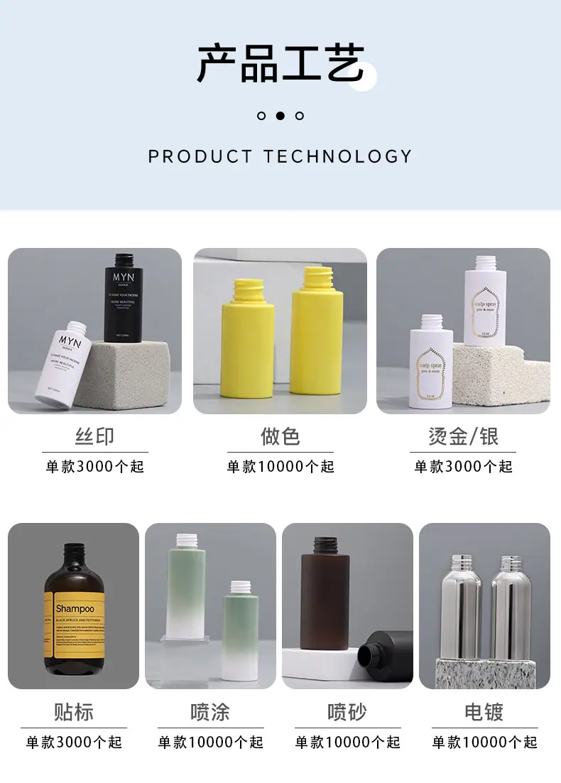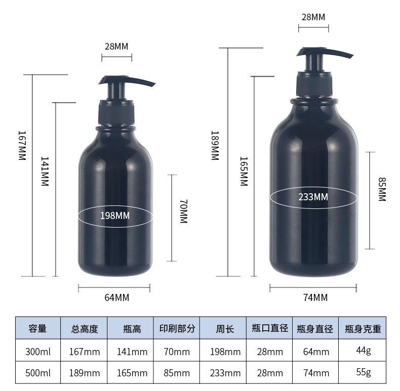 Frasco dosificador de loción de 300 ml 500 ml, frasco para champú, frasco para gel de ducha, sub-botella de plástico PET esmerilado