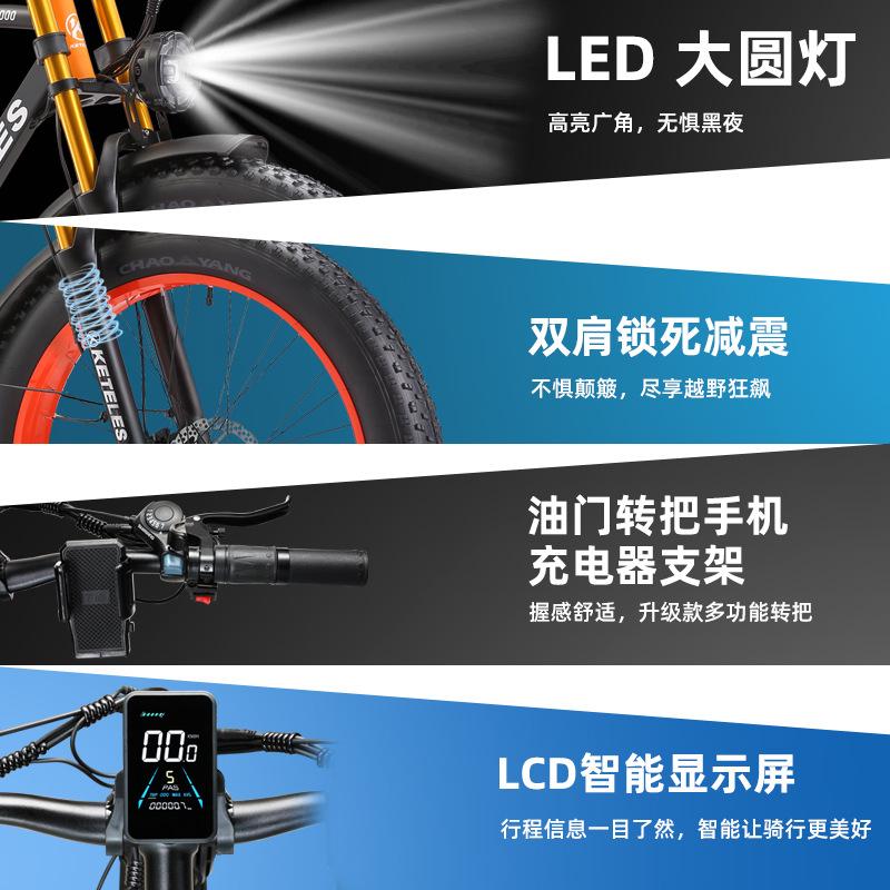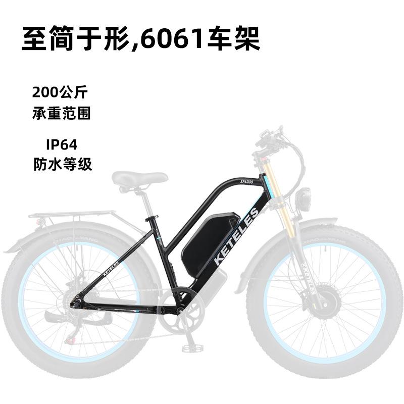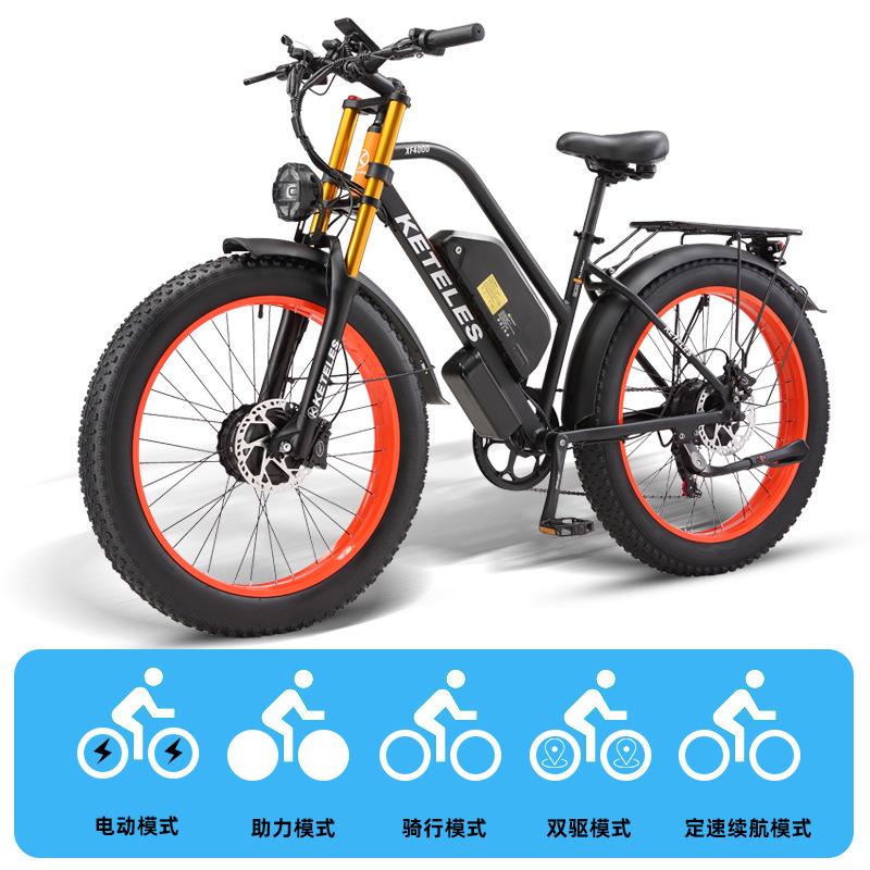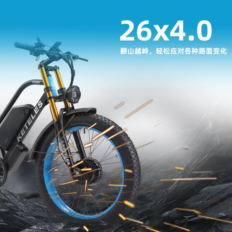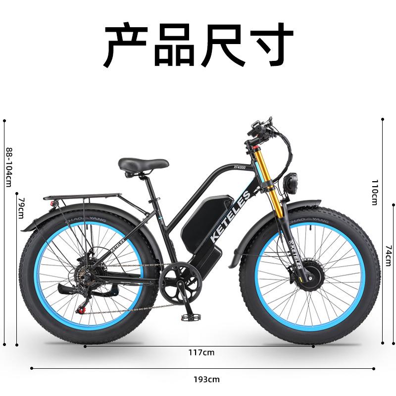 Ketelesxf4000 Bicicleta Eléctrica de Doble Motor Freno de Aceite Vehículo Eléctrico de Neumático Gordo Todoterreno Bicicleta de Montaña