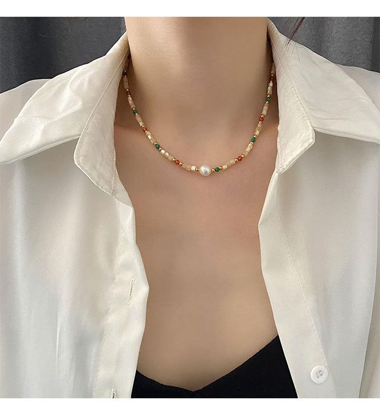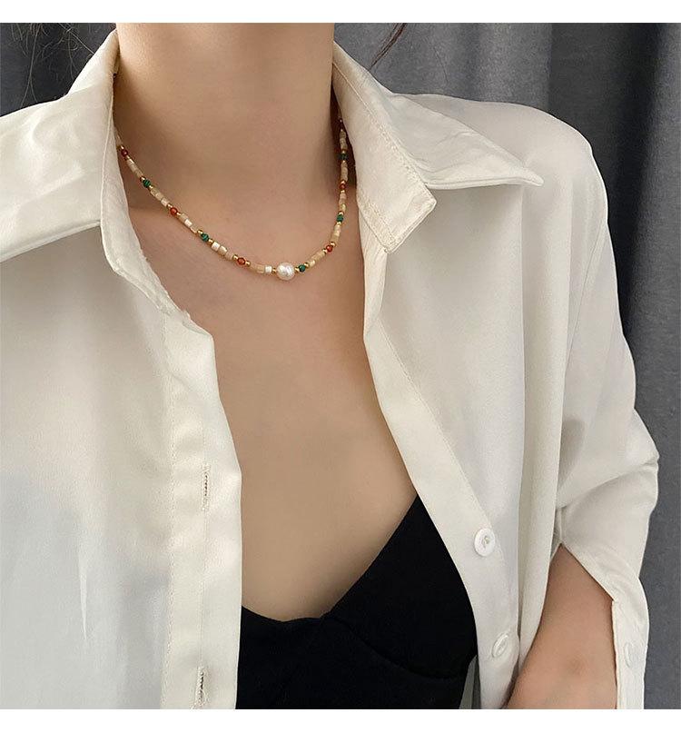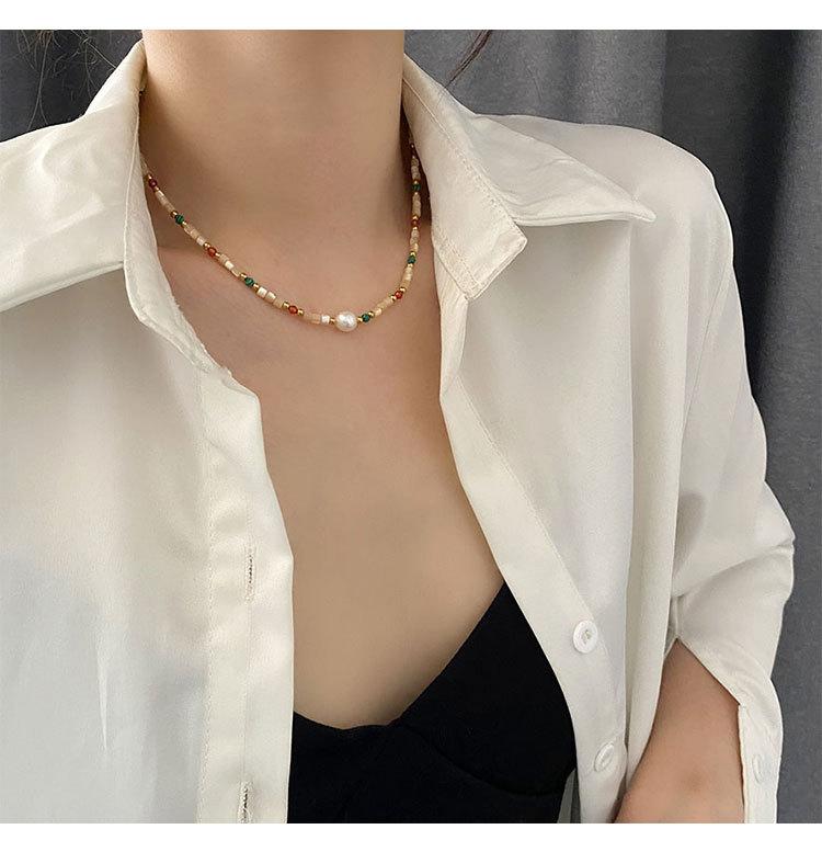 Collar de cuentas de colores, elegante y ligero, con perlas de agua dulce, cadena para clavícula, accesorio popular para mujeres y celebridades de Internet.