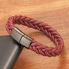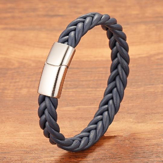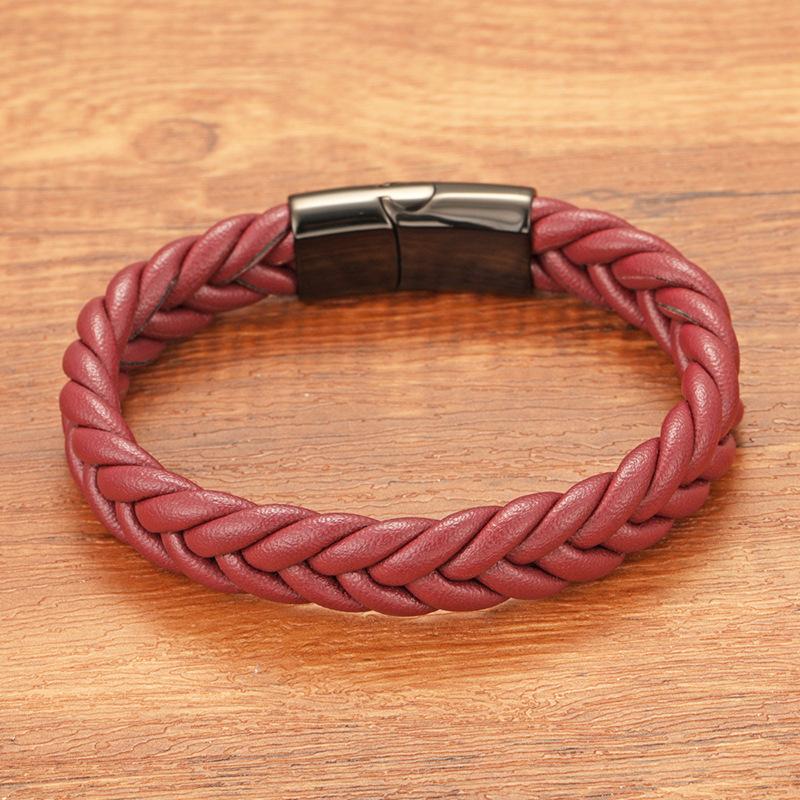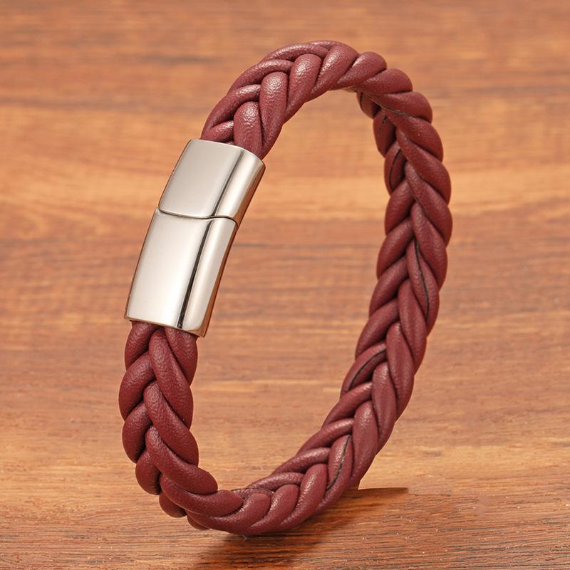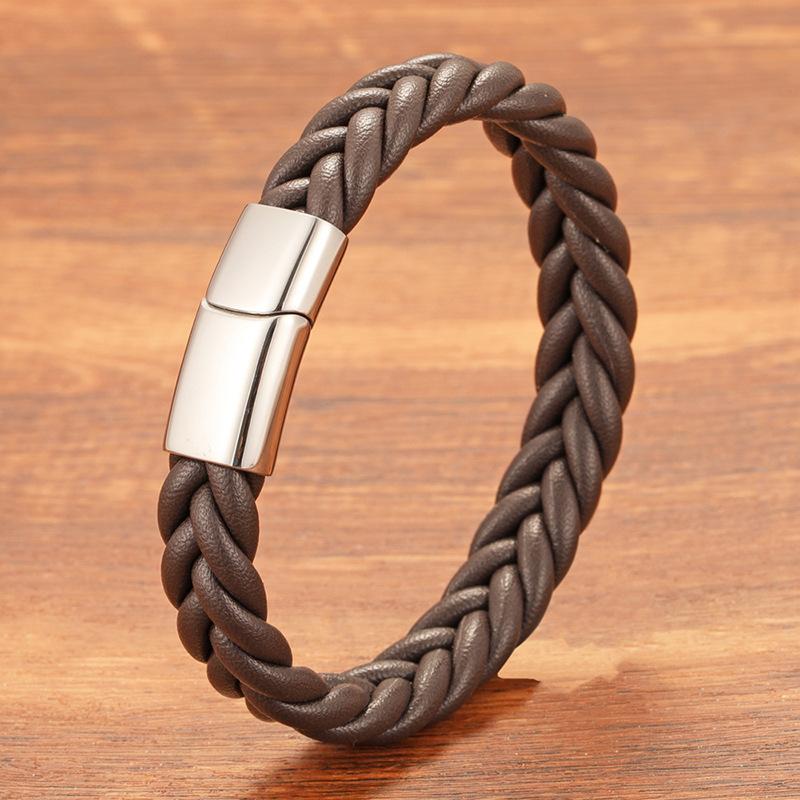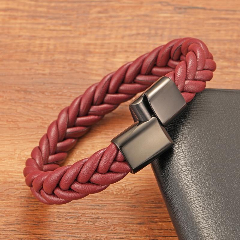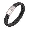 Pulsera de cuero de acero inoxidable para hombre, estilo europeo y americano, con tejido trenzado, hebilla magnética de personalidad simple, joyería de mano de acero de titanio a la moda