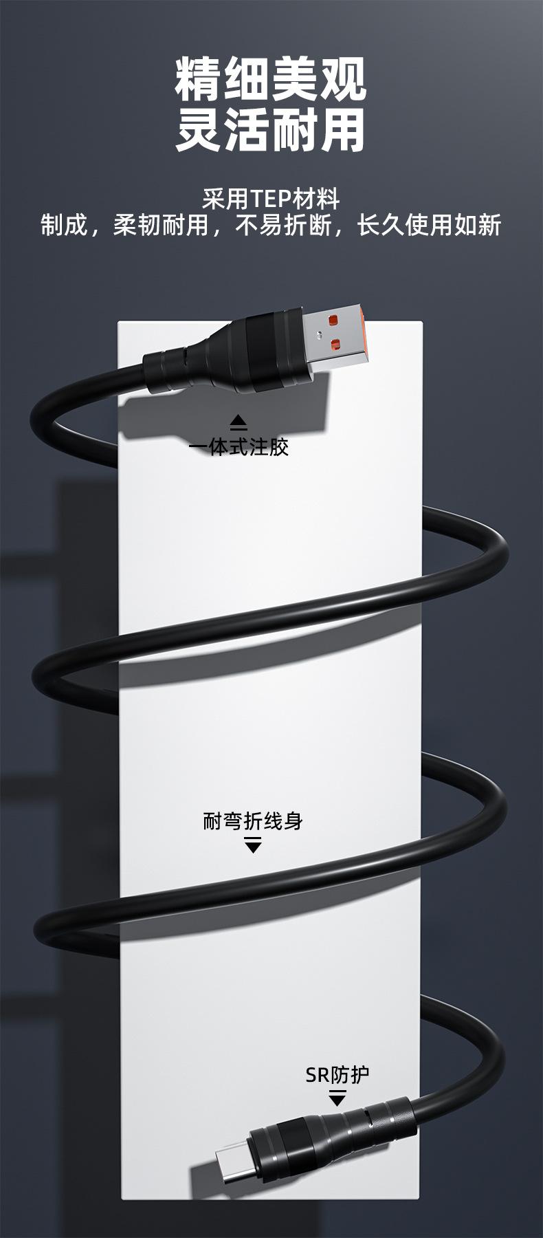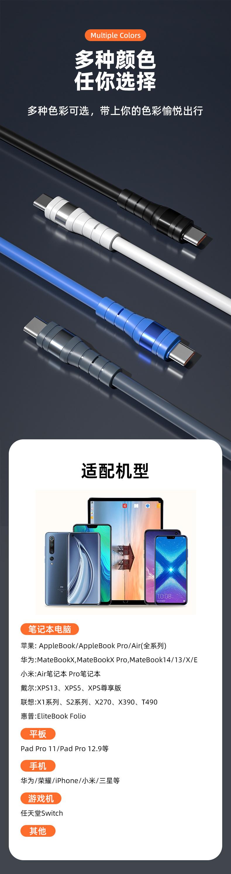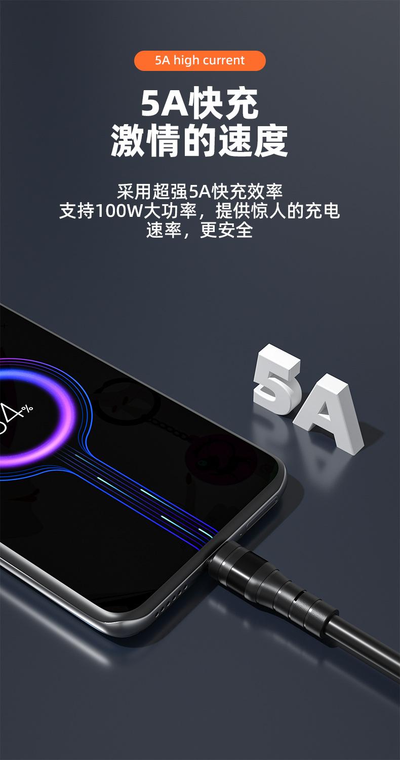 El cable de datos TPE de carga rápida de 100 W es adecuado para la línea de carga tipo C de carga súper rápida de Huawei, cable de datos Android antiguo