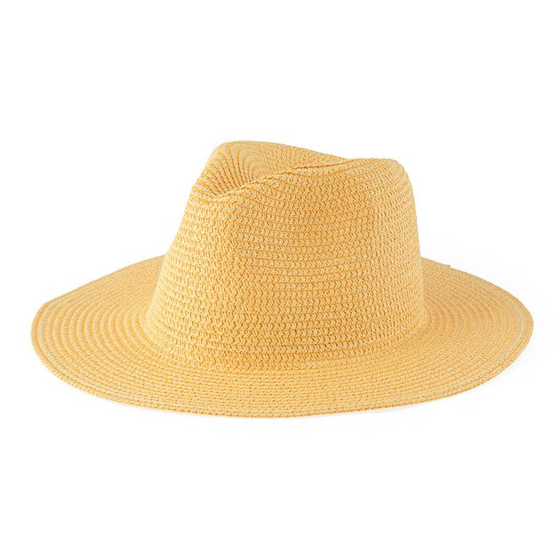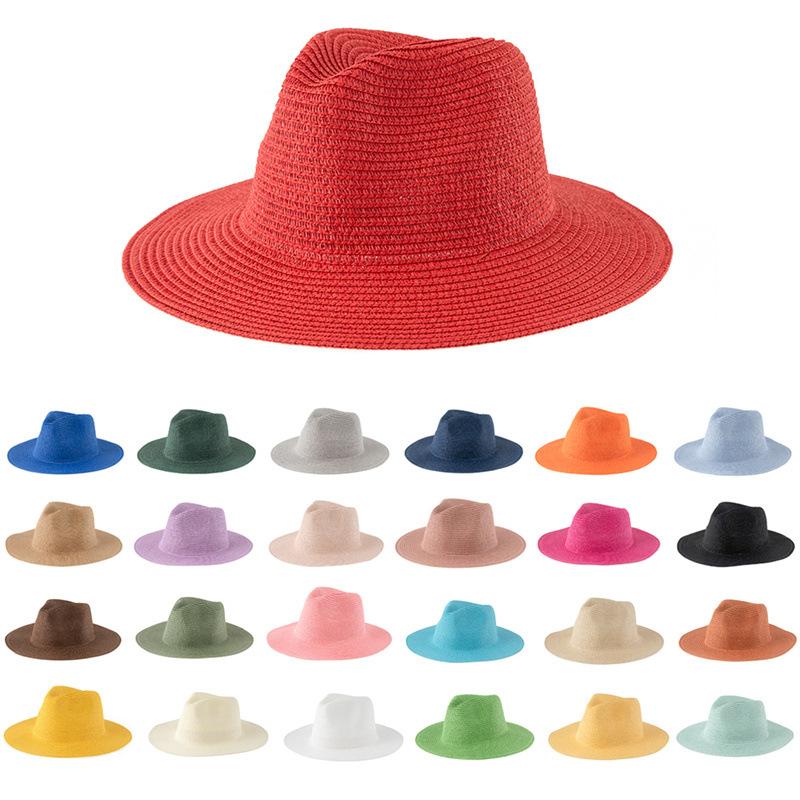 Compra Sombrero de paja estilo jazz de exportación, estilo británico y europeo, tejido para mujer, sombrero de paja panamá de ala grande, protector solar, sombrero de caballero. al por mayor en Joom.pro