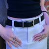 Cinturón de mujer de cuero con hebilla dorada y hebilla lisa, cinturón con letras sencillas, cinturón para jeans de nicho, cinturón para pantalones de mujer, entrega de una sola pieza