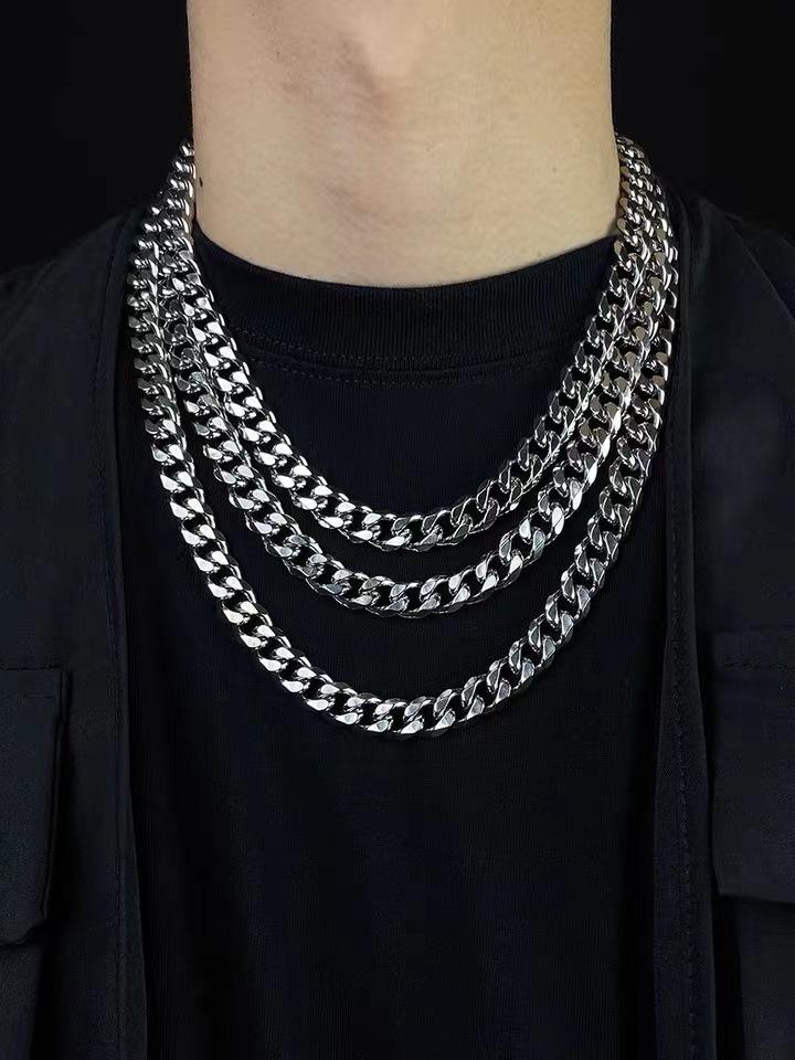 Collar Cubano de Acero de Titanio para Hombre Joyería para Hombre Hebilla Cadena Pulida Rectificado de Seis Lados Europeo y Americano Simple Pulsera de Acero Inoxidable Elegante